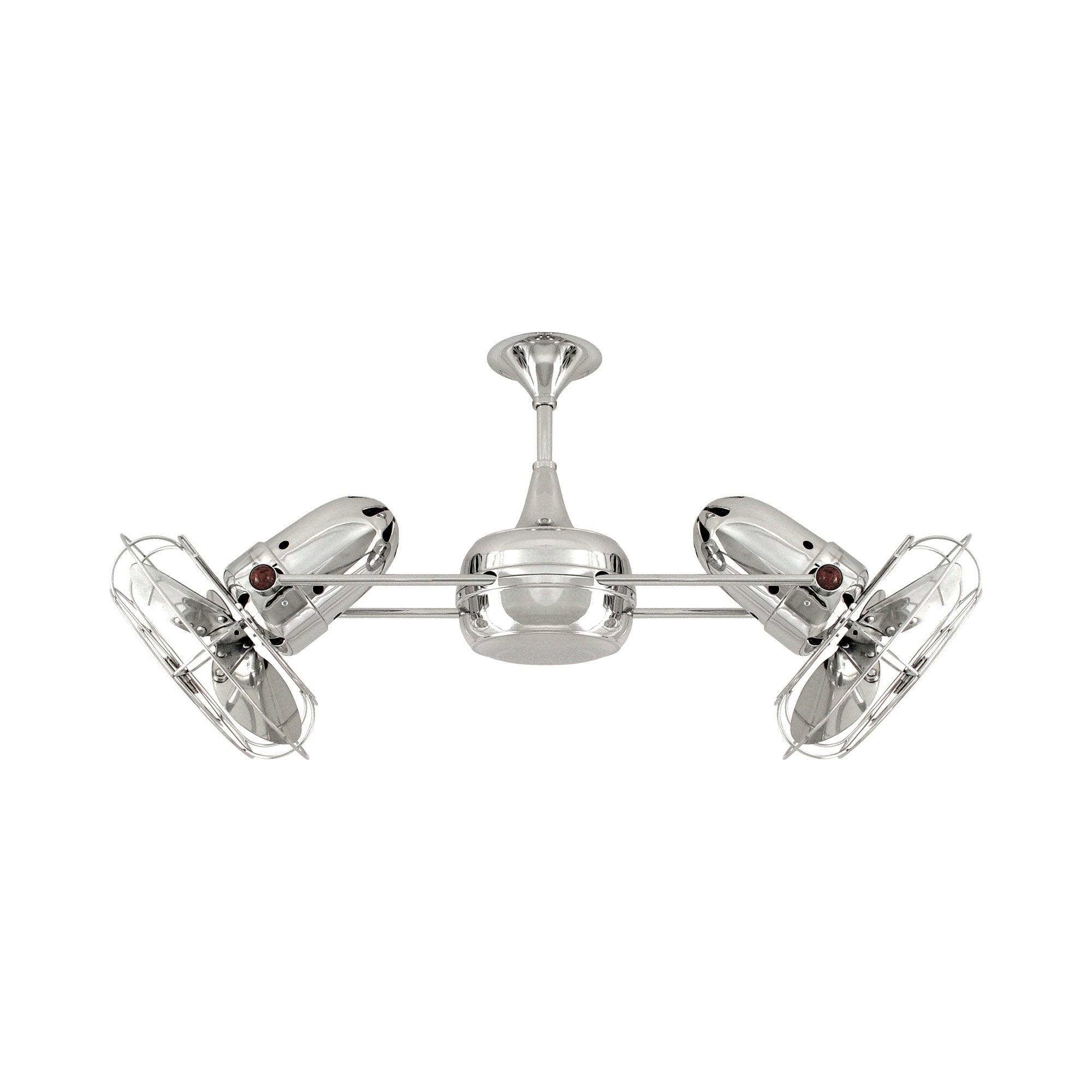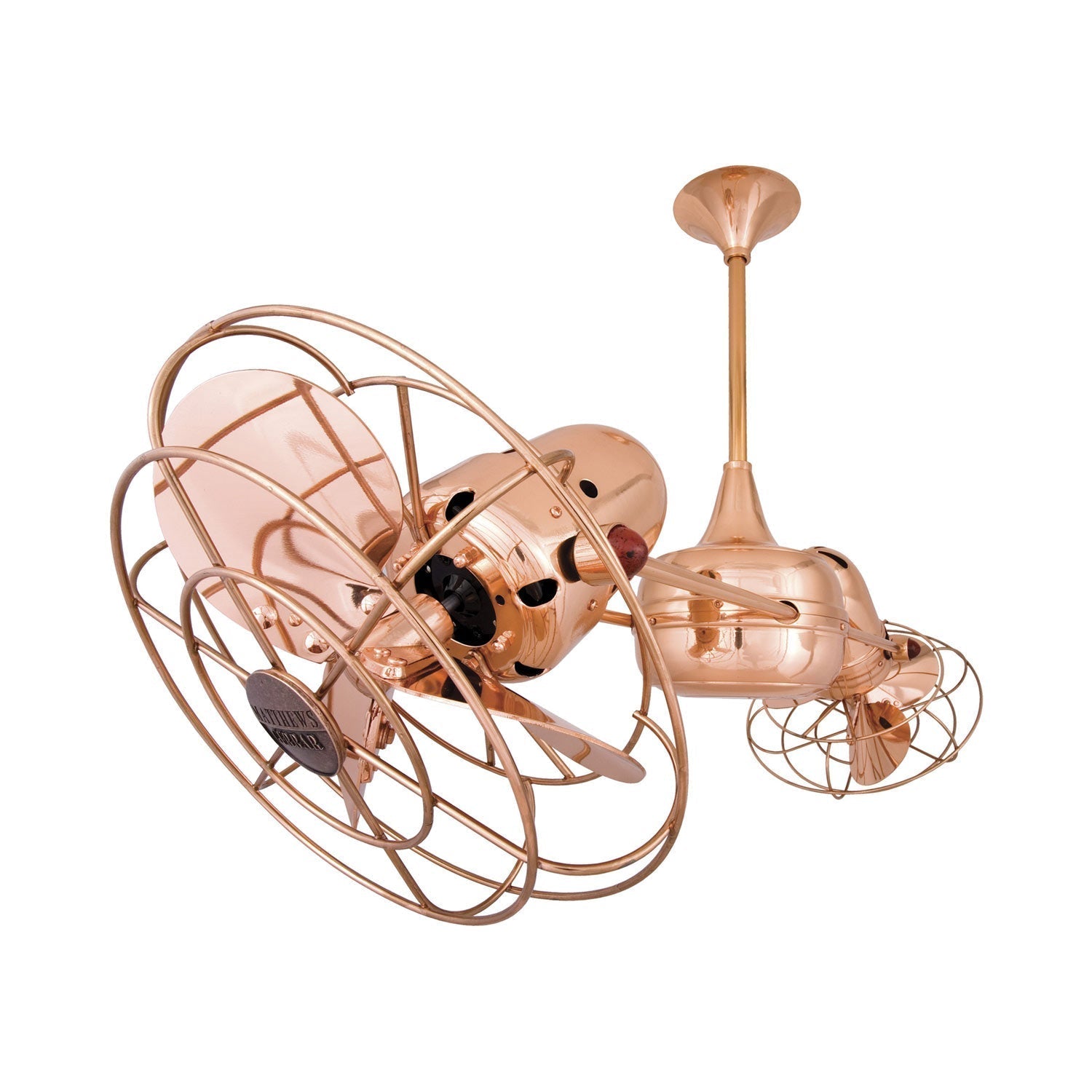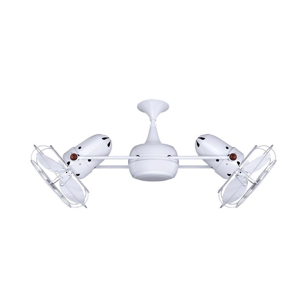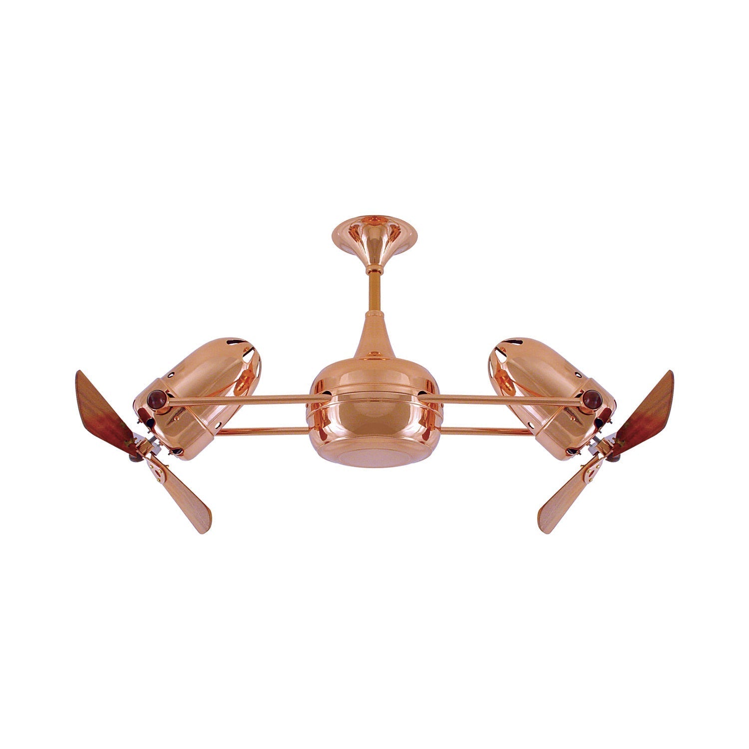 Few designs can match the timeless and sophisticated aesthetic of the Duplo-Dinamico Indoor / Outdoor Ceiling Fan from Matthews Fan Company. Other manufacturers have tried to reproduce this unique design, though all have proven to be of lesser quality and durability. The fan heads can be infinitely positioned in 180-degree arcs for optimum air movement; the greater the angles of the motors to the horizontal support rods (up or down), the faster the axial rotation. A slow, controlled axial rotation is achieved by both fan head position and fan blade speed.