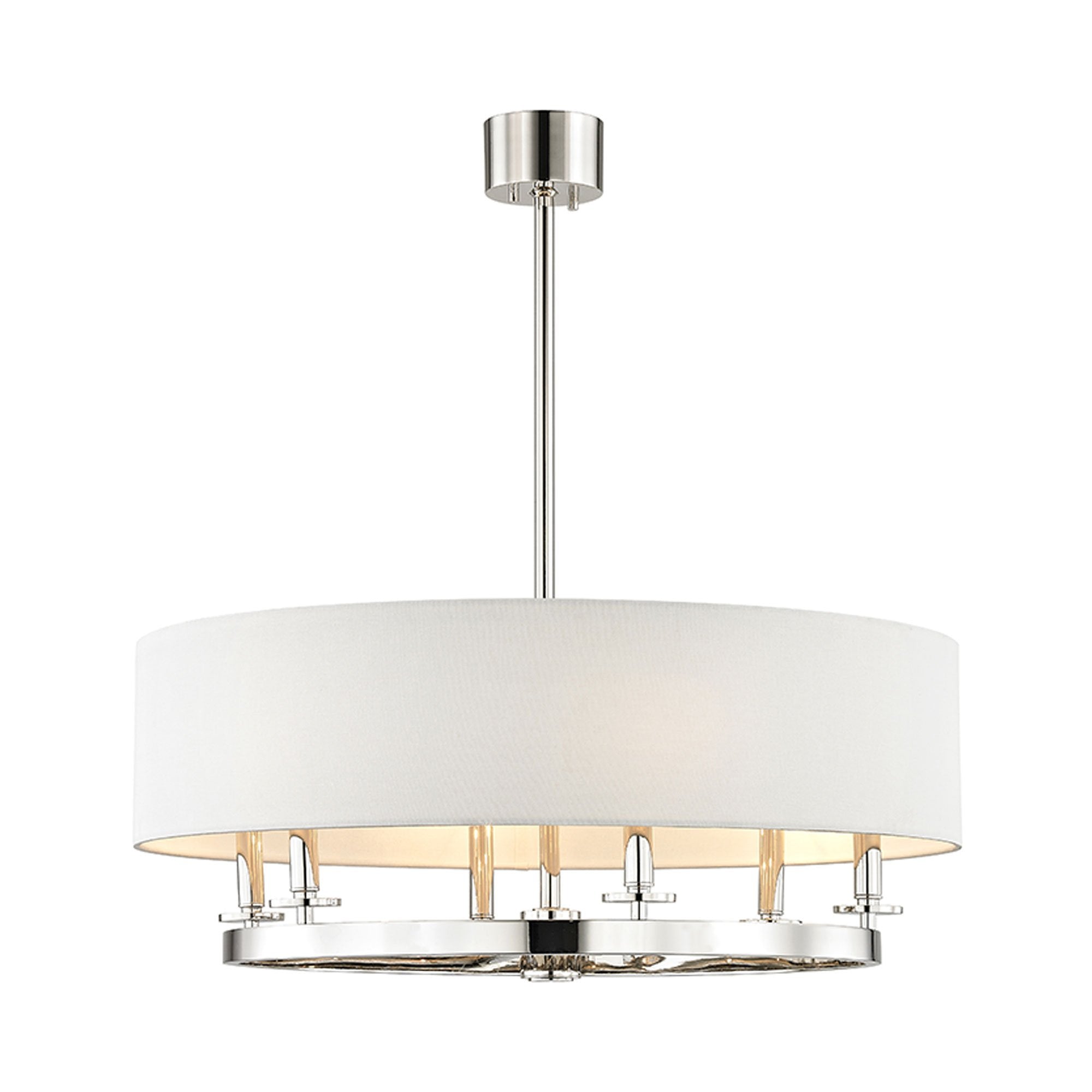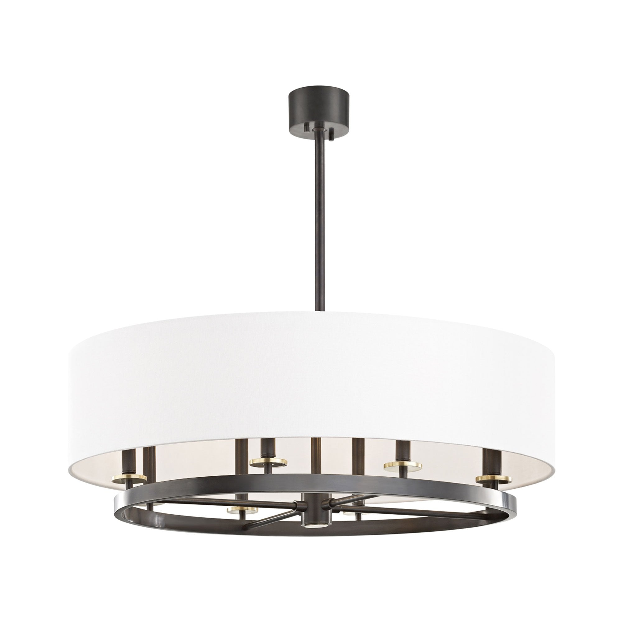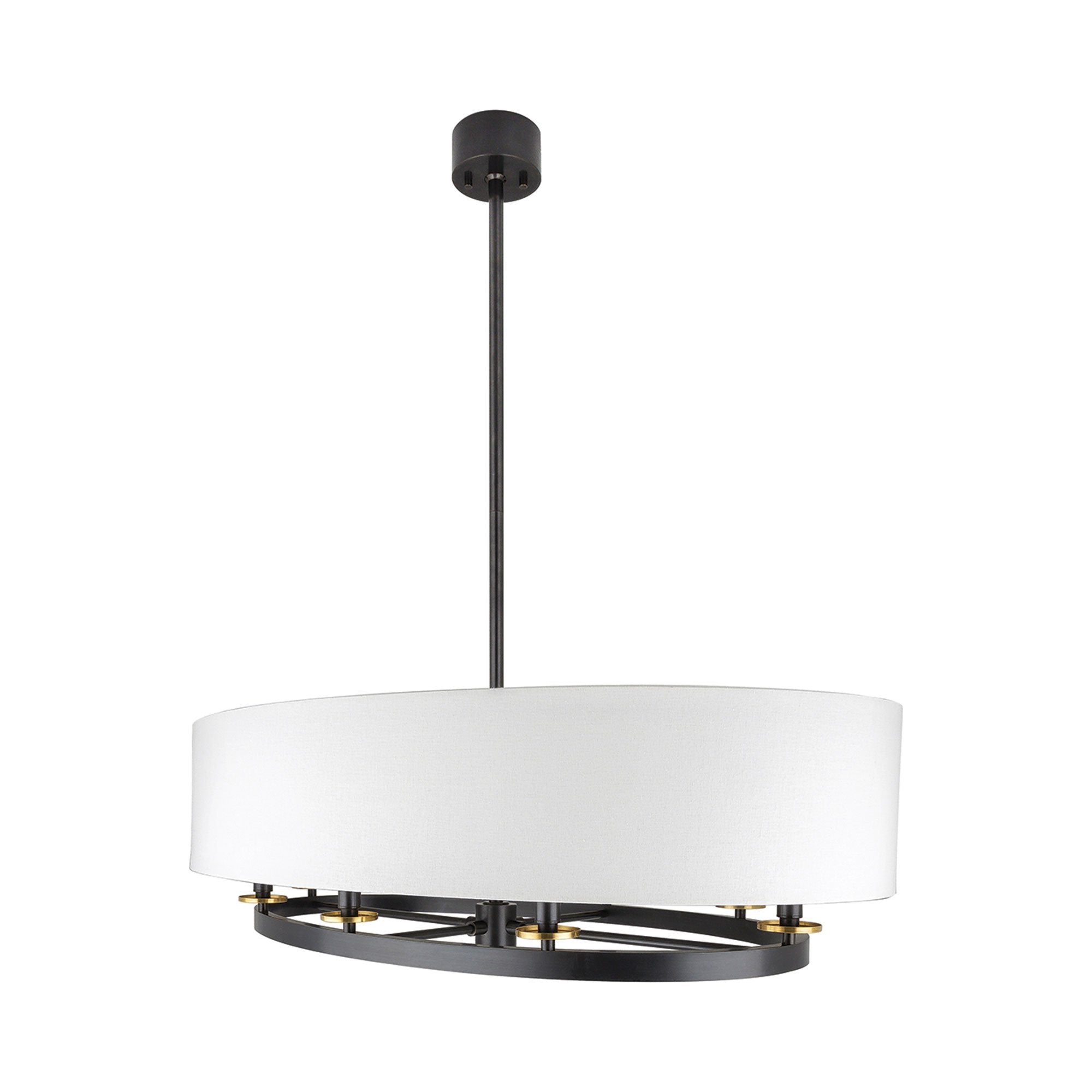 Durham sets a wheel alight, softened by a wide drum shade of off-white linen. Set in a streamlined style that doesn't evoke any specific age, Durham works especially well in transitional and neutral spaces.