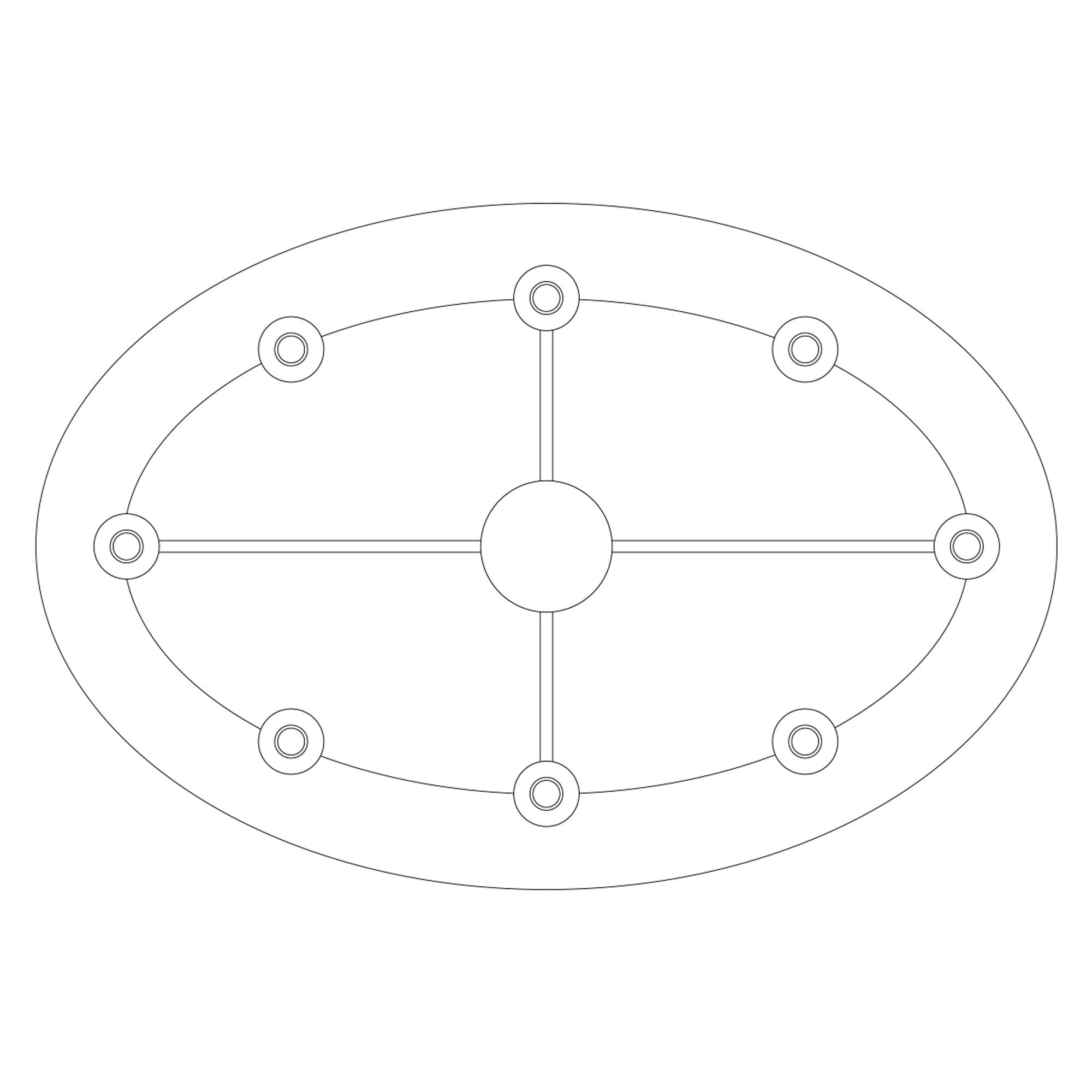- 8-Light: 39.25"D X 11.75"H; 71.5" max height