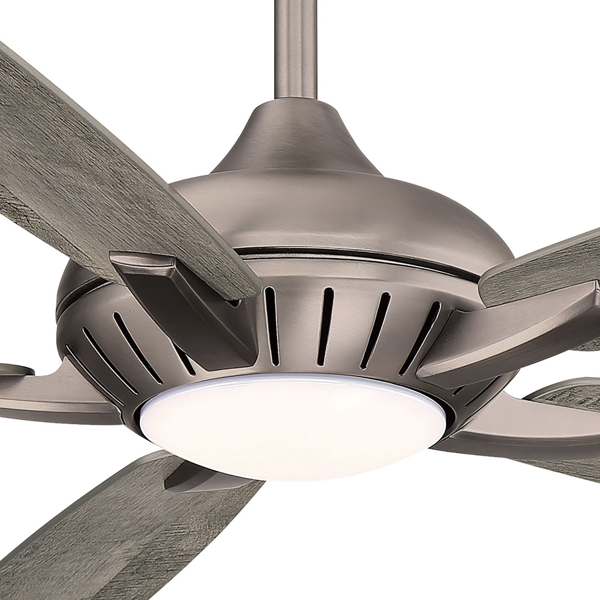 With an integrated light kit and hi-tech operational functions, the 60-inch Dyno XL Smart LED Ceiling Fan from Minka Aire conquers multiple tasks for pleasing lighting and aesthetics in a custom space. Choose a combo finish for its five-blade layout and metal motor assembly, and enjoy a lovely etched effect on a diminutive shade while controlling its lighting and aeration functions with a hand-held remote.