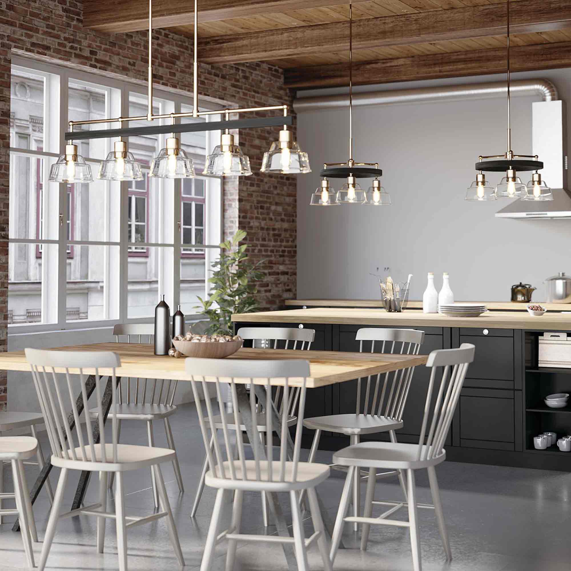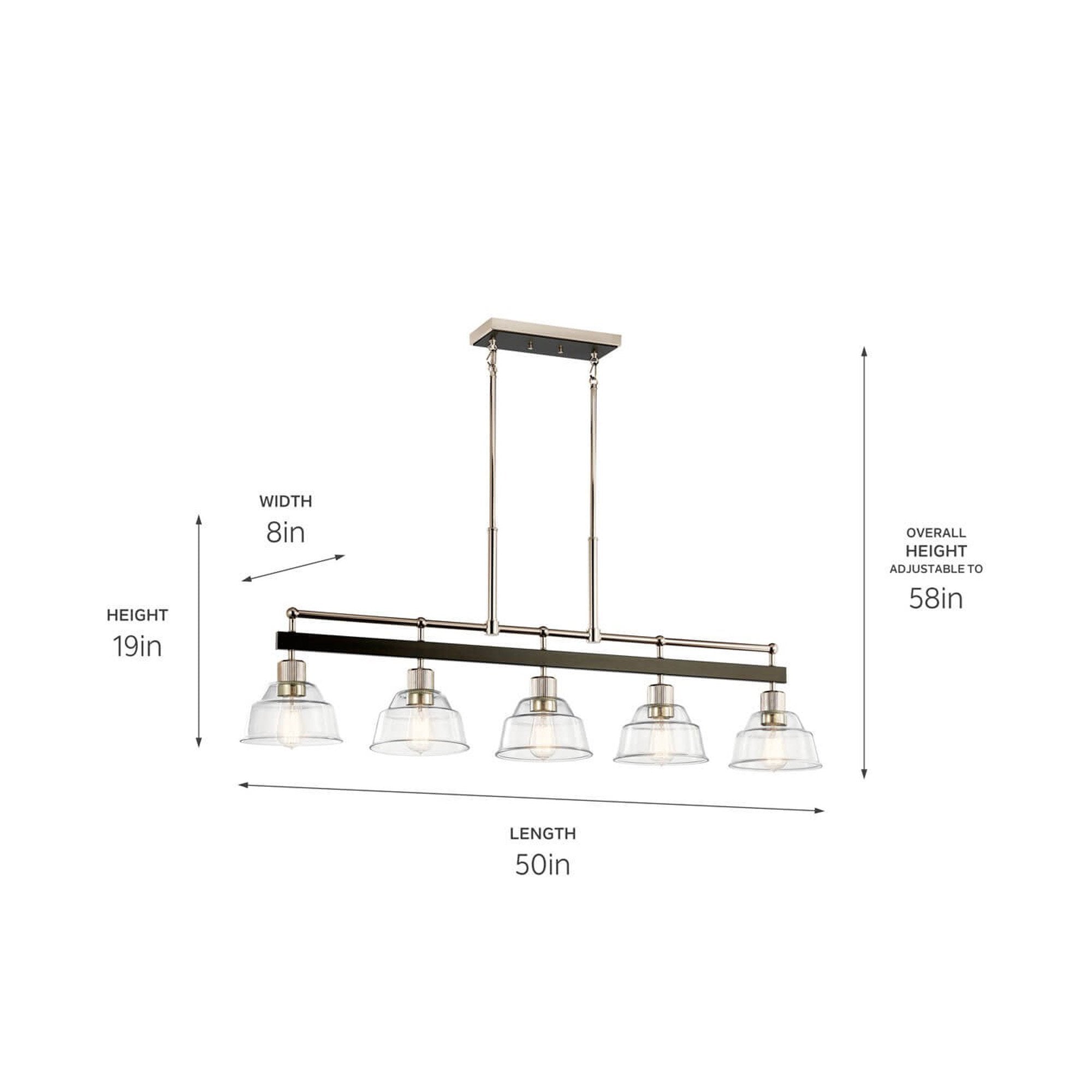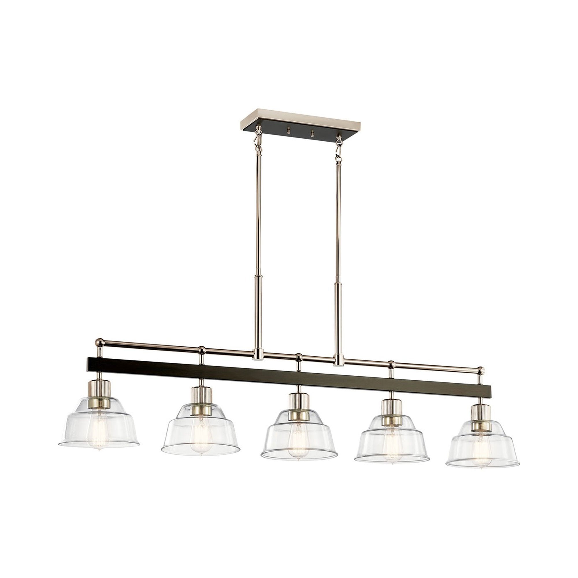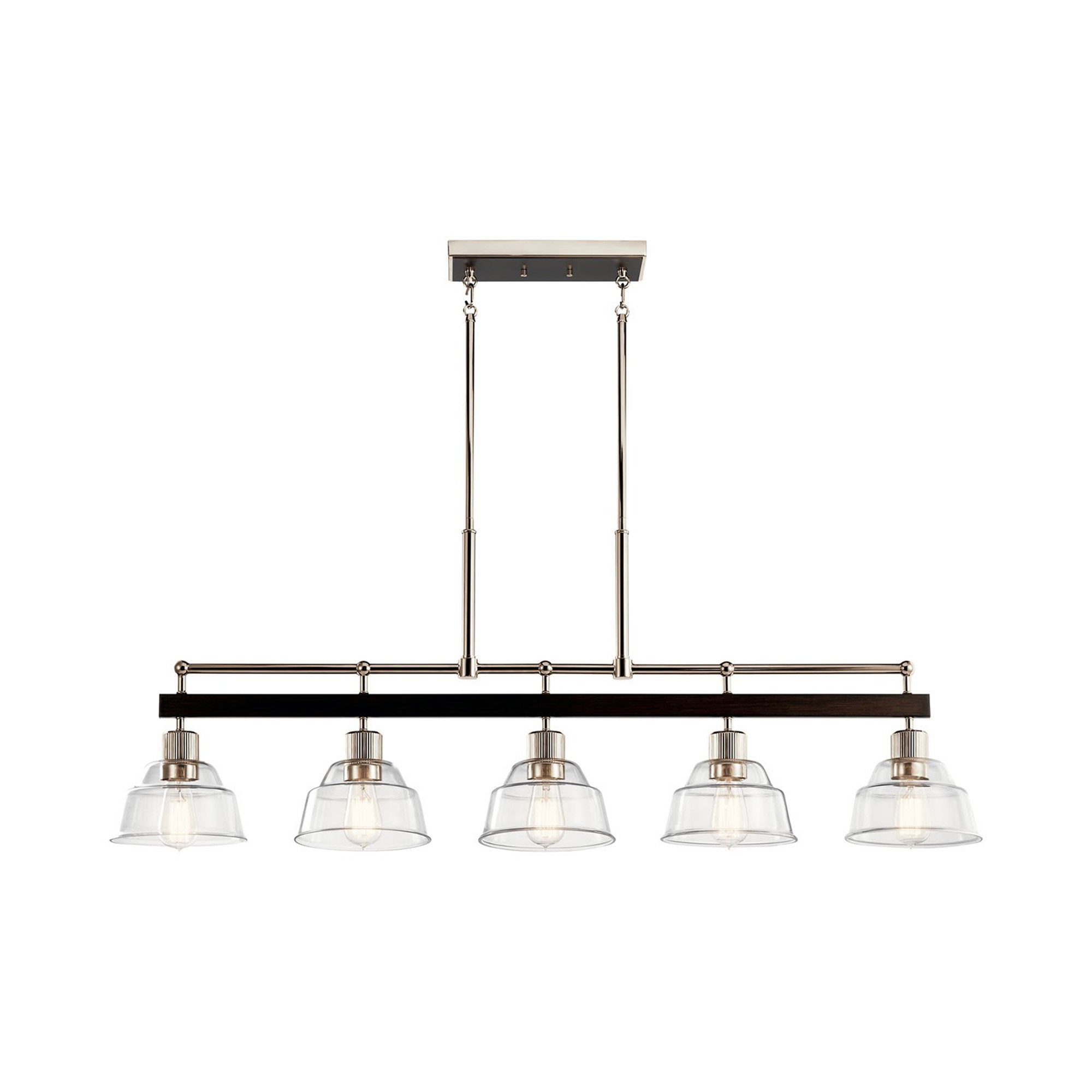 The Eastmont™ 5 light linear chandelier is undeniably remarkable. A Walnut Wood arm with Polished Nickel accents set the scene for the Clear Glass double-tiered shades, making this one of our most sophisticated and versatile fixtures.