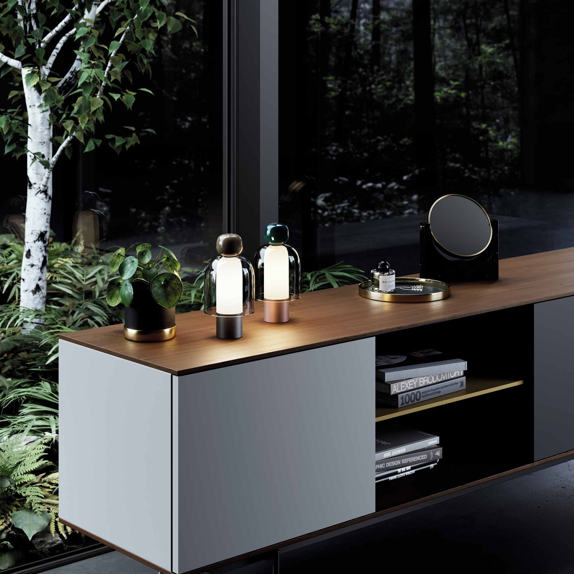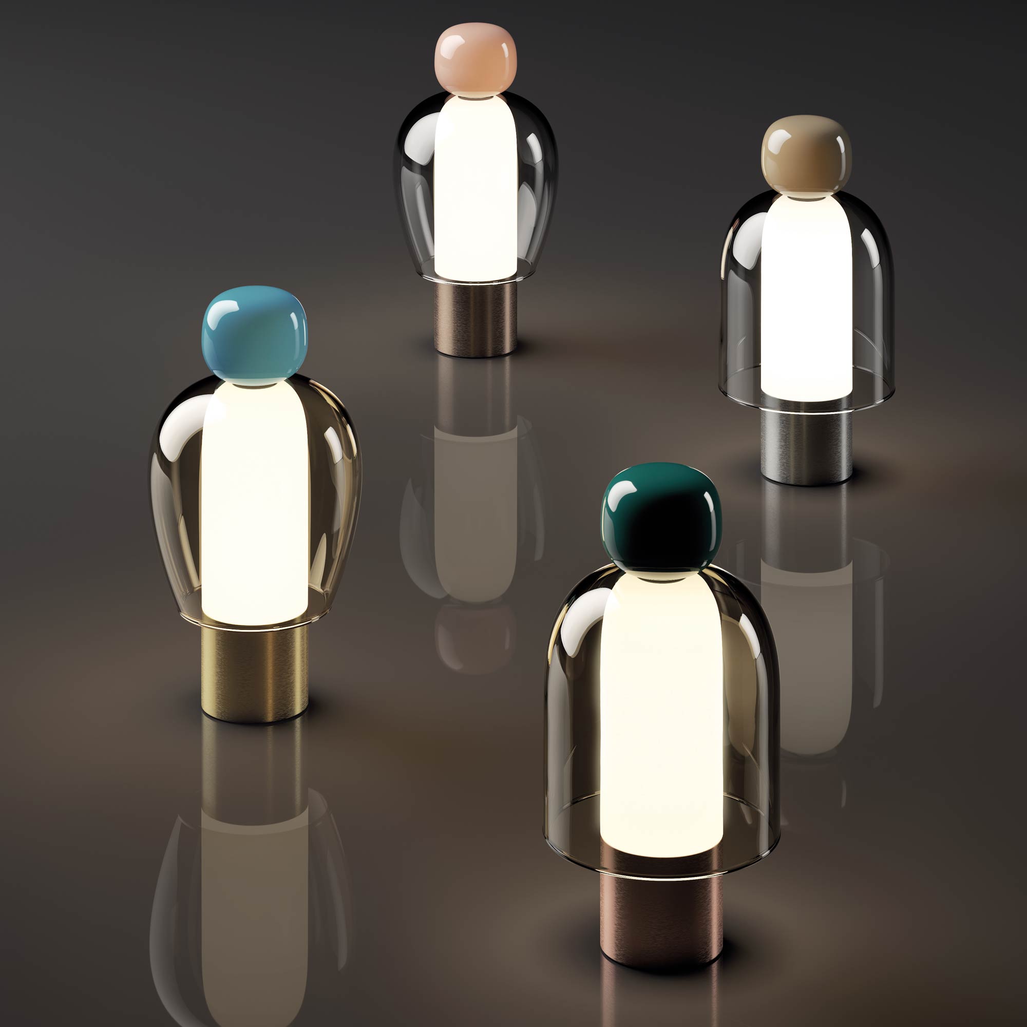 Capitalize on an edgy design with ultimate versatility, adding the Easy Peasy LED Cordless Table Lamp from LODES to a main living space or bedroom calling for something beyond average. This energy-efficient lamp creates a classic bell silhouette in a blown glass dome shade, with primary shapes capping each end to form a spirited silhouette.