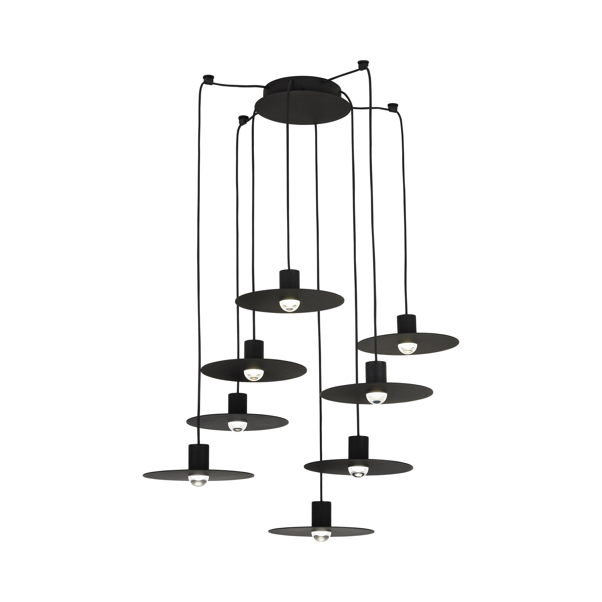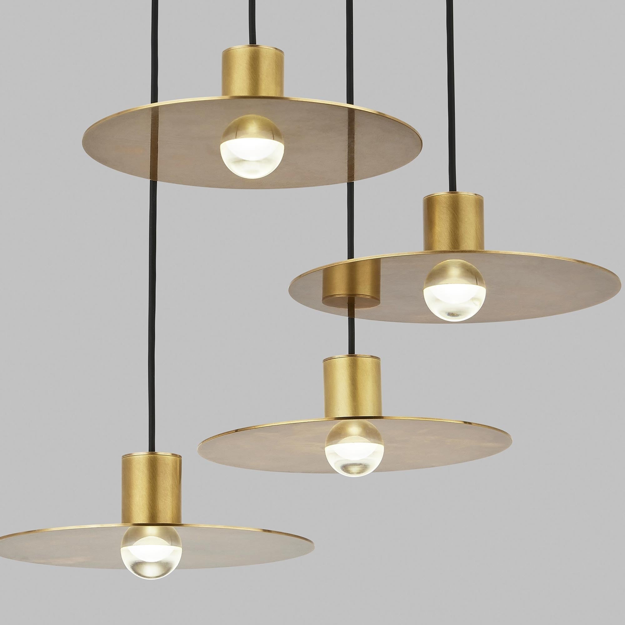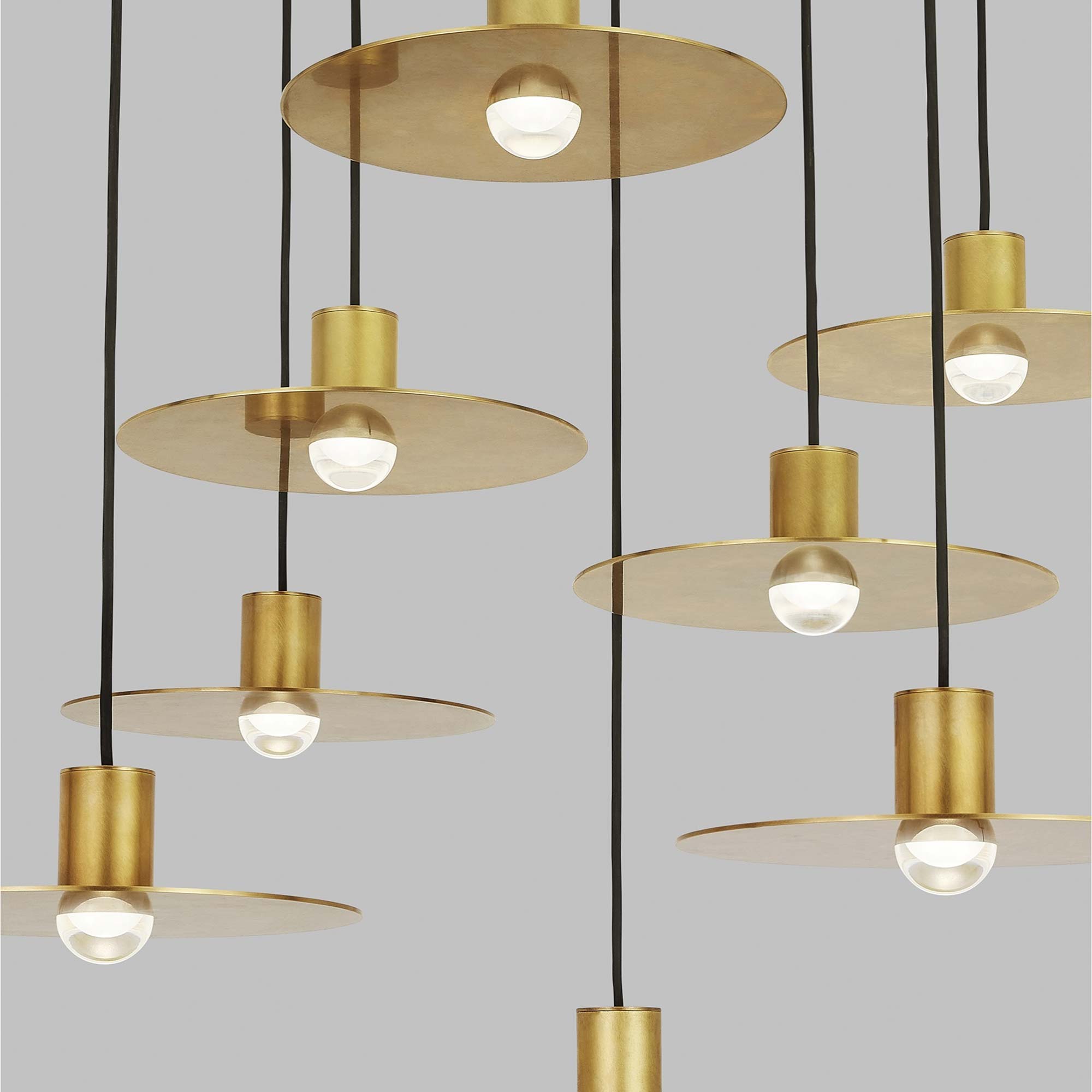 Simple and clean, the Eaves LED Multi Light Pendant Light from Visual Comfort Modern is a Sean Lavin design that celebrates the most intriguing aspects of minimalist design. Flat discs and domed optics suspend from a central canopy, creating texture and dimension over a staircase or in a dining room.