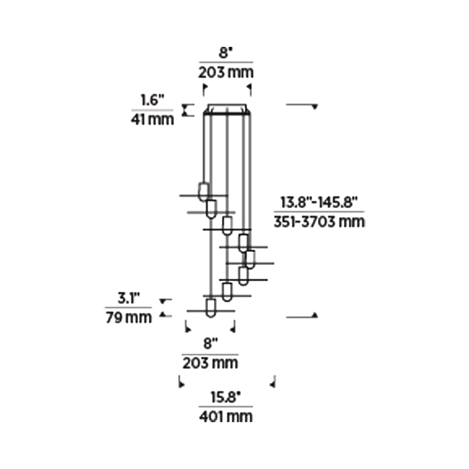 - Dimensions: 15.8"W X 13.8"H; 145.8" max height