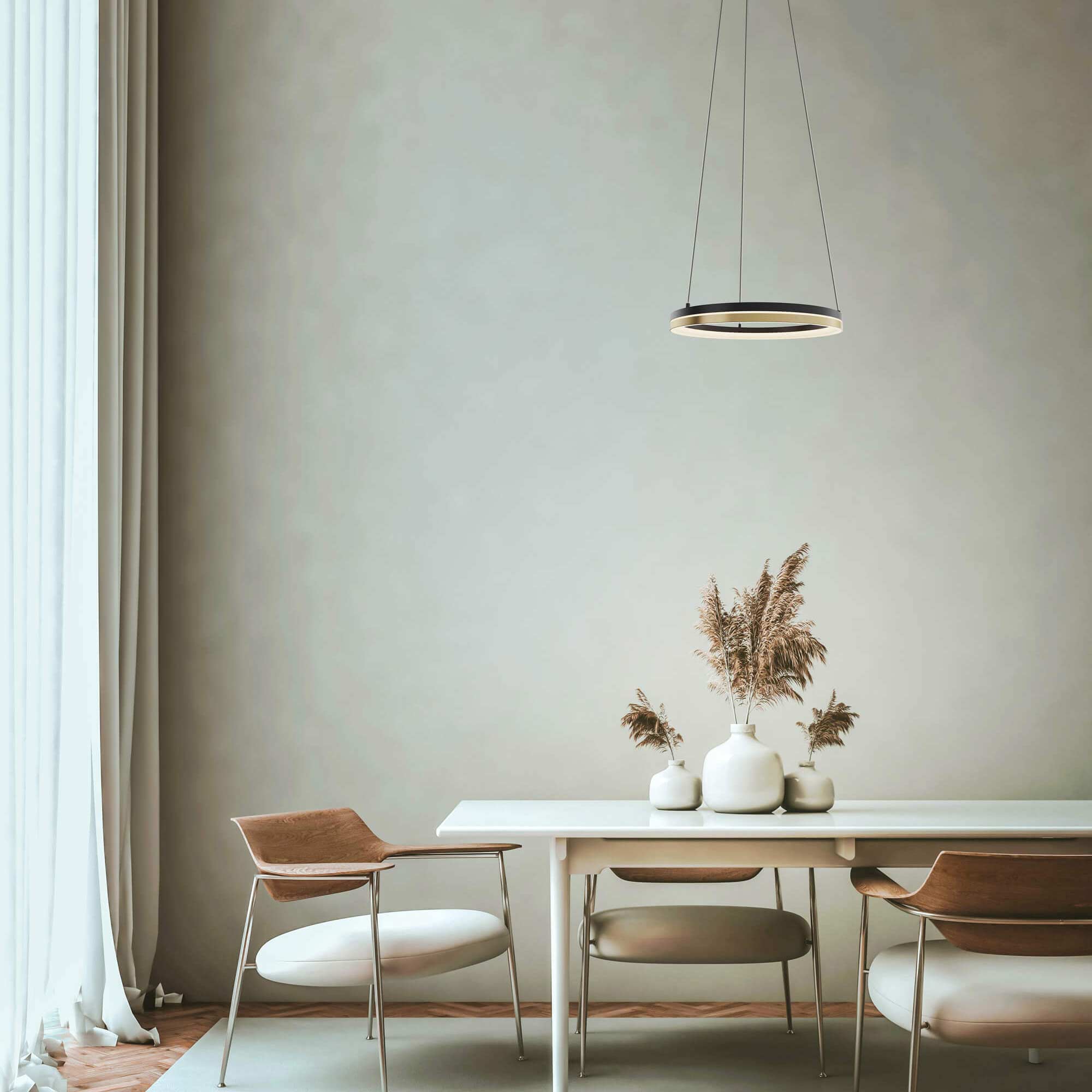 Sweeping lines and a circular frame make the Eclipse LED Pendant Light from DALS a sleek addition to a small dining nook or an entryway foyer. Energy efficient elements make it a lovely minimalist look and feel to contemporary homes.