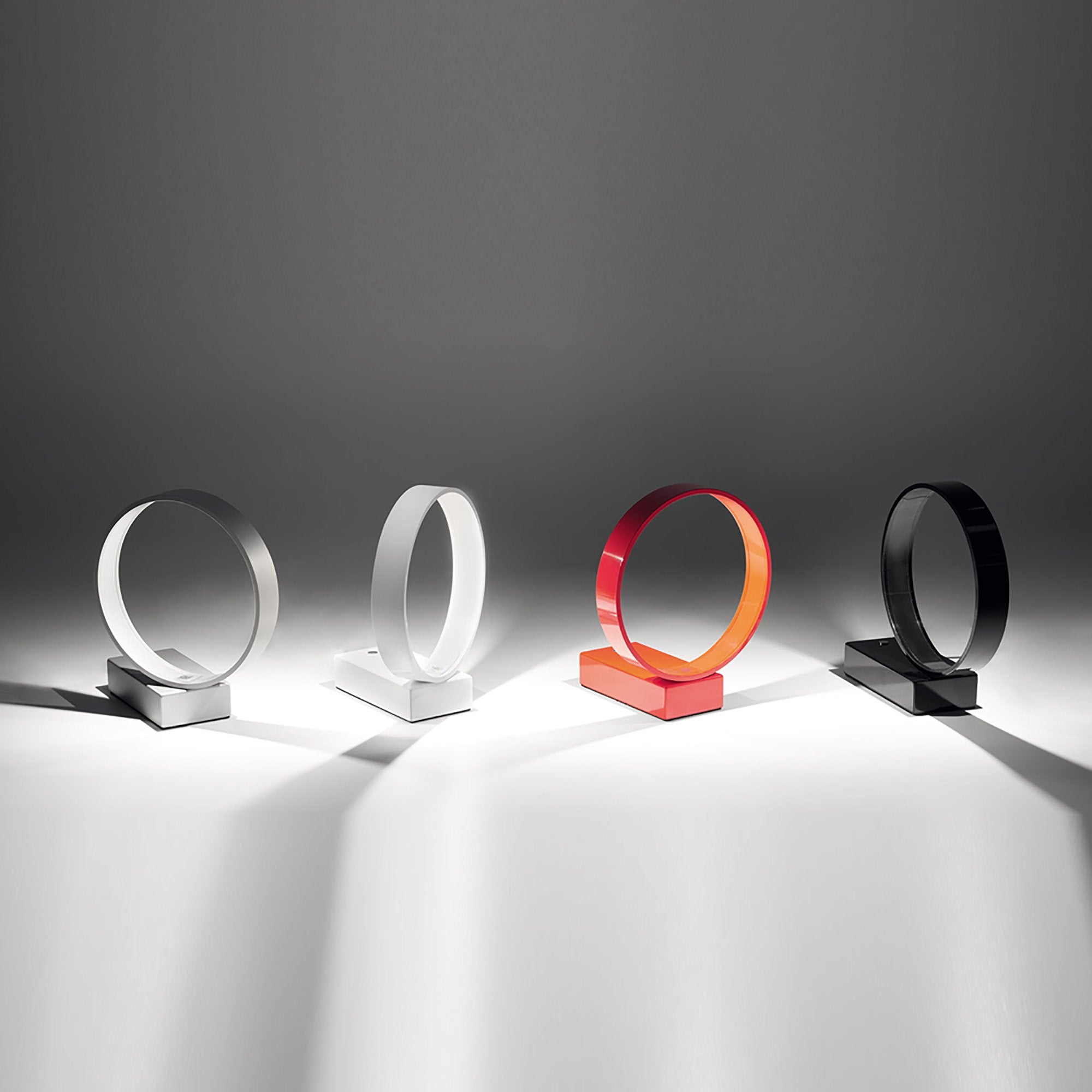 A glowing ring of light creates an ultra-modern silhouette for the Eclittica 20 LED Table Lamp from Artemide.