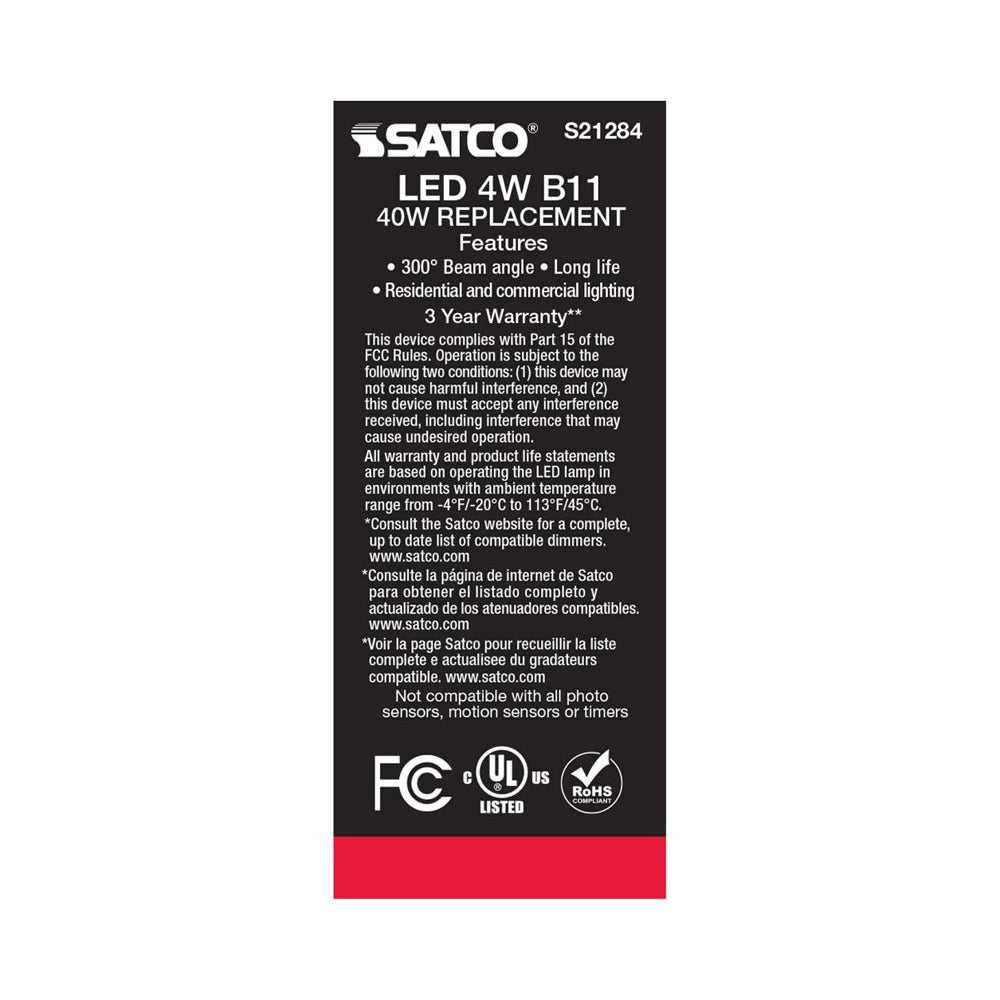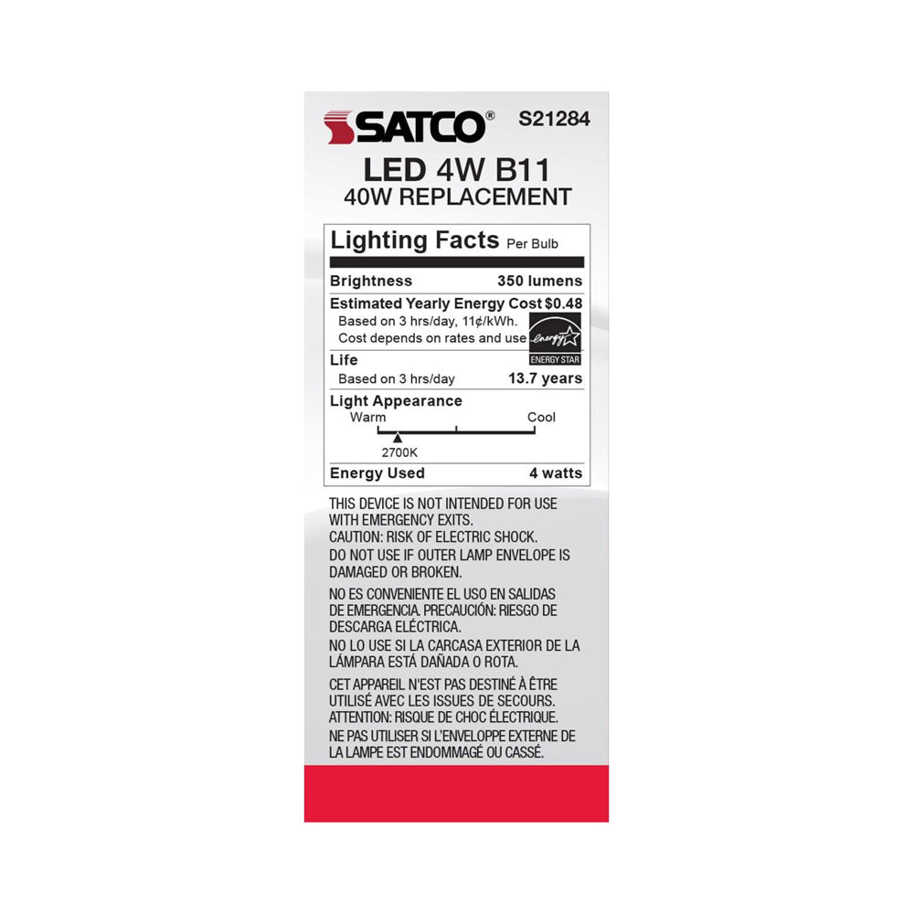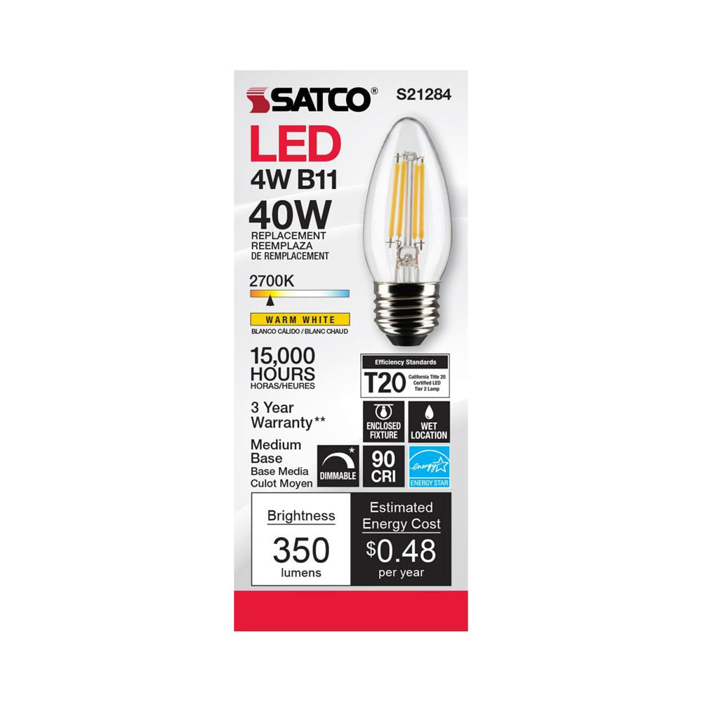 - 1 X 4W 120V E26(medium base) B11 LED lamp; 350 lumens, 90 CRI, 2700K