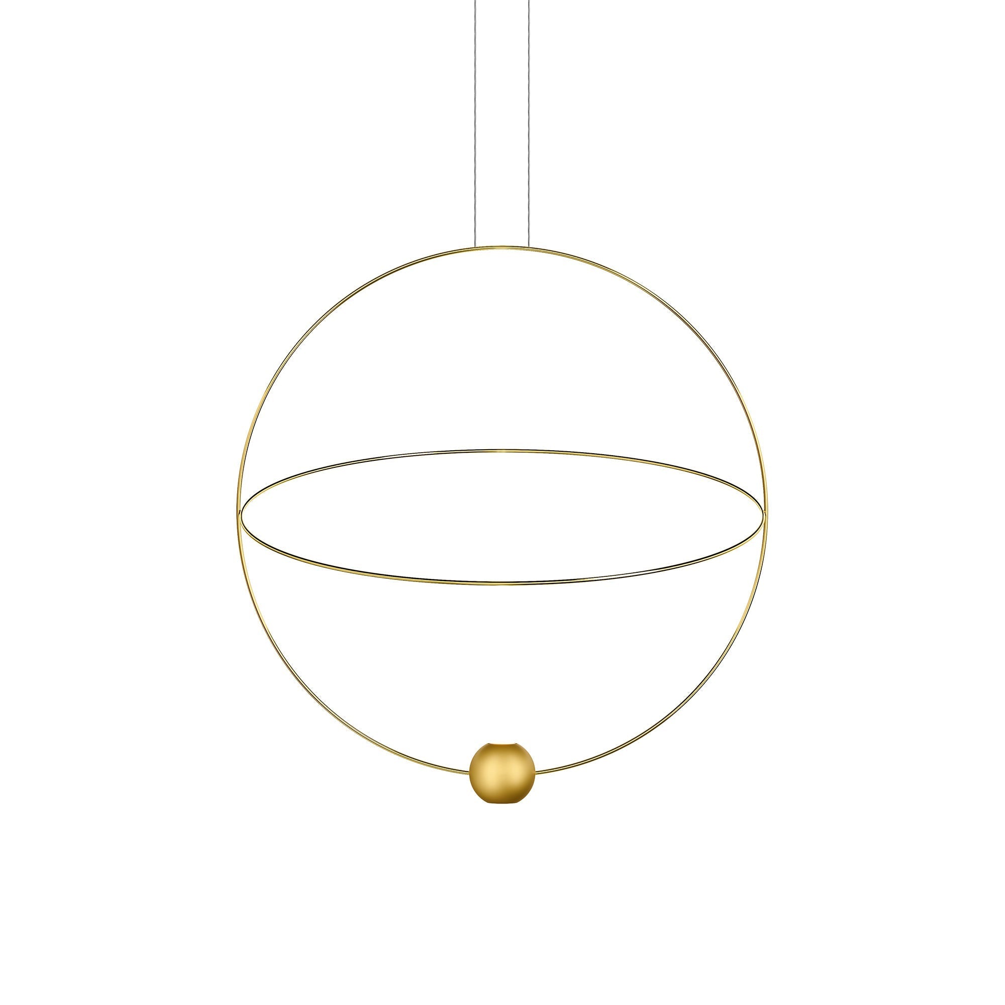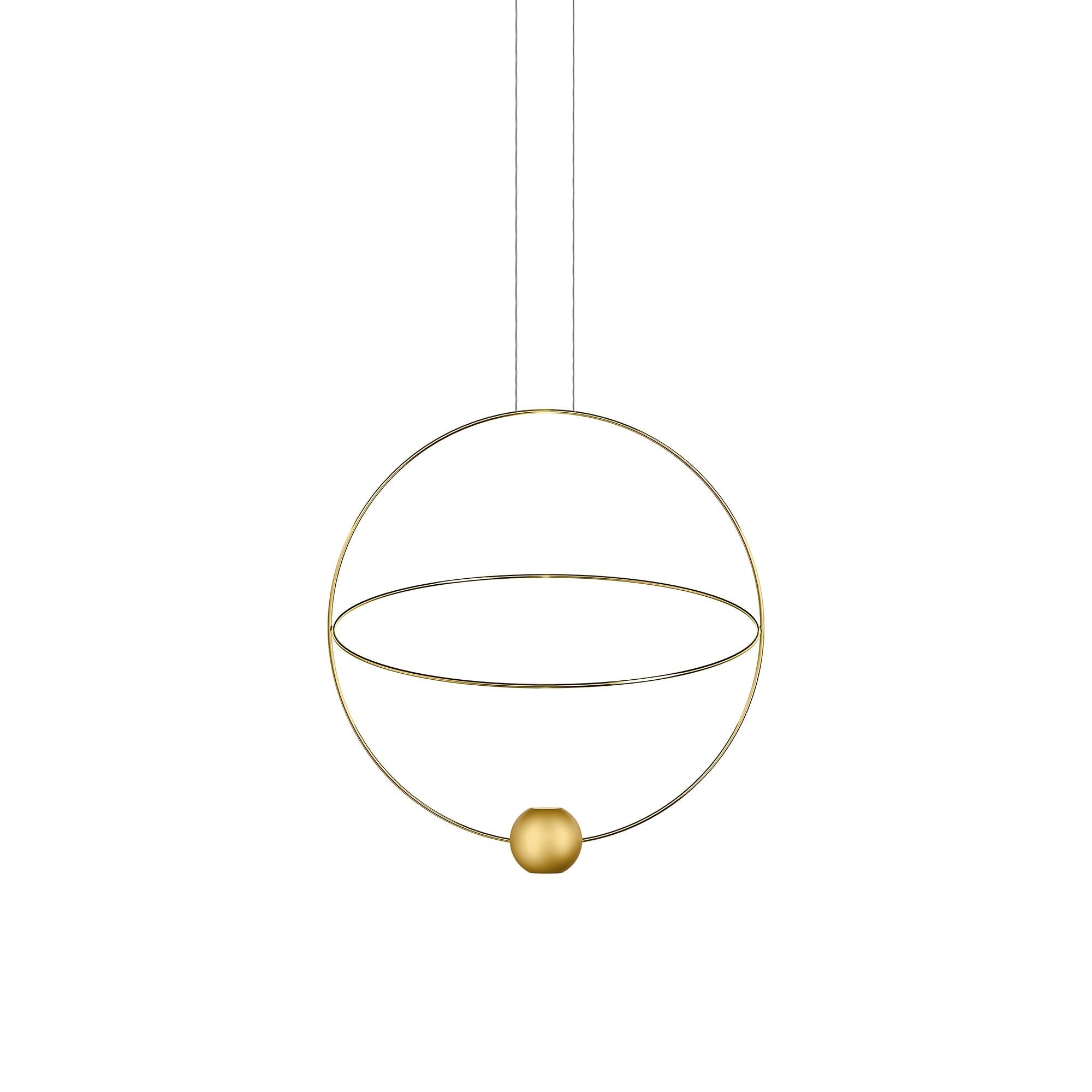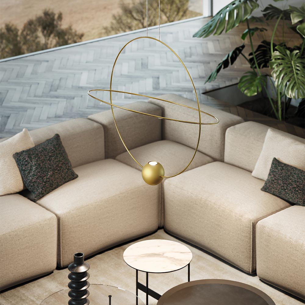 Grace and fluidity infuse elegance to the astral inspirations of the Elara LED Pendant Light from LODES. Sublimely designed to evoke the movement of planets cruising the universe, Elara lends geometric appeal with a set of two intersecting rings, one of which can be positioned to fit your space, and a small orb that delivers a rich glow of illumination, adding function to mesmerizing artistry.