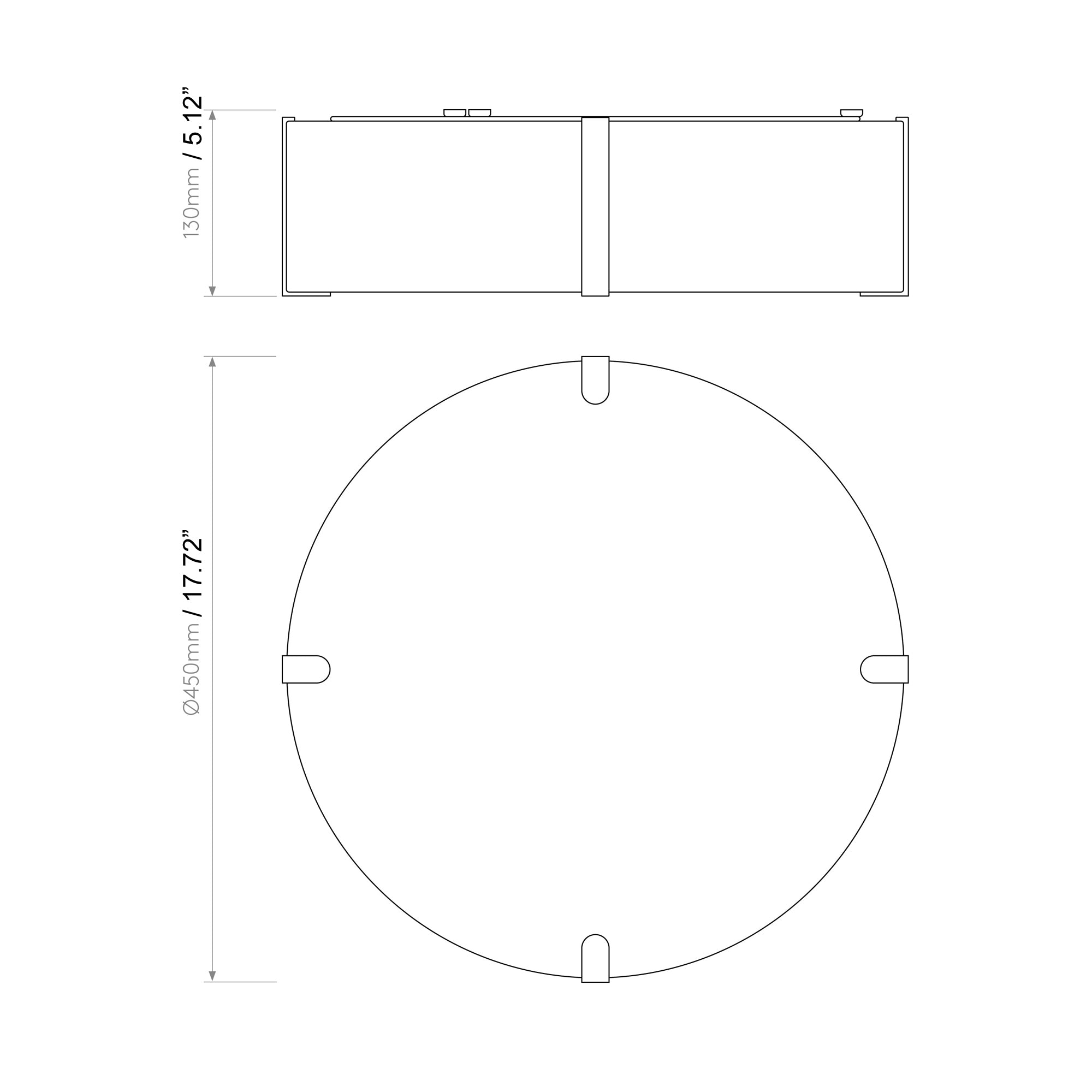 - Small: 17.72"D X 5.12"H