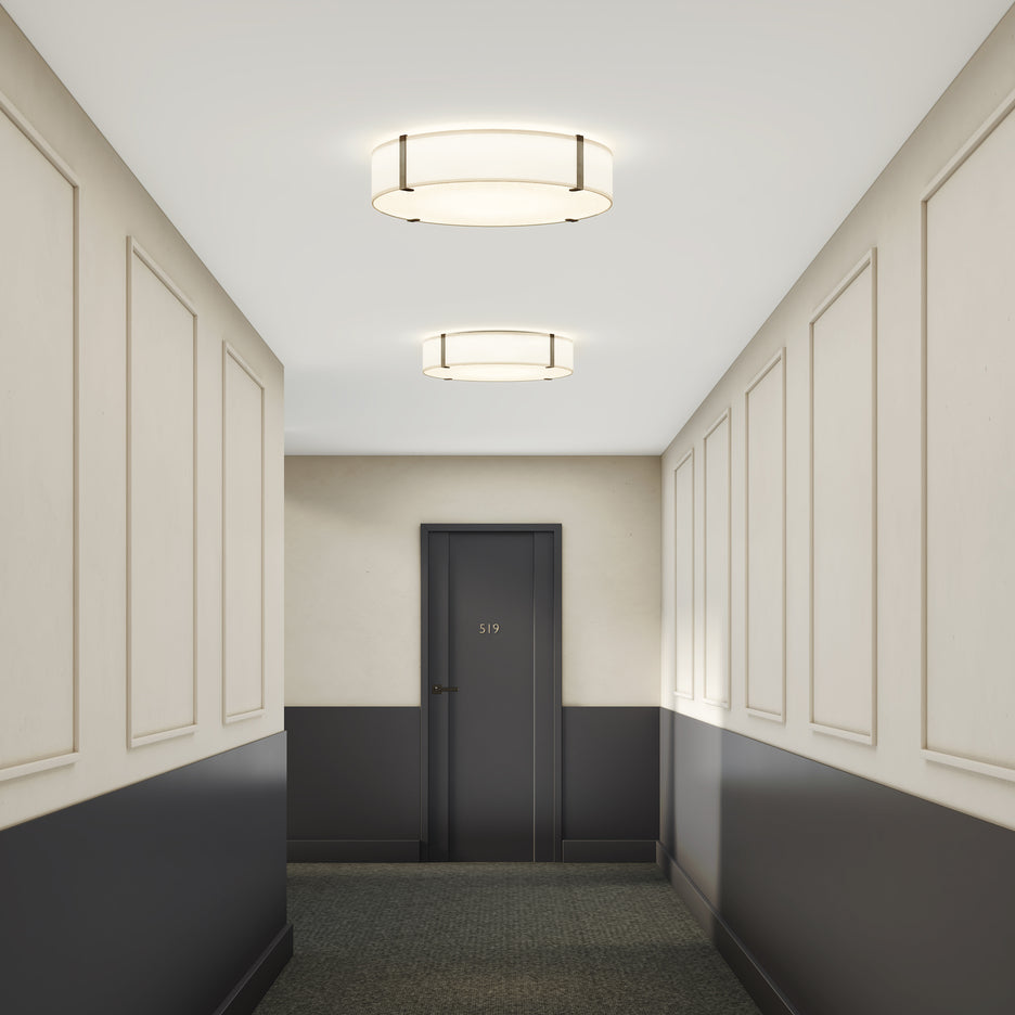 Illuminate interiors with the sophisticated Elba Round Elba Round Flush Mount Ceiling Light from Astro Lighting, designed with a clean minimalist aesthetic and chic flush silhouette. A soft fabric wraps around the graceful exterior edges for a beautiful well-rounded glow.