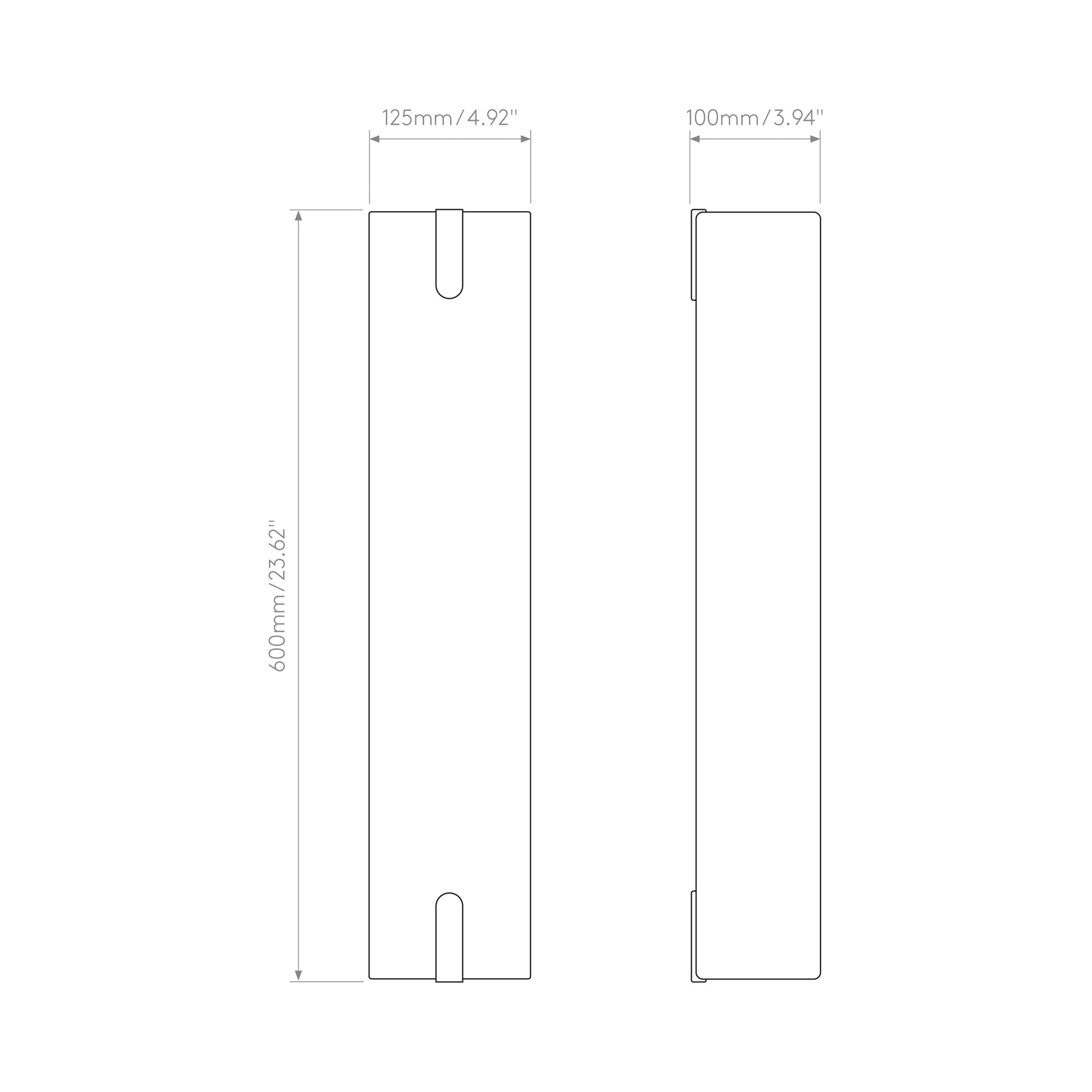 - Tall: 4.92"W X 23.62"H; 3.94" Extension