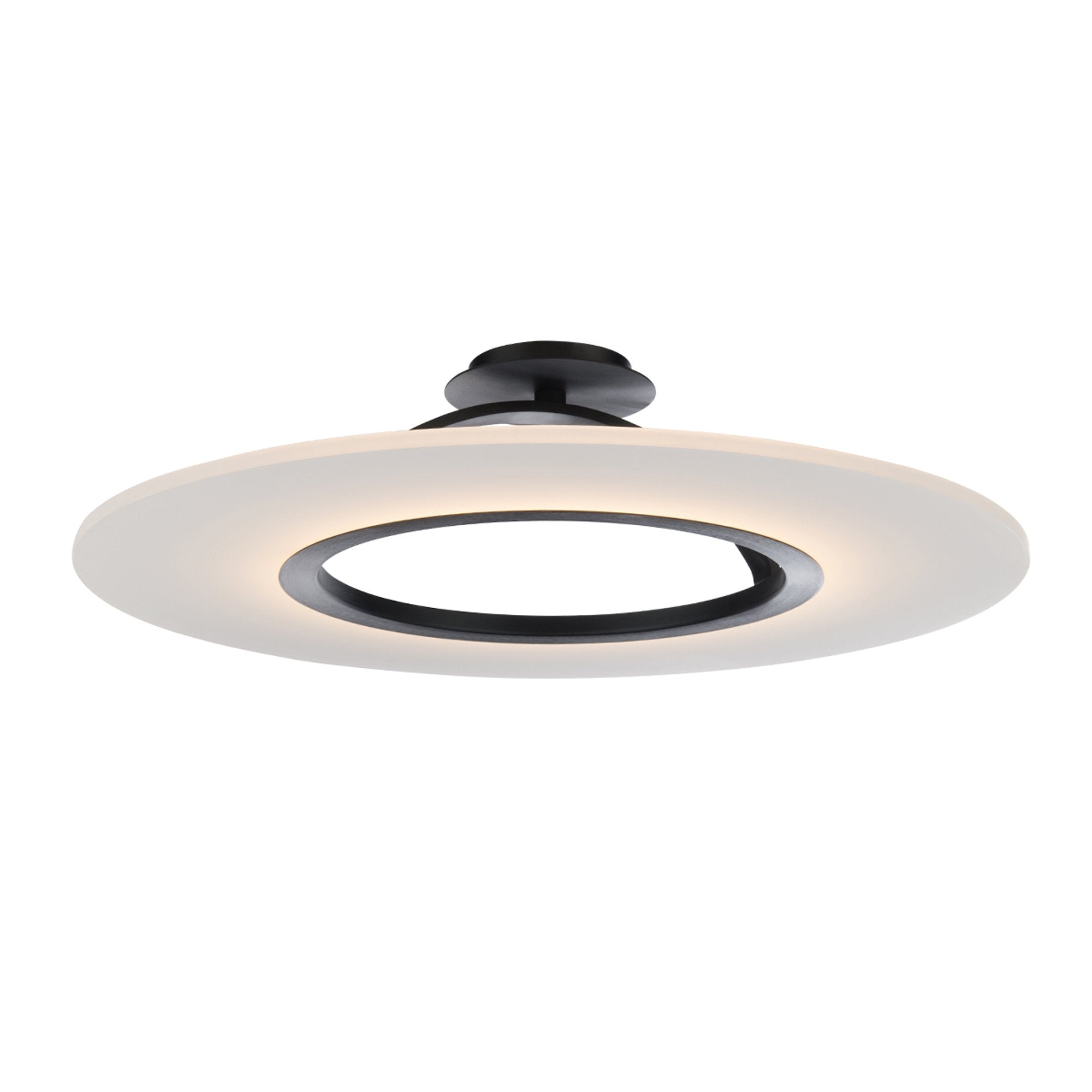 Embrace the space-inspired design of the Elektron LED Convertible Semi-Flush Mount Ceiling Light from dweLED and its planetary motif, featuring an edge-lit acrylic diffuser and aluminum hardware that delivers a fully modern, planetary vibe to a contemporary kitchen, hallway, or dining space.