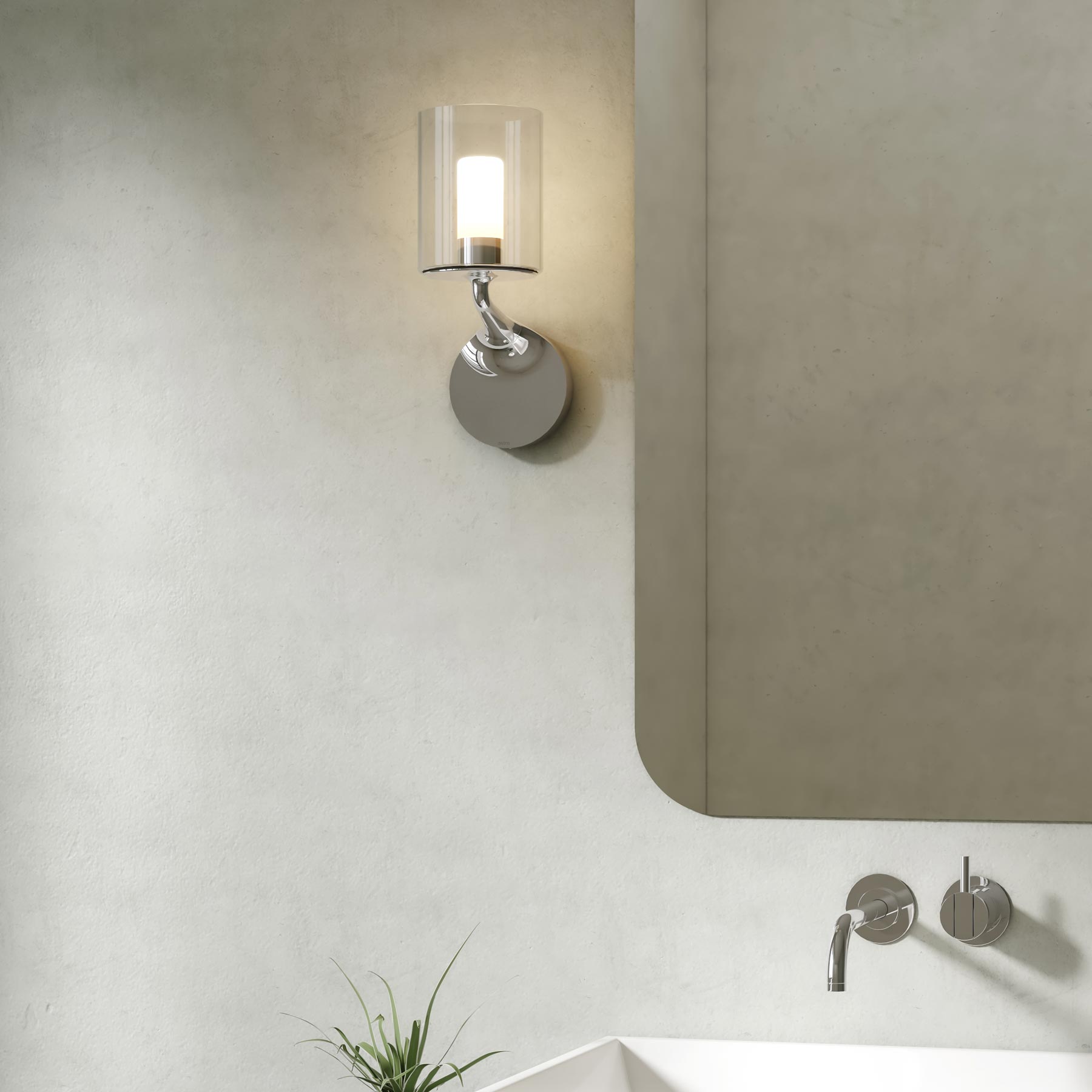 Romance and drama intertwine to create theatrical effects in a livable space in search of ambient and accent lighting. The Elena Wall Light from Astro Lighting repurposes a vintage candelabra motif with an intriguing arm shape and disc-like base. An opal glass diffuser adopts cylinder silhouetting, as a cylinder glass shade offers radiant glam.