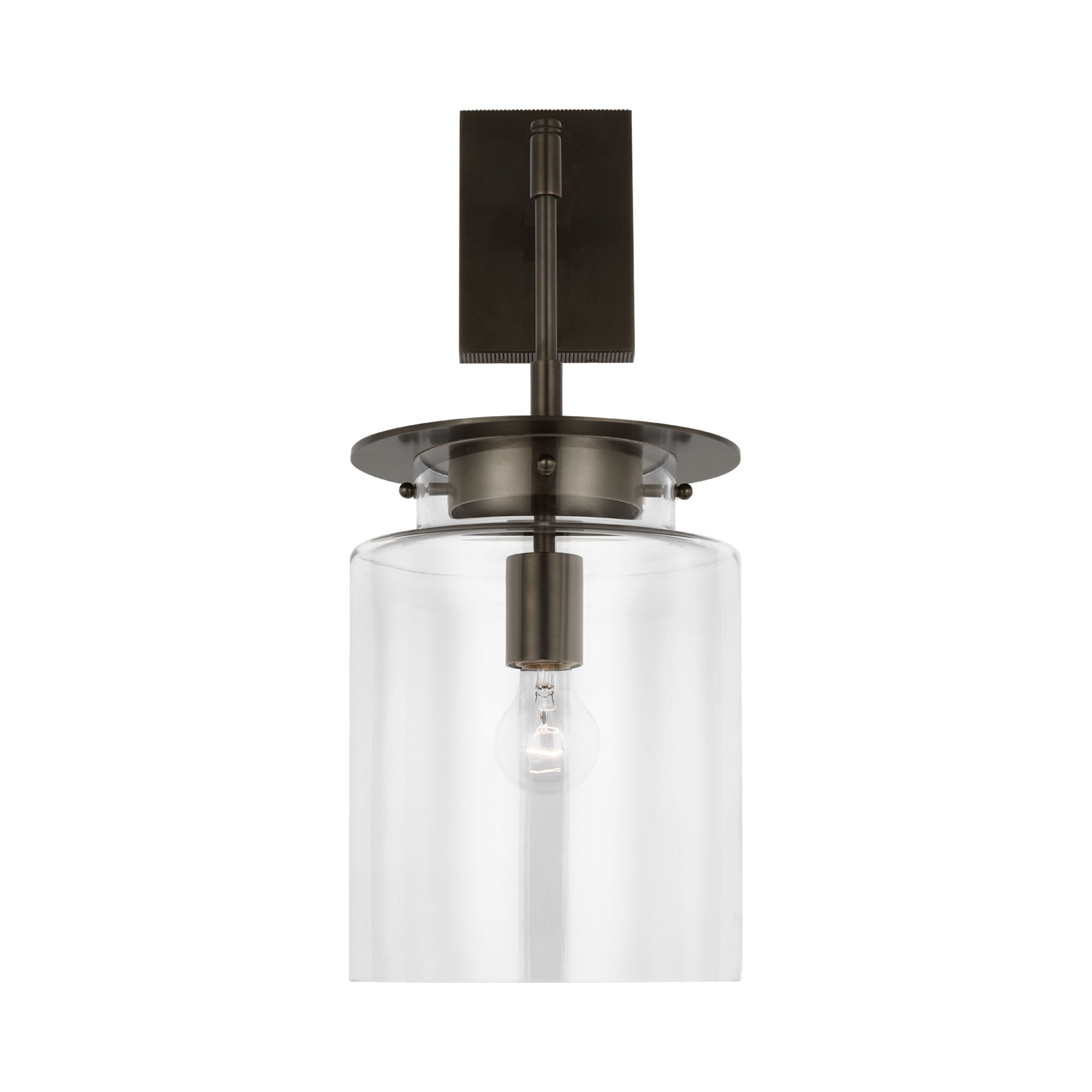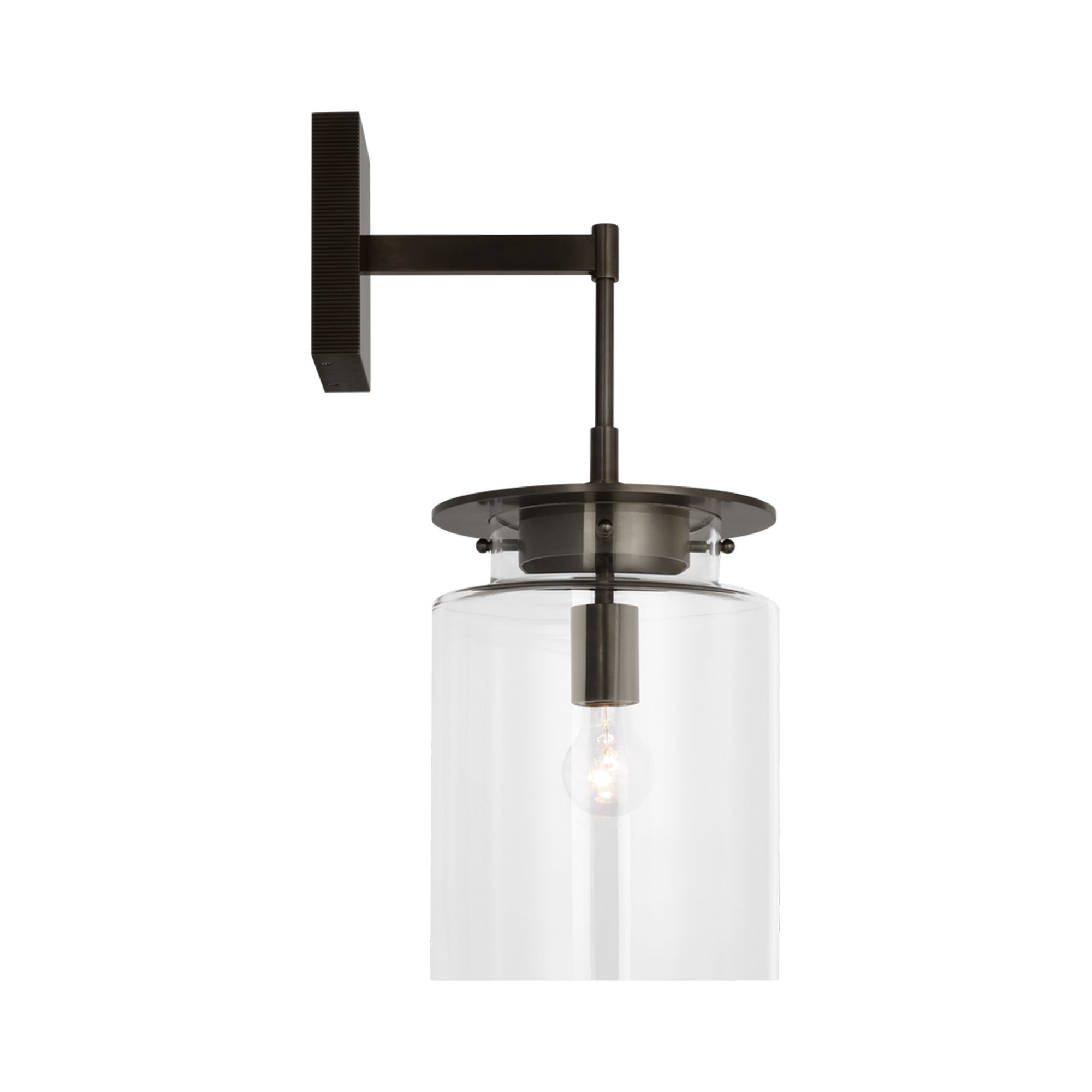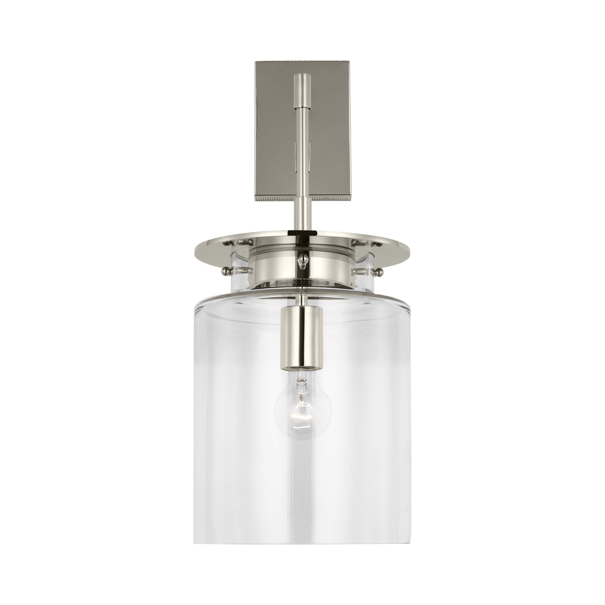 The Elias Wall Light from Visual Comfort Signature cleverly morphs industrial accents into a chic modern fixture, producing a timeless example of elegance. Metal framing and decorative accents make the most of glass forming a cylinder shade, a marriage known to designers with endless appeal.