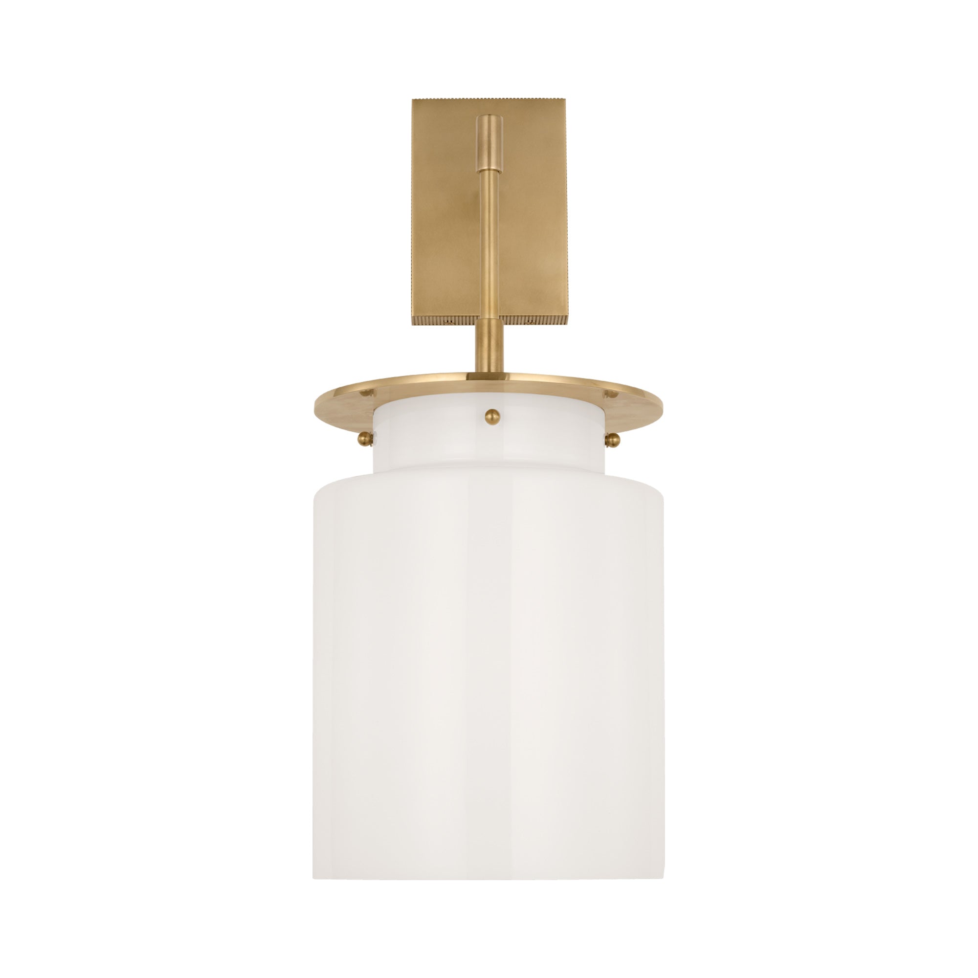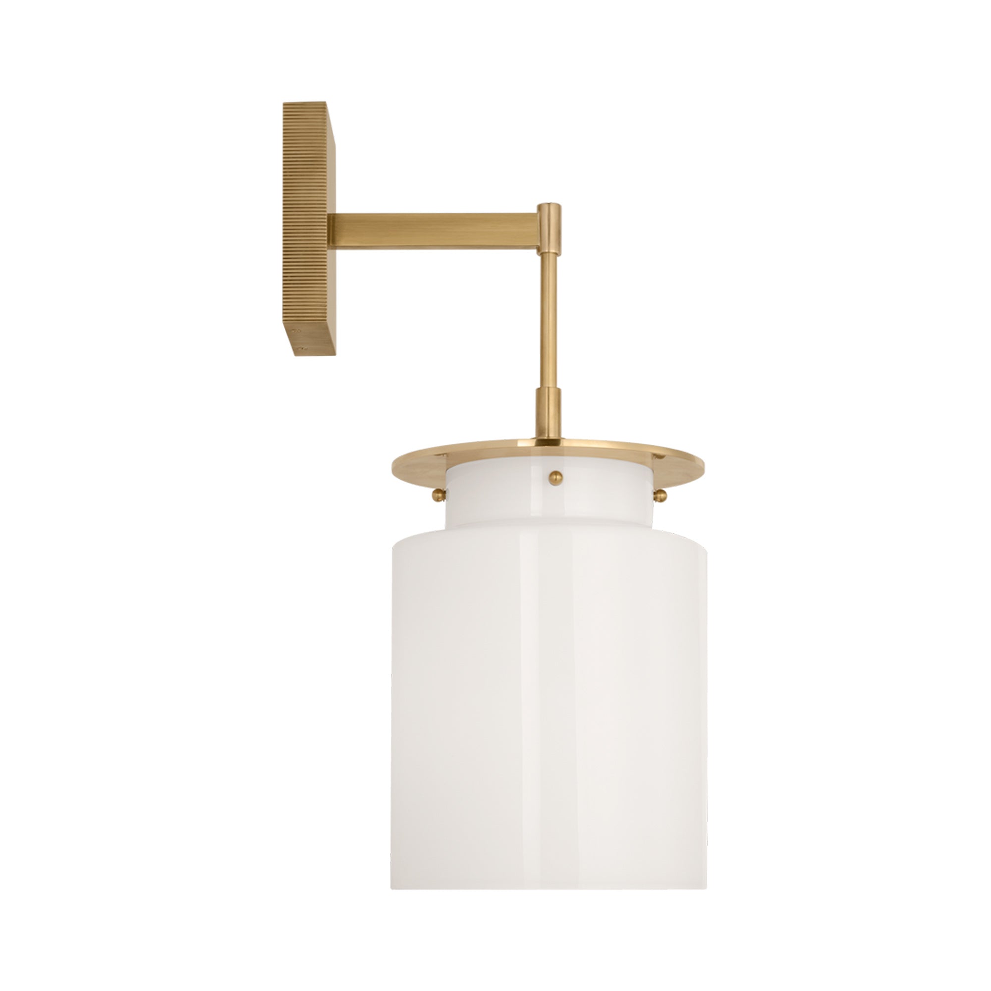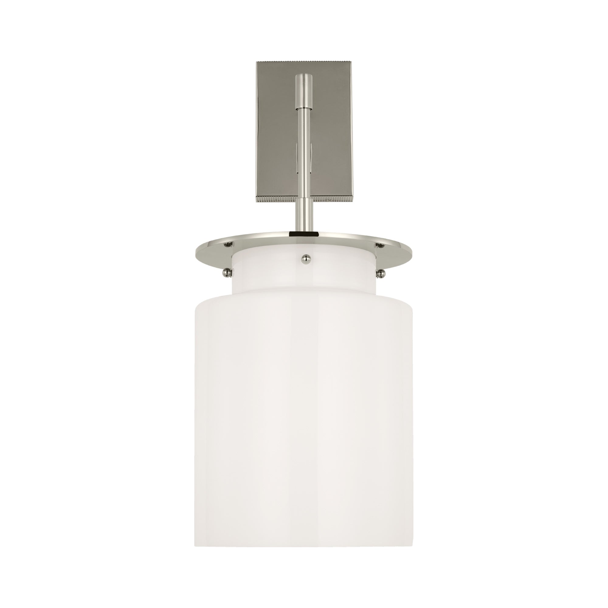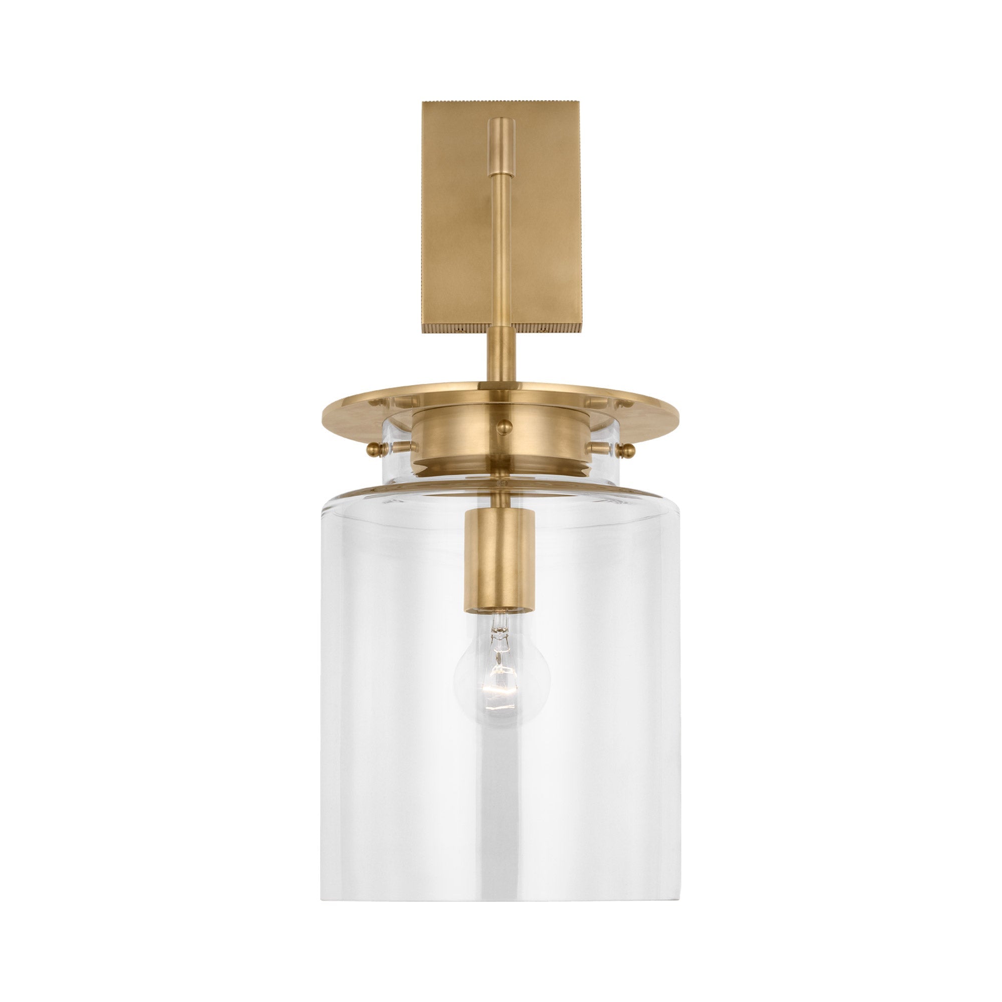 The Elias Wall Light from Visual Comfort Signature cleverly morphs industrial accents into a chic modern fixture, producing a timeless example of elegance. Metal framing and decorative accents make the most of glass forming a cylinder shade, a marriage known to designers with endless appeal.
