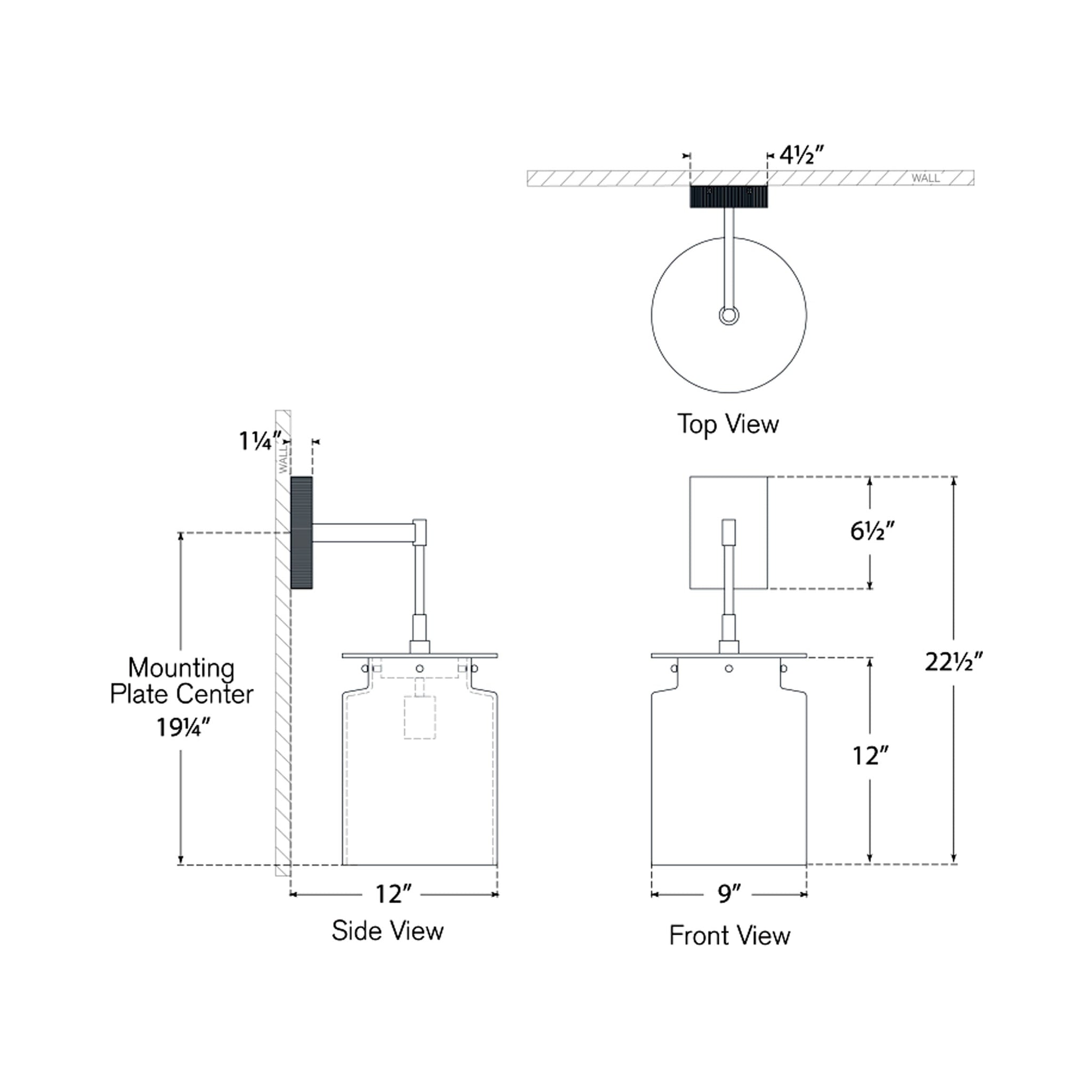 - Dimensions: 9"W X 22.5"H; 12" Extension