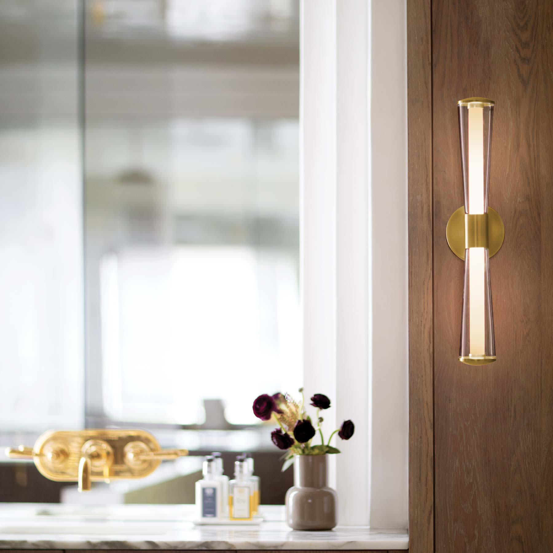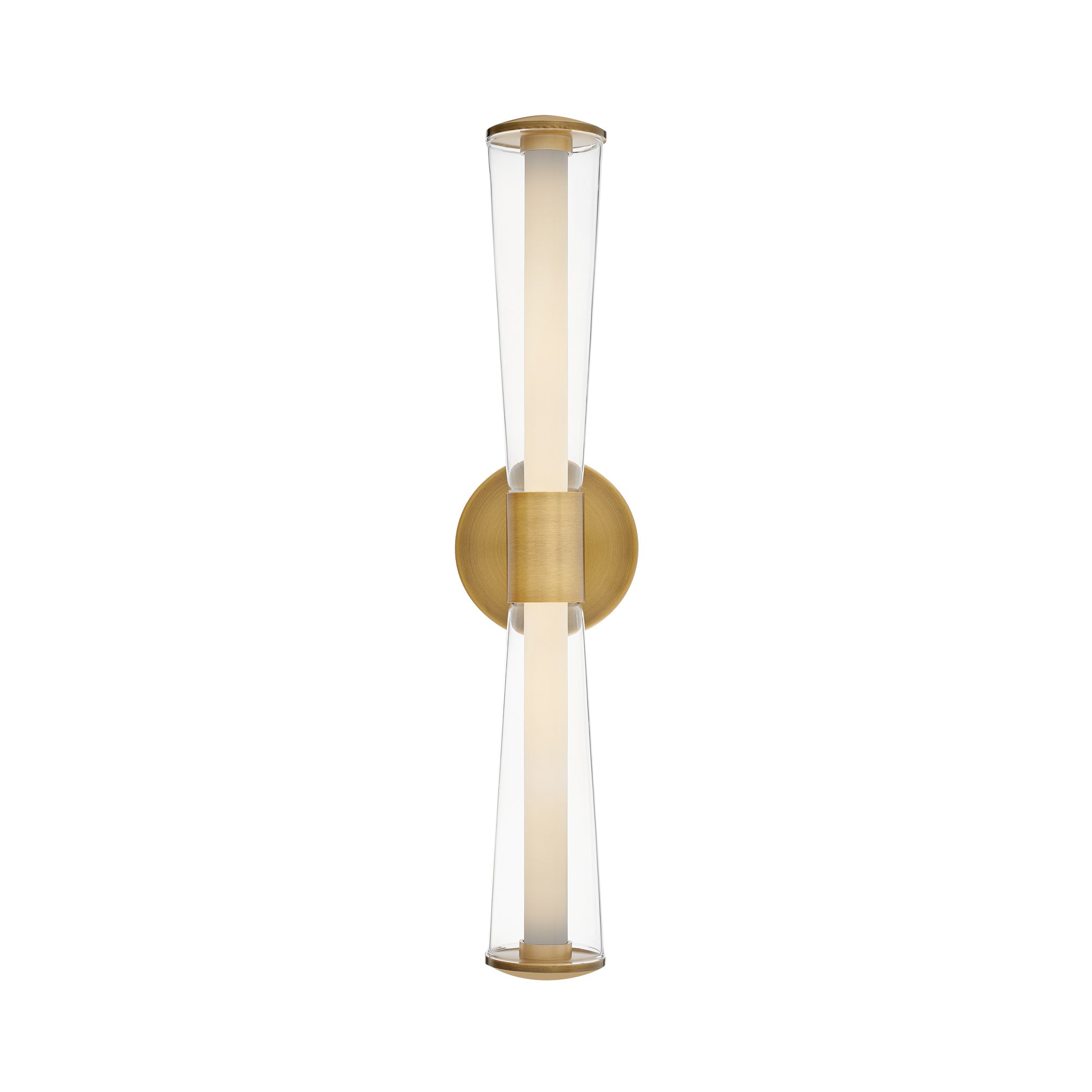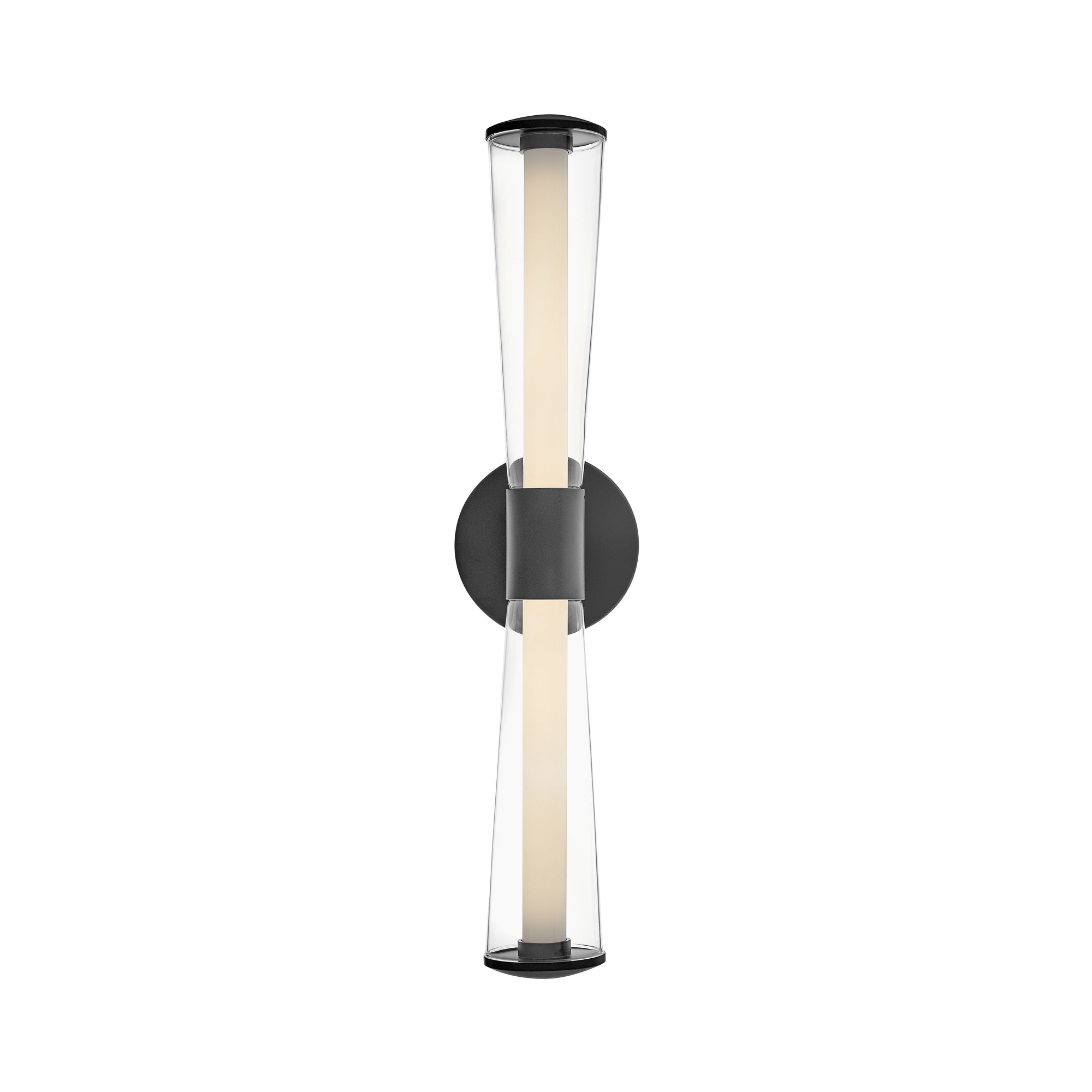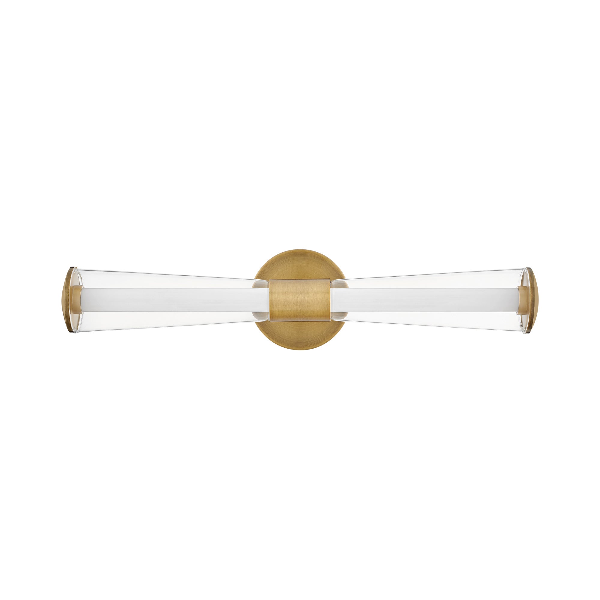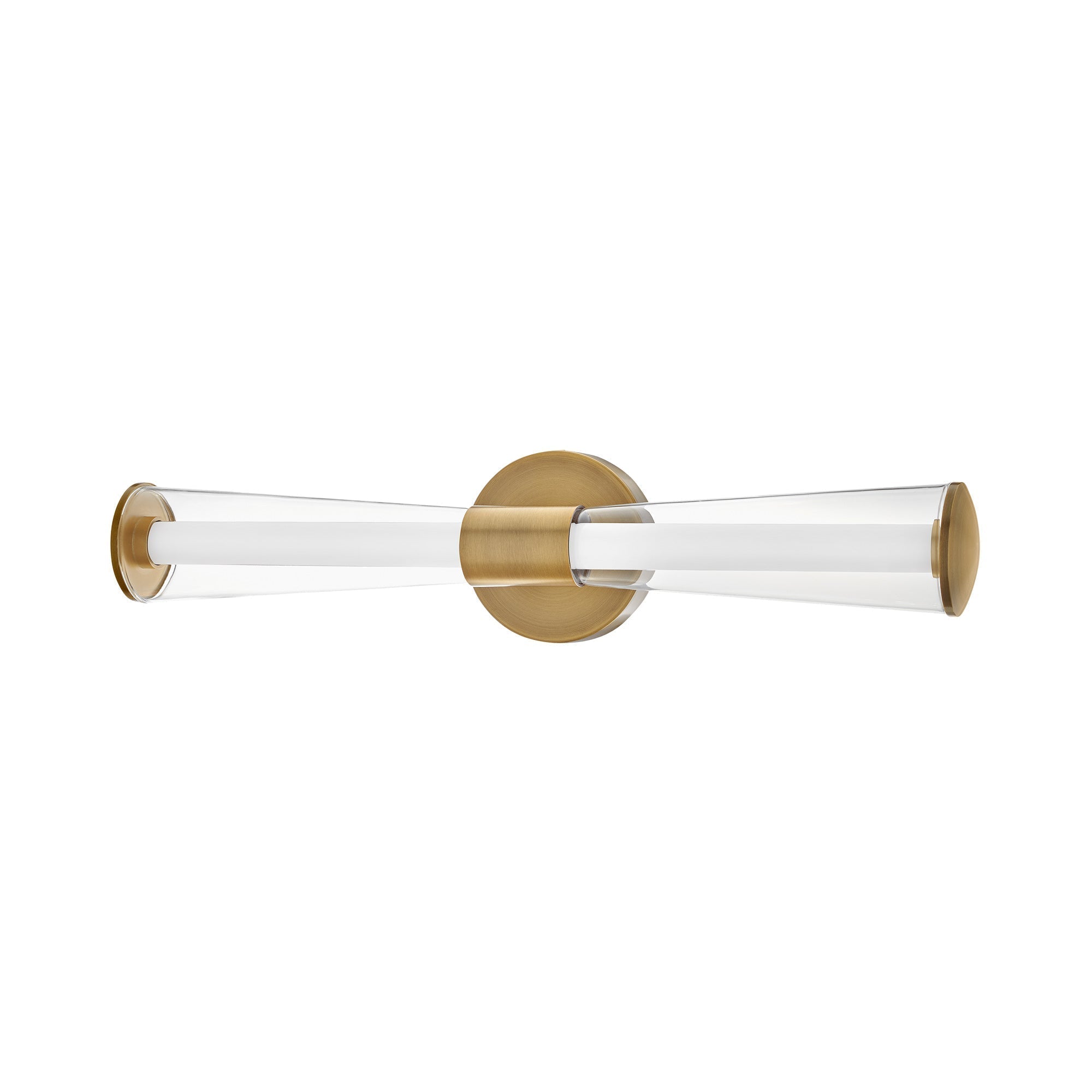 Ambitious design blends with modern architectural structuring to create a showstopping silhouette for the Elin LED Bath Vanity Light from Hinkley. Trumpet-shaped out glass hosts a pair of inner diffusers that glow brilliantly to illuminate your vanity and bathroom space.