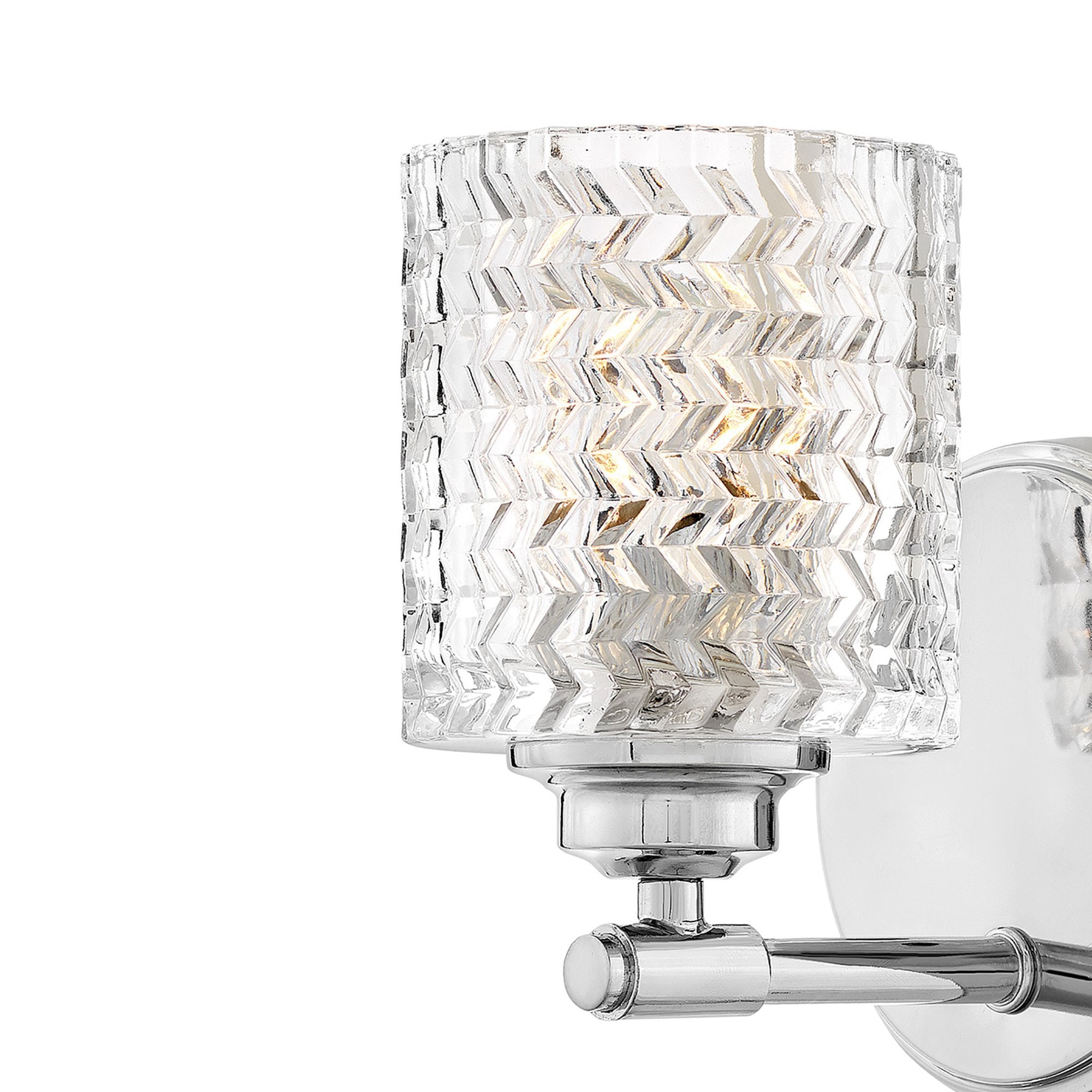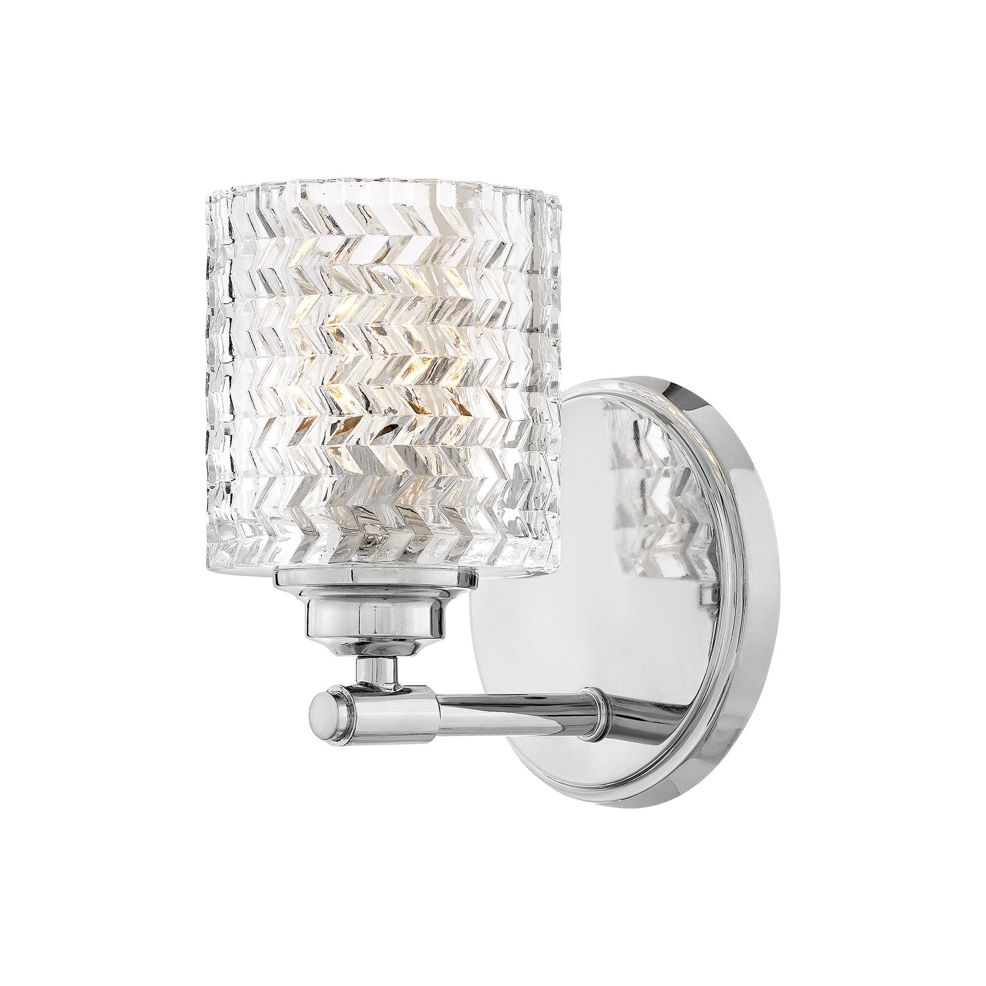 Chevron-cut clear glass creates a sophisticated centerpiece for the Elle Bath Wall Light from Hinkley. Paired with a round wall plate and a simple arm, this engaging sconce lights up elegant decor.