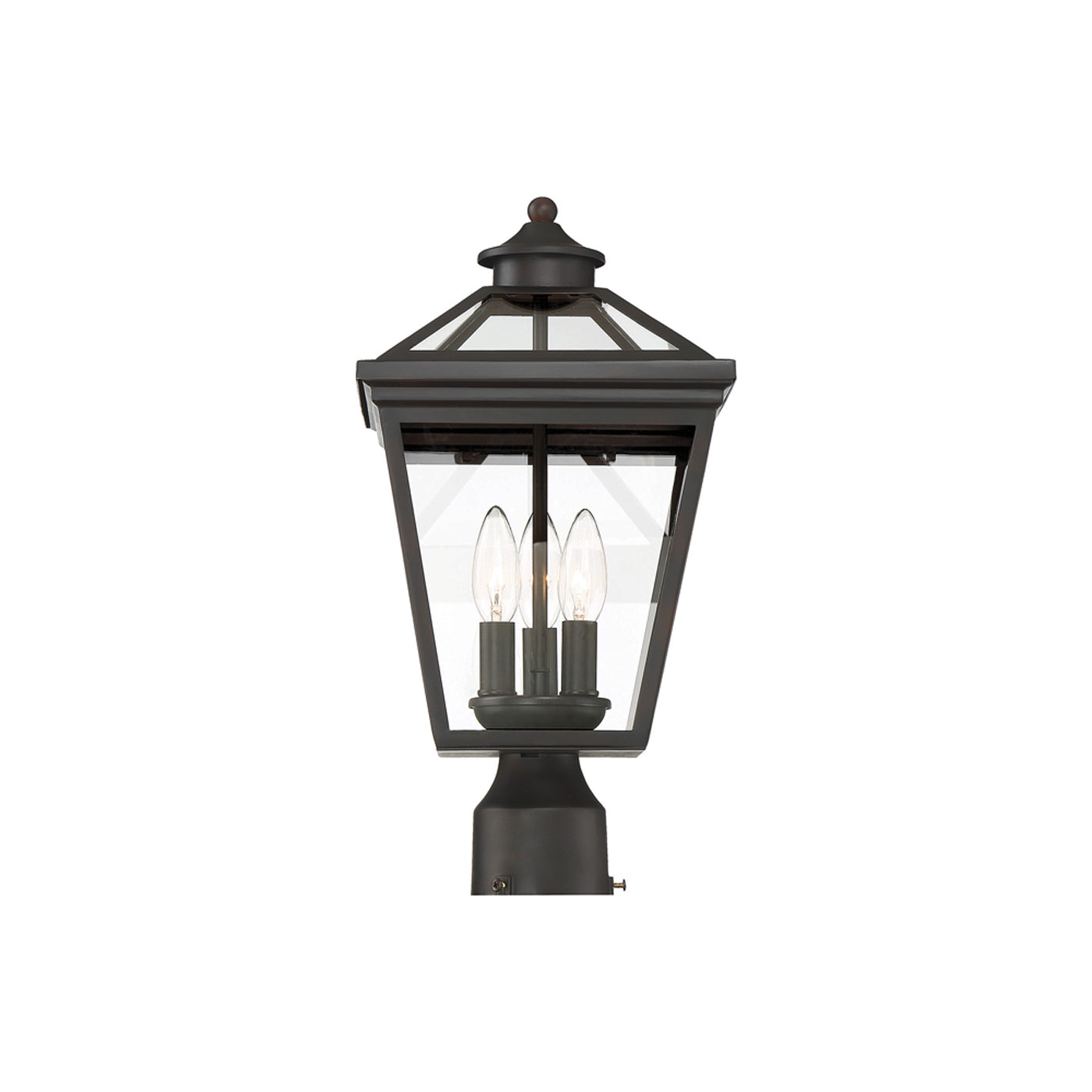 Custom garden spaces and pathways deserve suitable illumination from an elegant source. Choose the Ellijay Outdoor Post Light from Savoy House to flatter an exterior setting with a traditional lantern motif designed with extra care. Metal framing includes ornate accents and nestles clear glass panes that offer a clean view of romantic candelabra-style lighting.