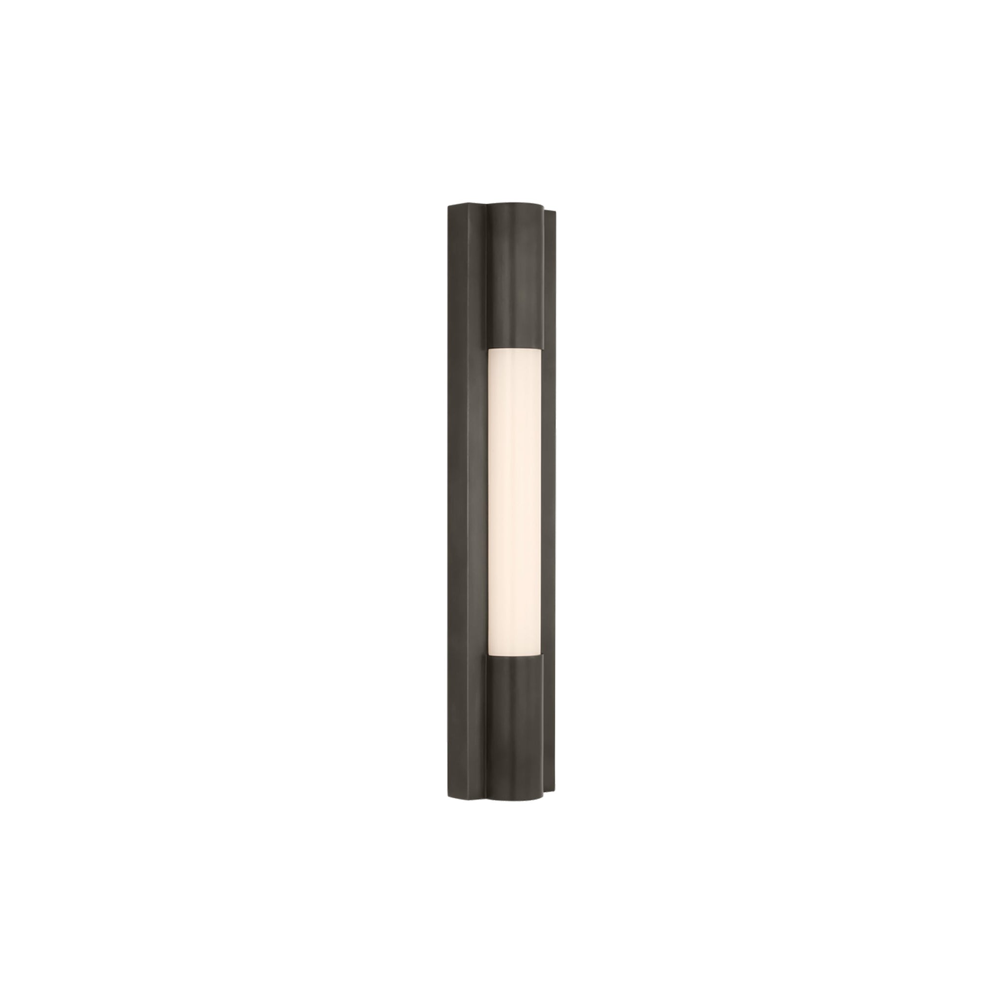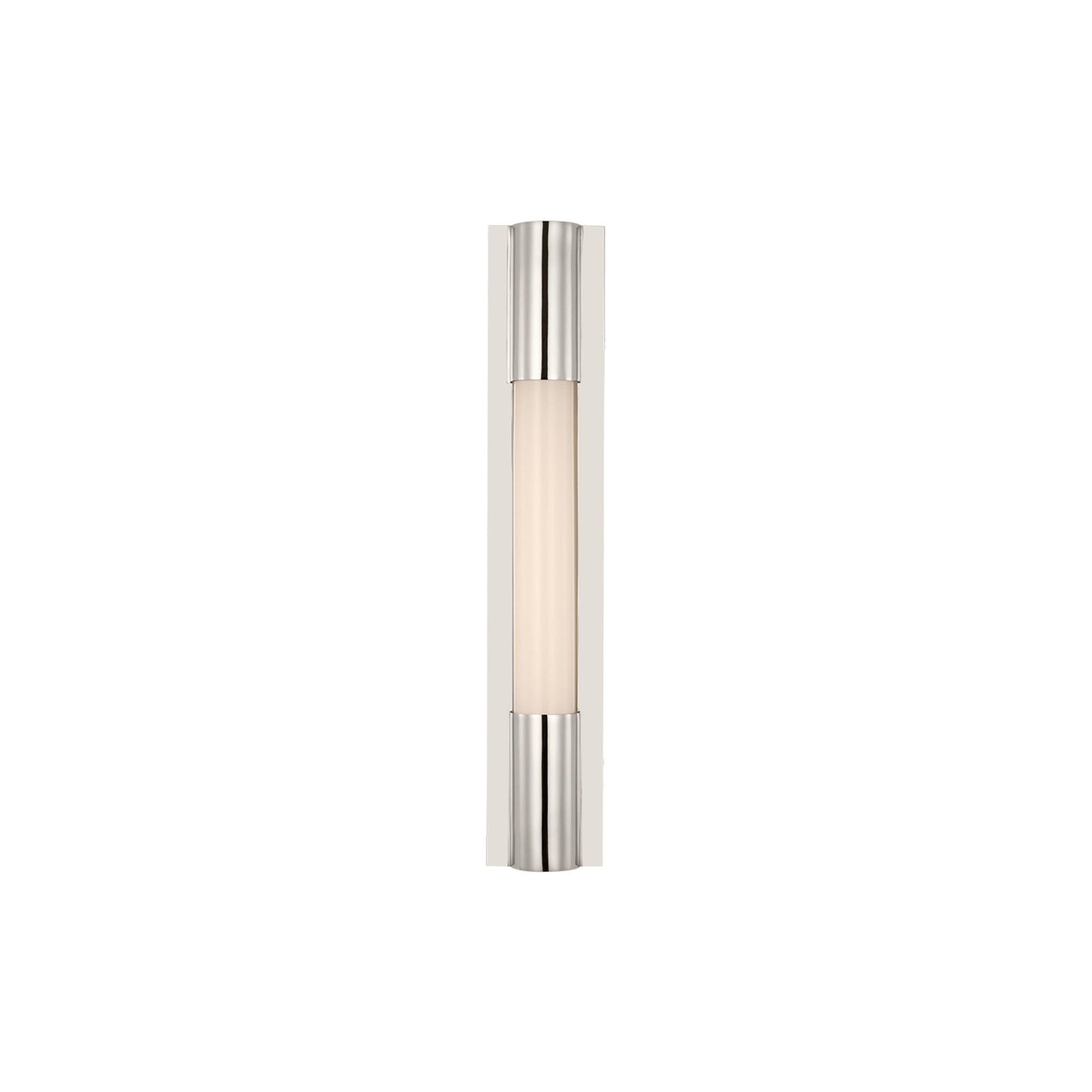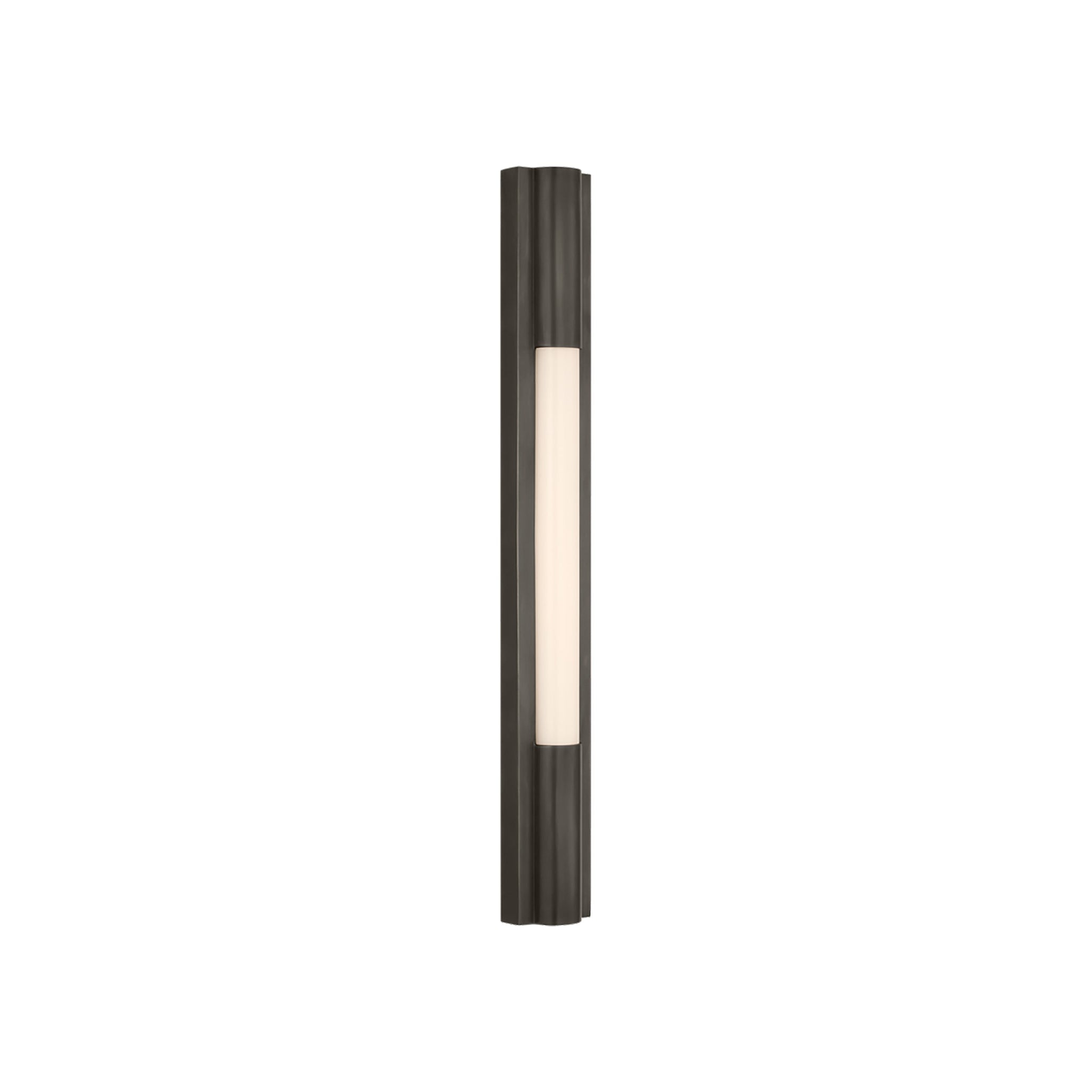 The visual impacts of the Ellington LED Bath Wall Light from Visual Comfort Signature reflect a simple and minimalist look while adding suitable sophistication. Viewed from any angle, this fixture defines classic elegance, straightforward and yet designed with a refined vertical metal frame playing host to a cylindrical white glass shade. This energy-efficient light becomes a staple in living rooms, entryways, and bedrooms.