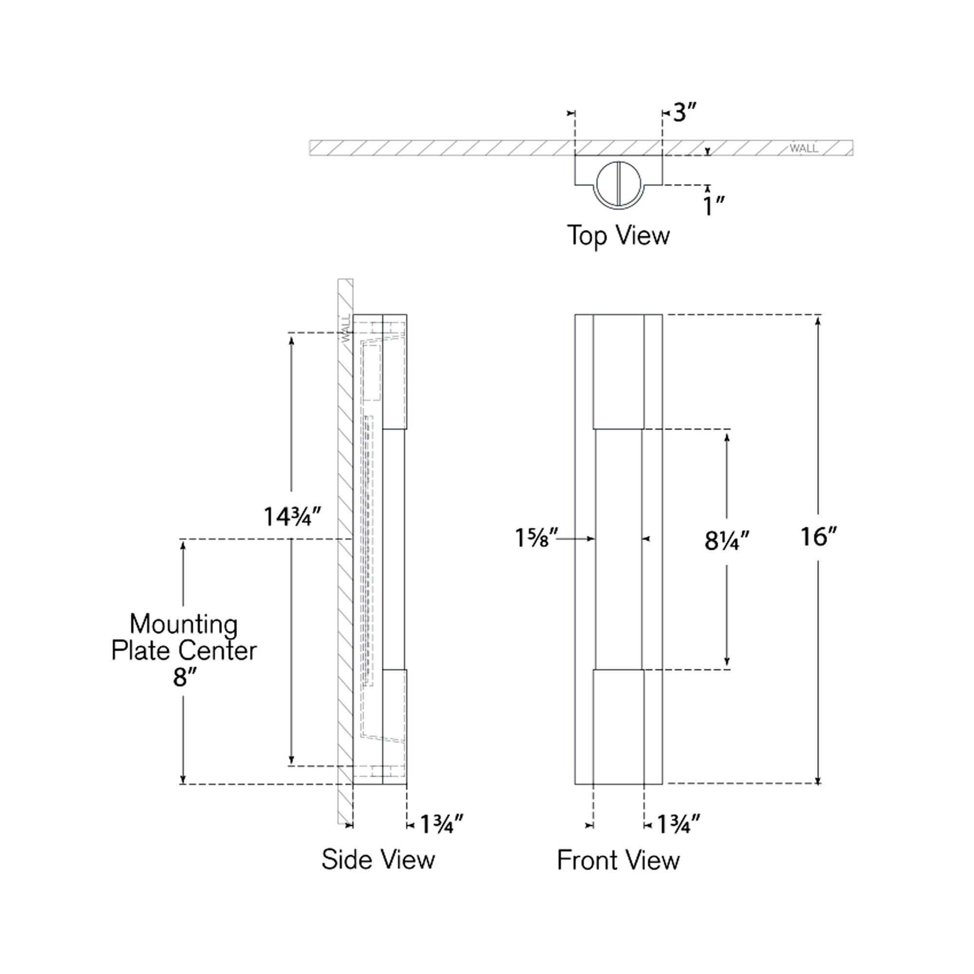 - Backplate: 3"W X 16"H