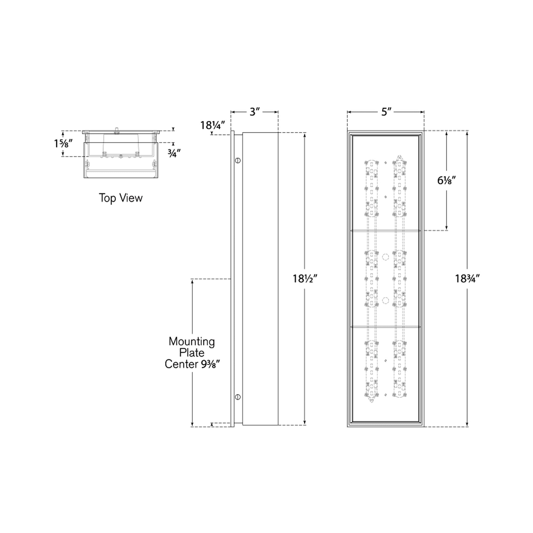 - Backplate: 5"W X 18.75"H