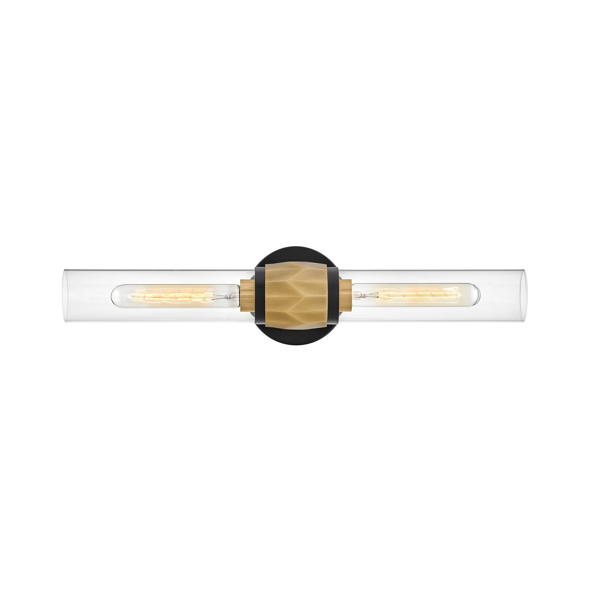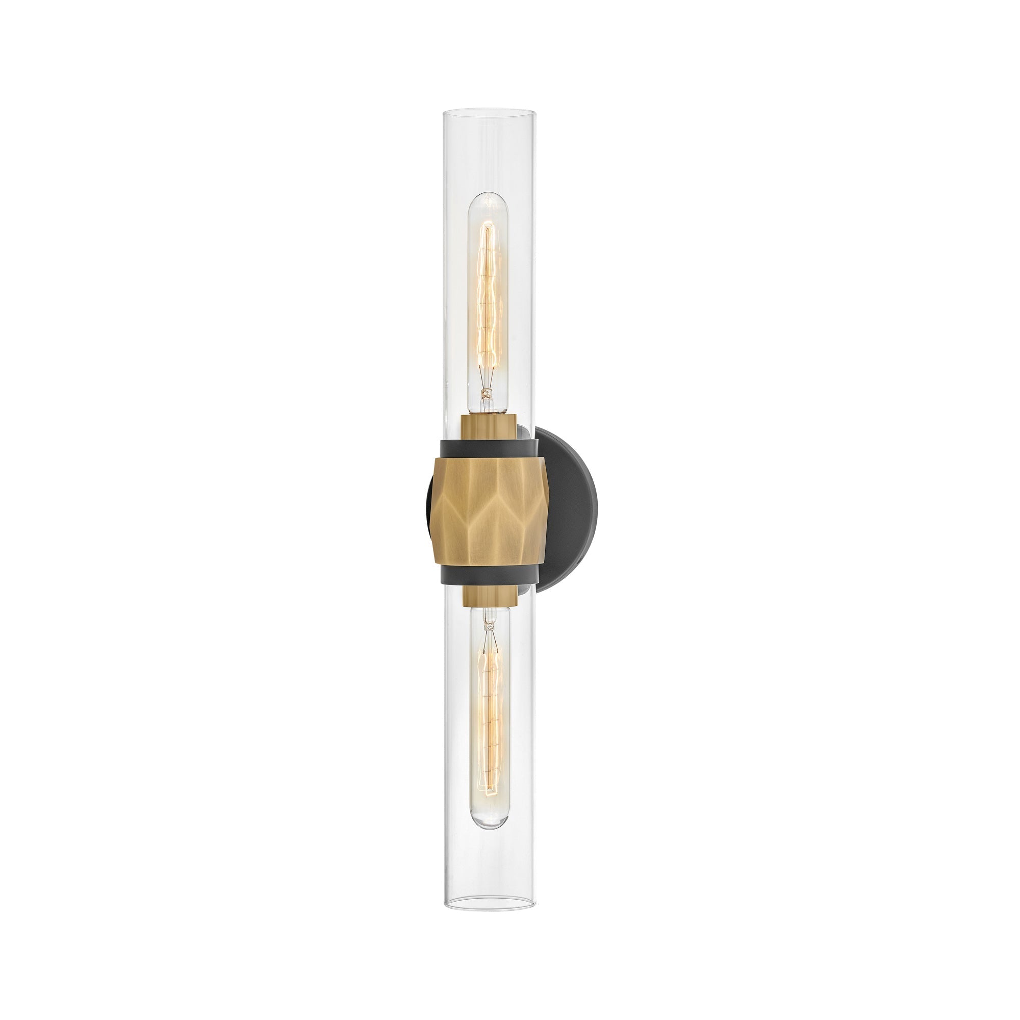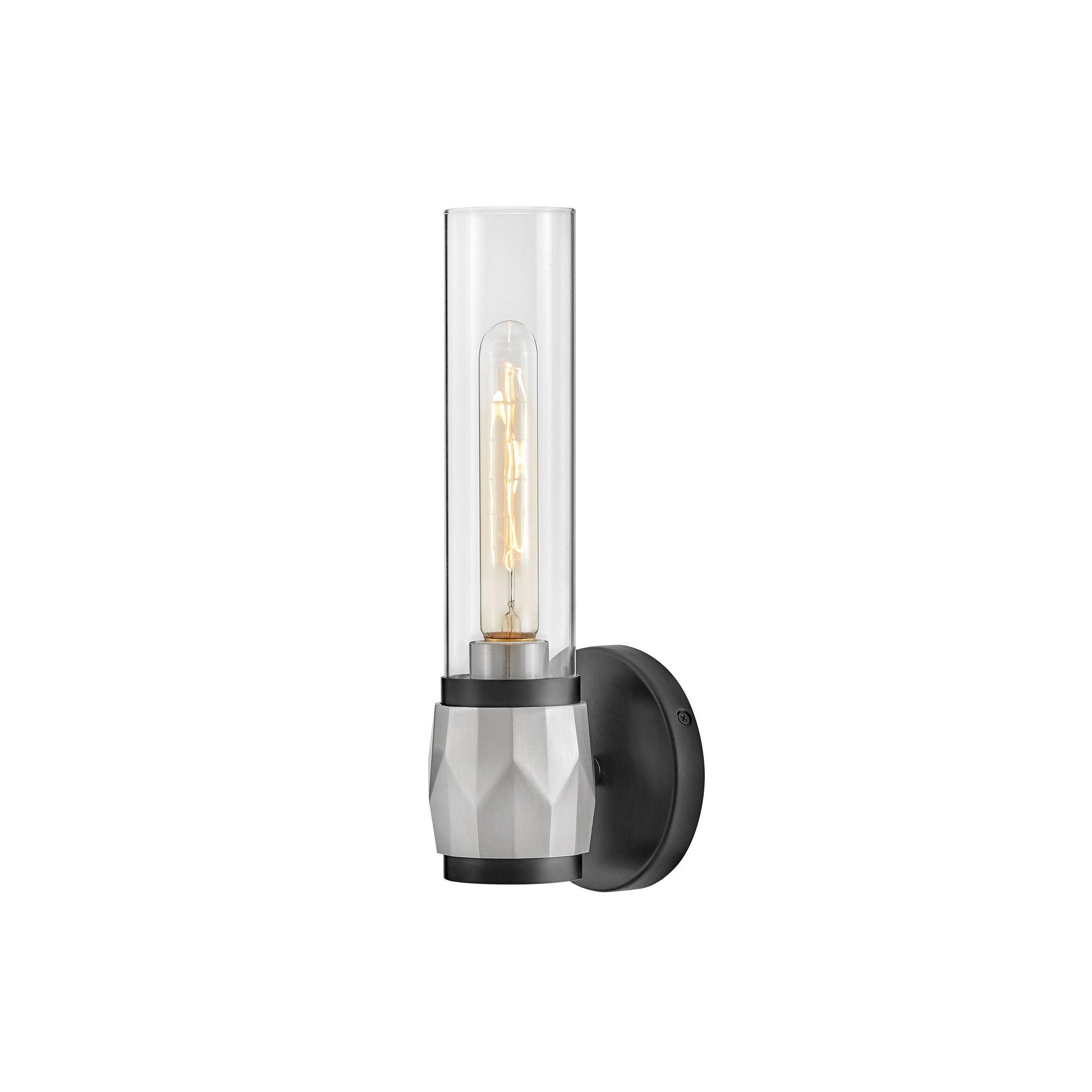 Remnants of classic design inspirations show through in the familiar silhouette of the Ellison Bath Vanity Light from Hinkley. Geometric design accents highlight the base of the light, while a cylinder of clear glass shades the tubular bulb within. Evoking an old world torch, this fixture is a brilliant update for modern industrial spaces.