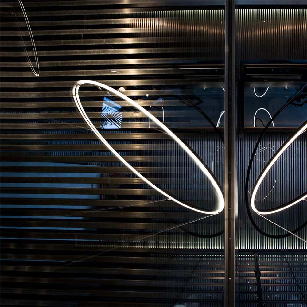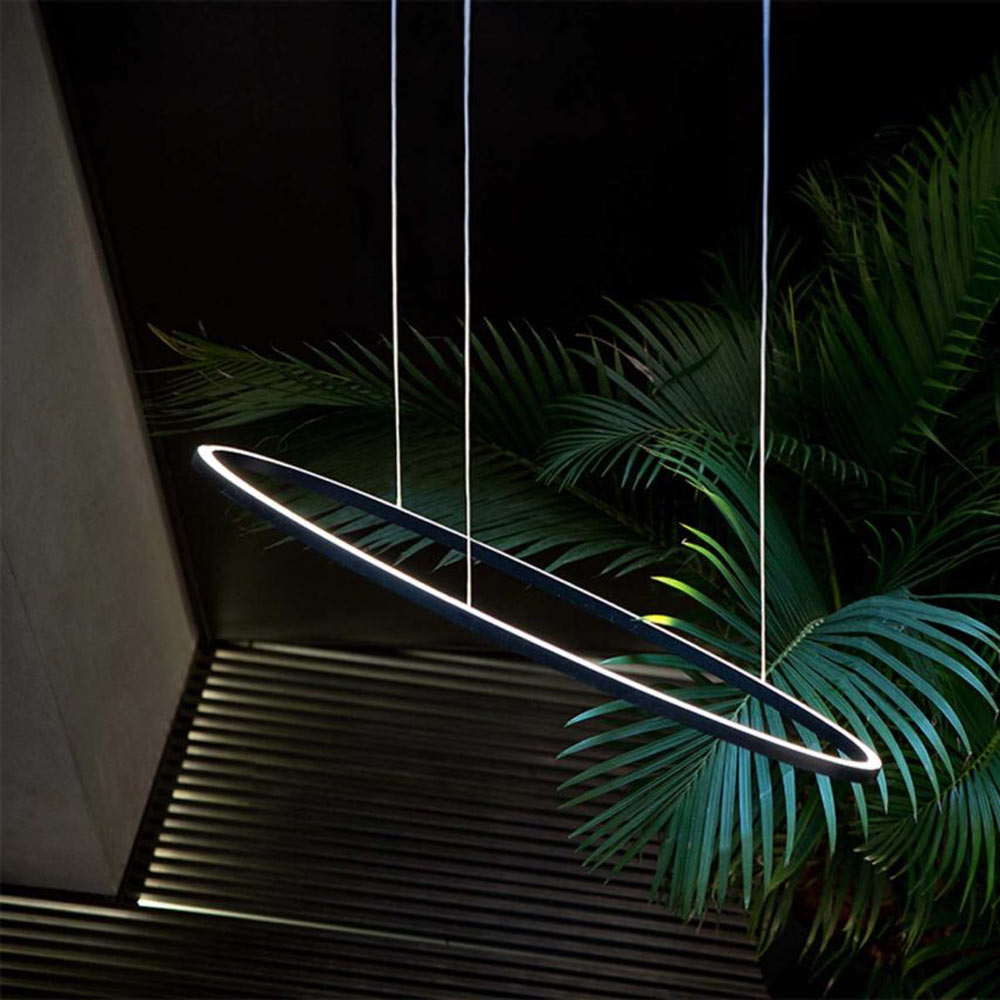 A delicate celestial motif emerges in the Ellisse LED Major Pendant Light from NEMO, adding a sense of invisibility with subtle shaping and a fabulous way to light up a modern space. Floating as a halo-inspired element, its aluminum ring frame and continuous opal diffuser express the fine art and architectural worlds colliding in a single modern fixture.