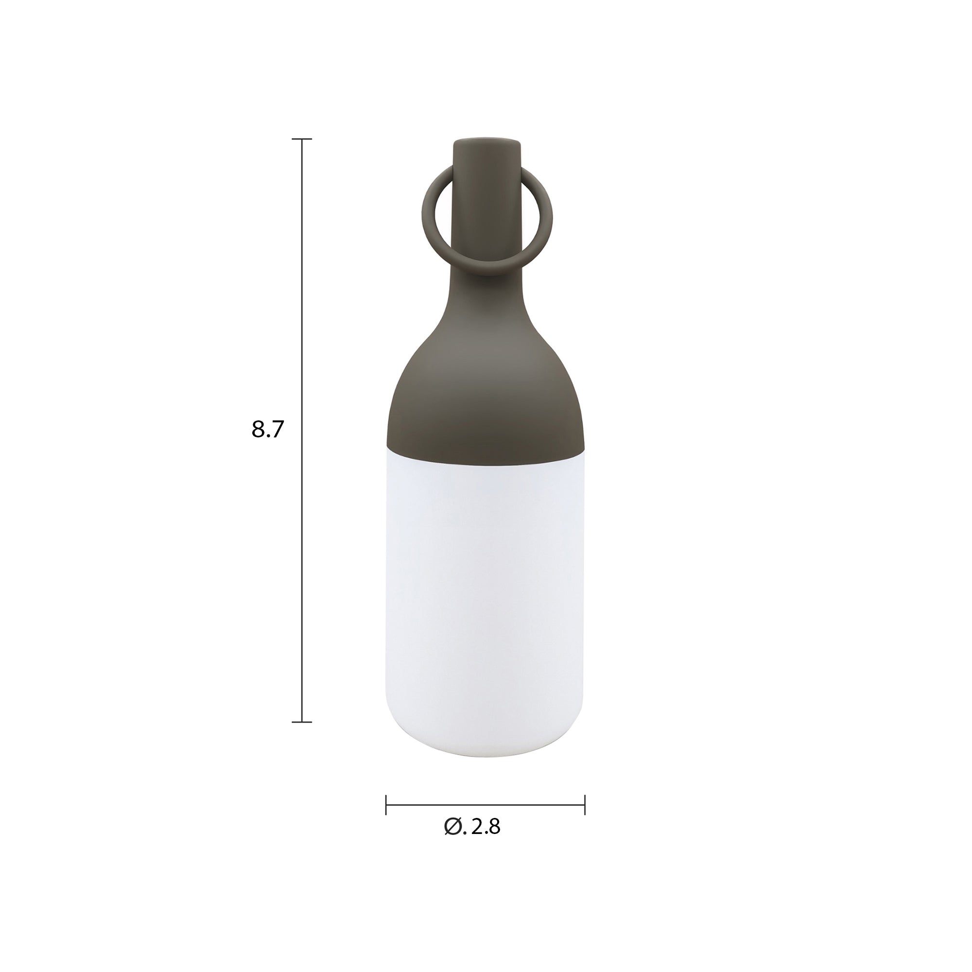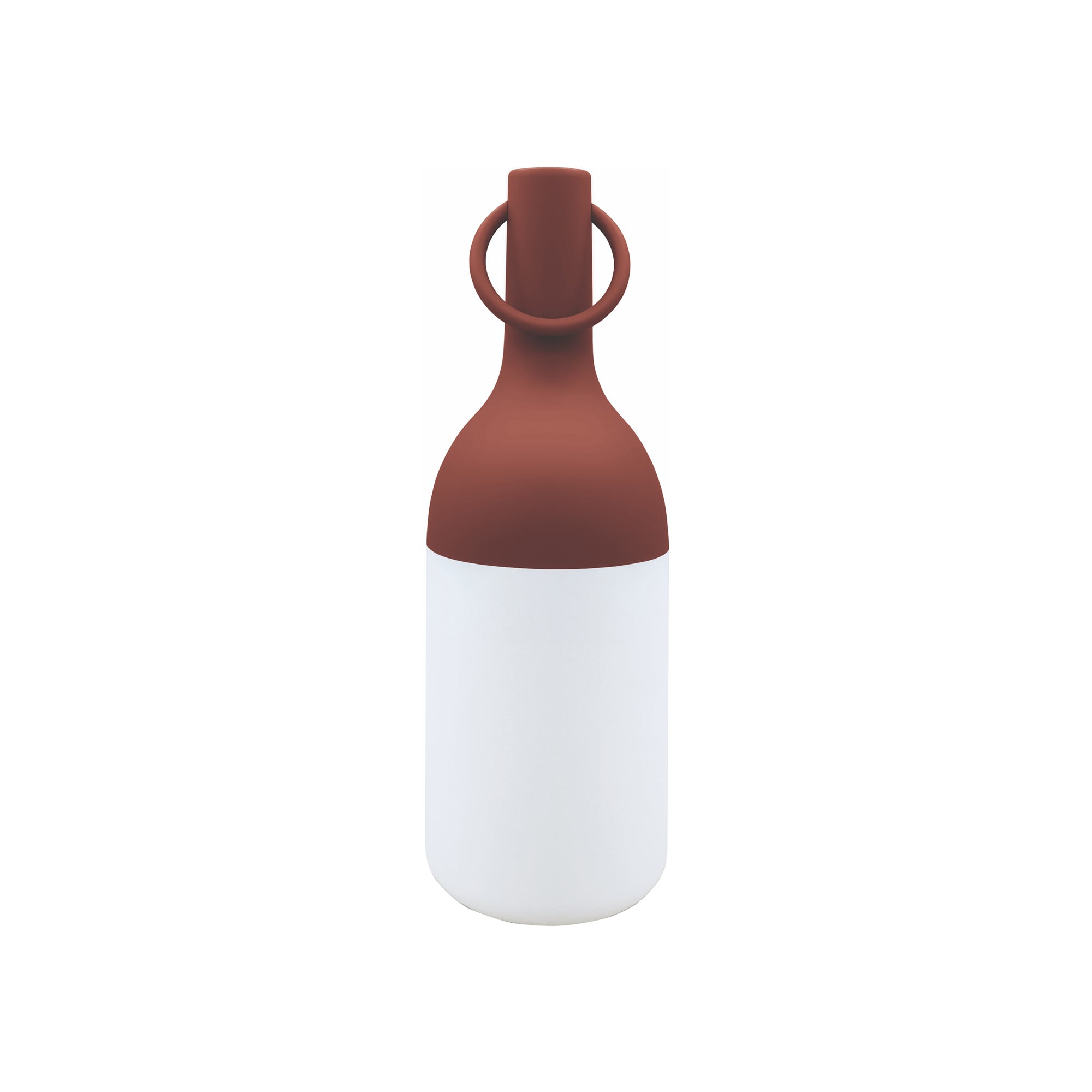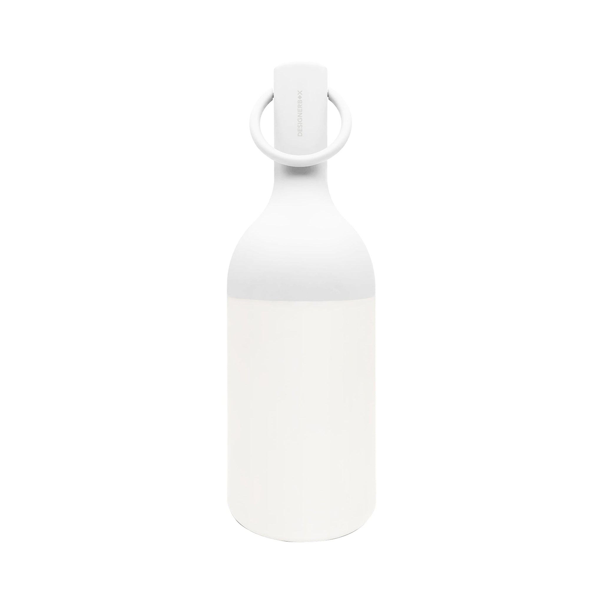 Gorgeously glowing with warm, ambient illumination, the ELO Nomad Portable Outdoor LED Table Lamp from DesignerBox is sure to become an icon in your backyard living space. A classically contoured bottle silhouette includes a ring at its apex, perfect for hanging in a tree or from a wire. It adjusts with just a touch and is both non-glare and weather resistant.