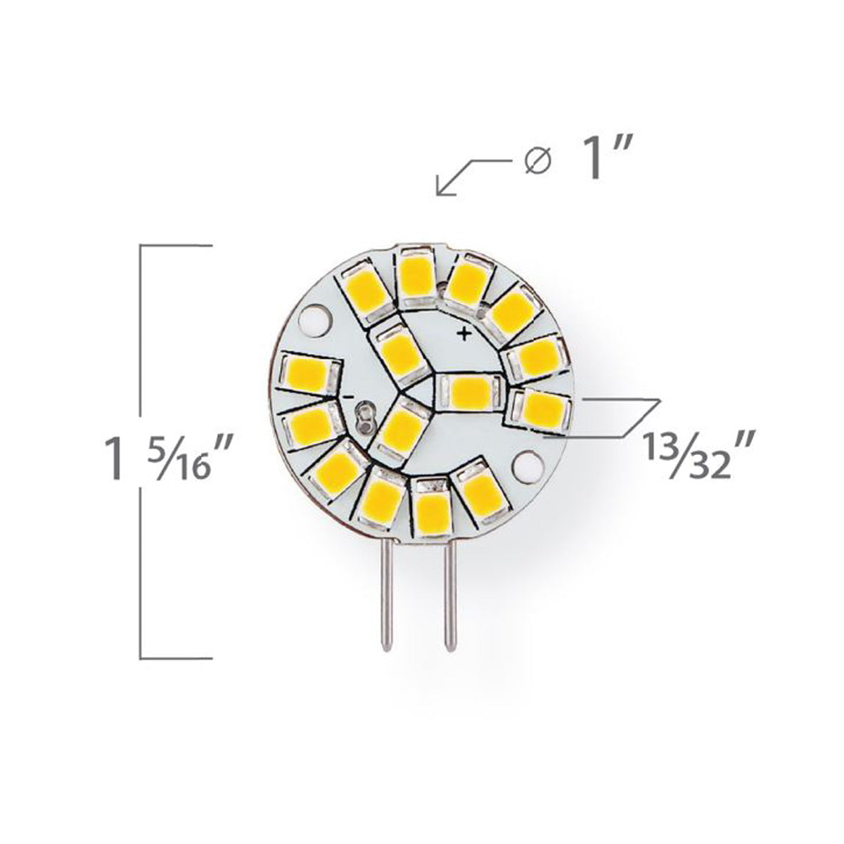 - 2W: 1 X 2W 12V G4 LED lamp; 200 lumens, 90 CRI, 2700K/3000K