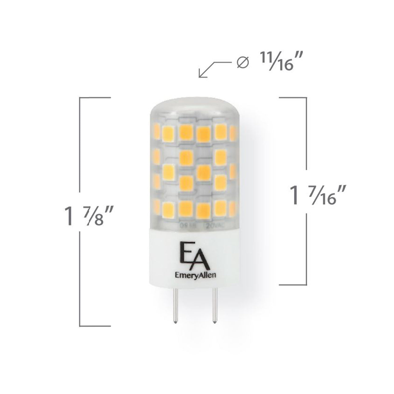 A retrofit lamp with energy efficiency and a long life of use makes lighting a breeze as the Emeryallen G8 Bi Pin Base 120V Mini LED Bulb from EmeryAllen produces output roughly equivalent to an incandescent G8 base lamp. Use this mini LED bulb in conventional lighting fixtures including pendants, bath lights, and outdoor applications.