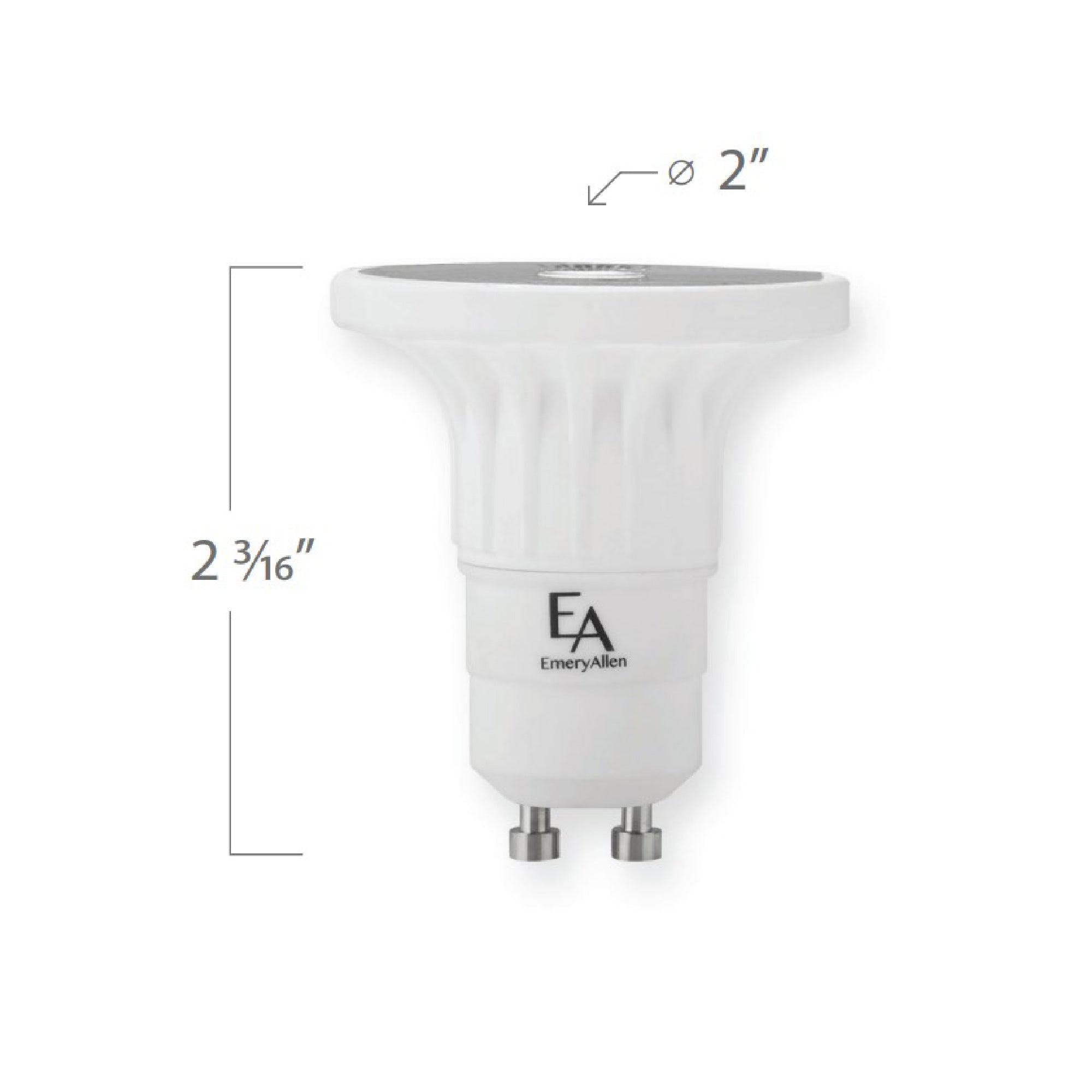 Energy efficiency is one bonus to the Emeryallen GU10 Base 120V Mini LED Bulb from EmeryAllen. A perfect alternative to conventional incandescent GU10 base lamps, this retrofit lamp infuses a rough equivalence of the conventional 120v output. Use this bulb for standard lights in bath spaces and living areas, as well as outdoor applications.