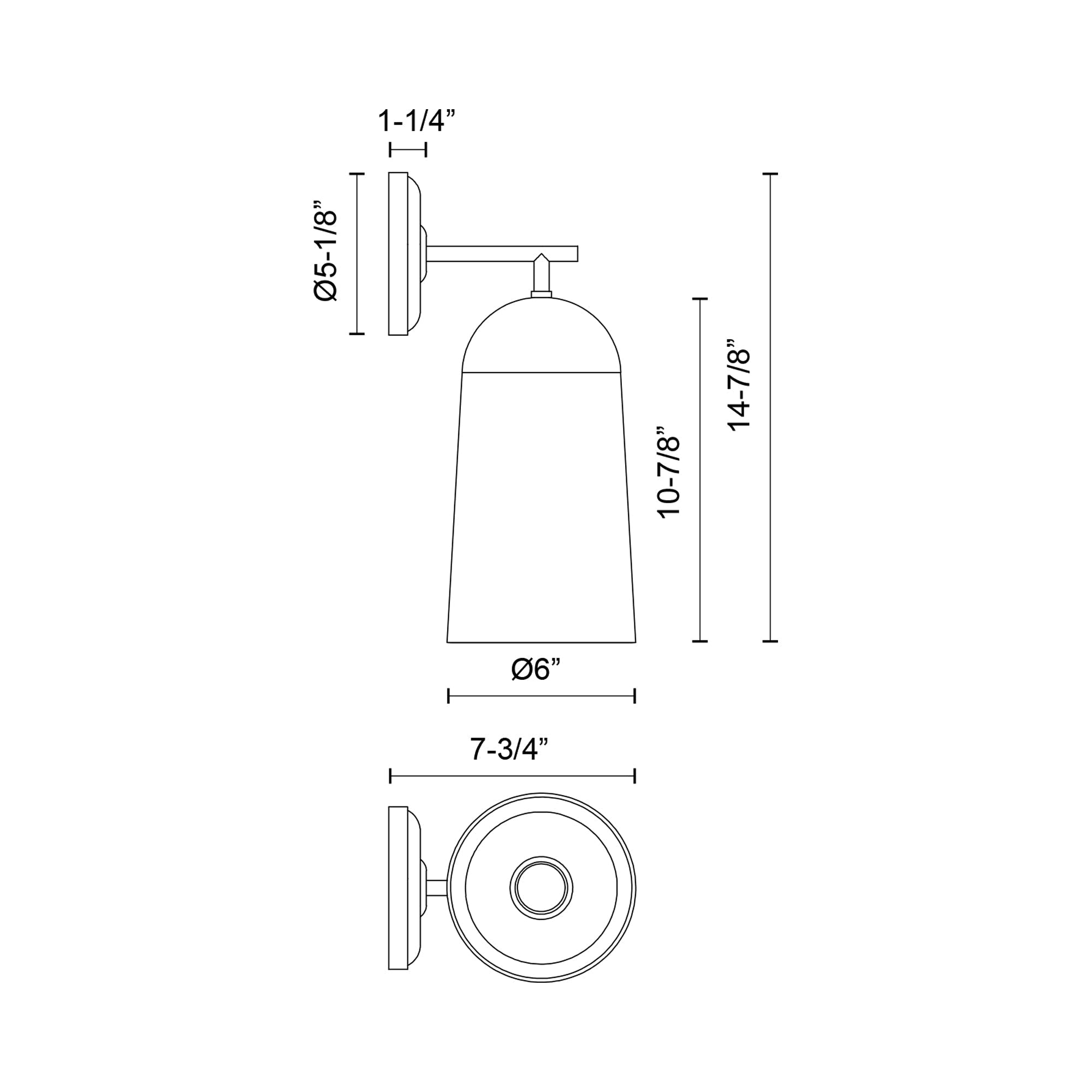 - 1-Light: 6"D X 14.88"H; 7.75" Extension