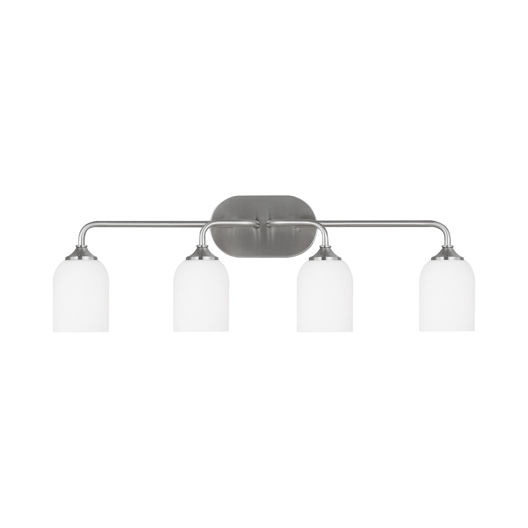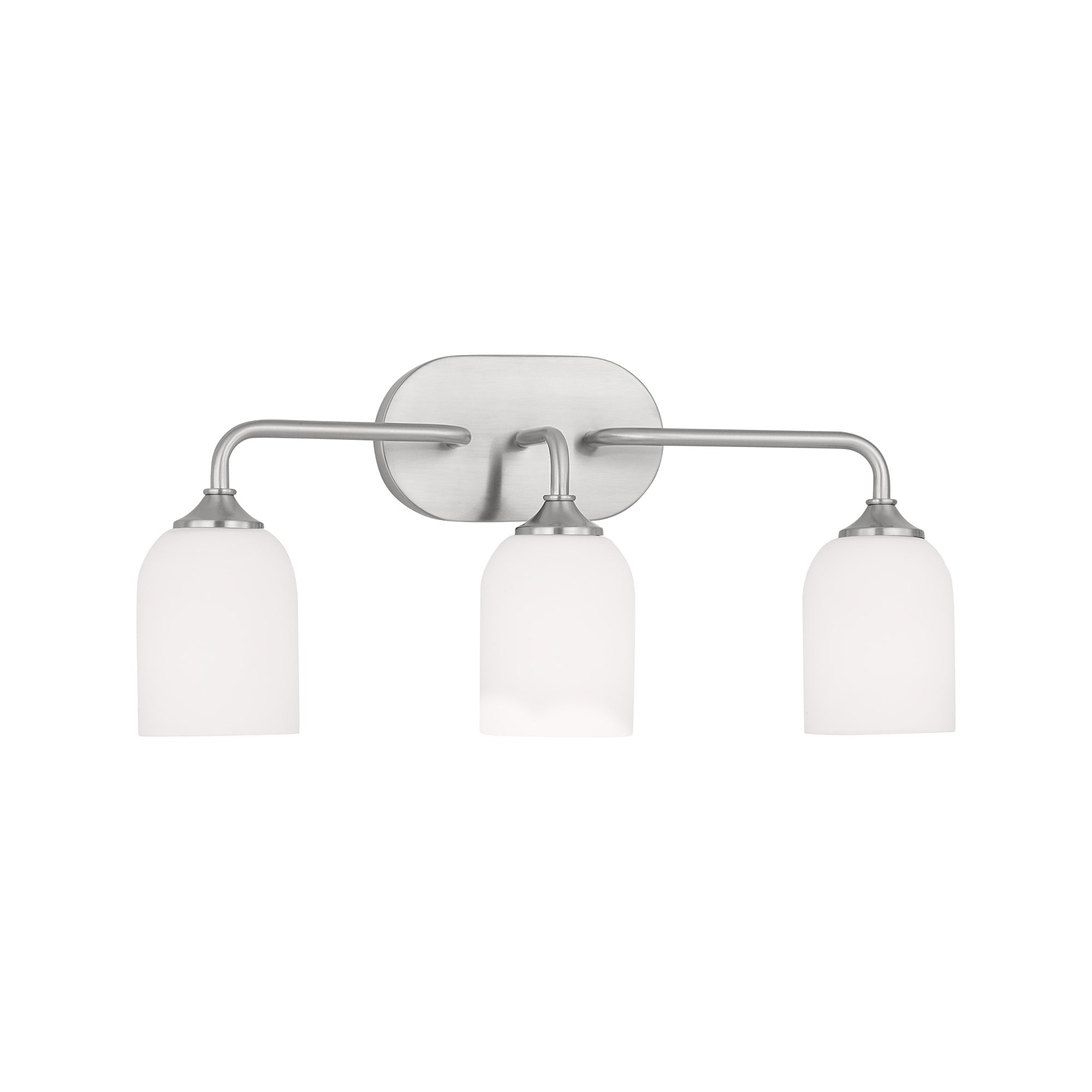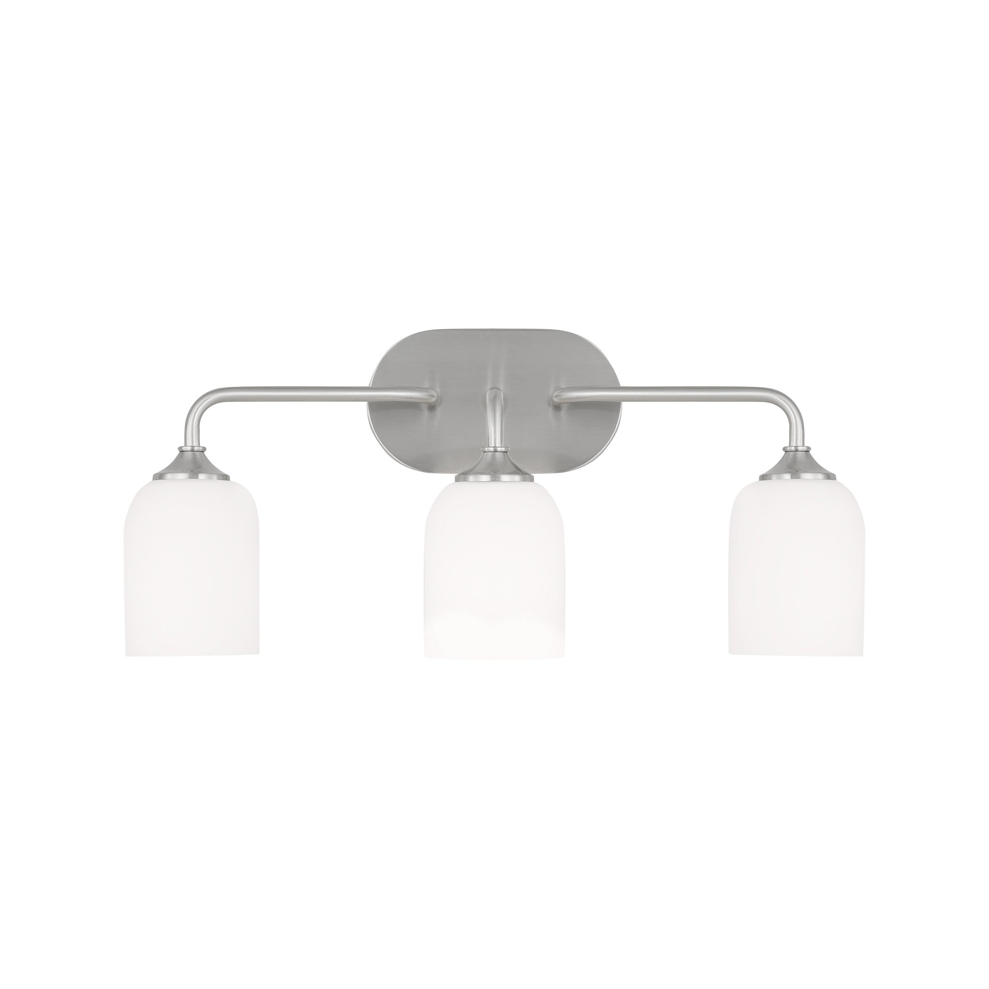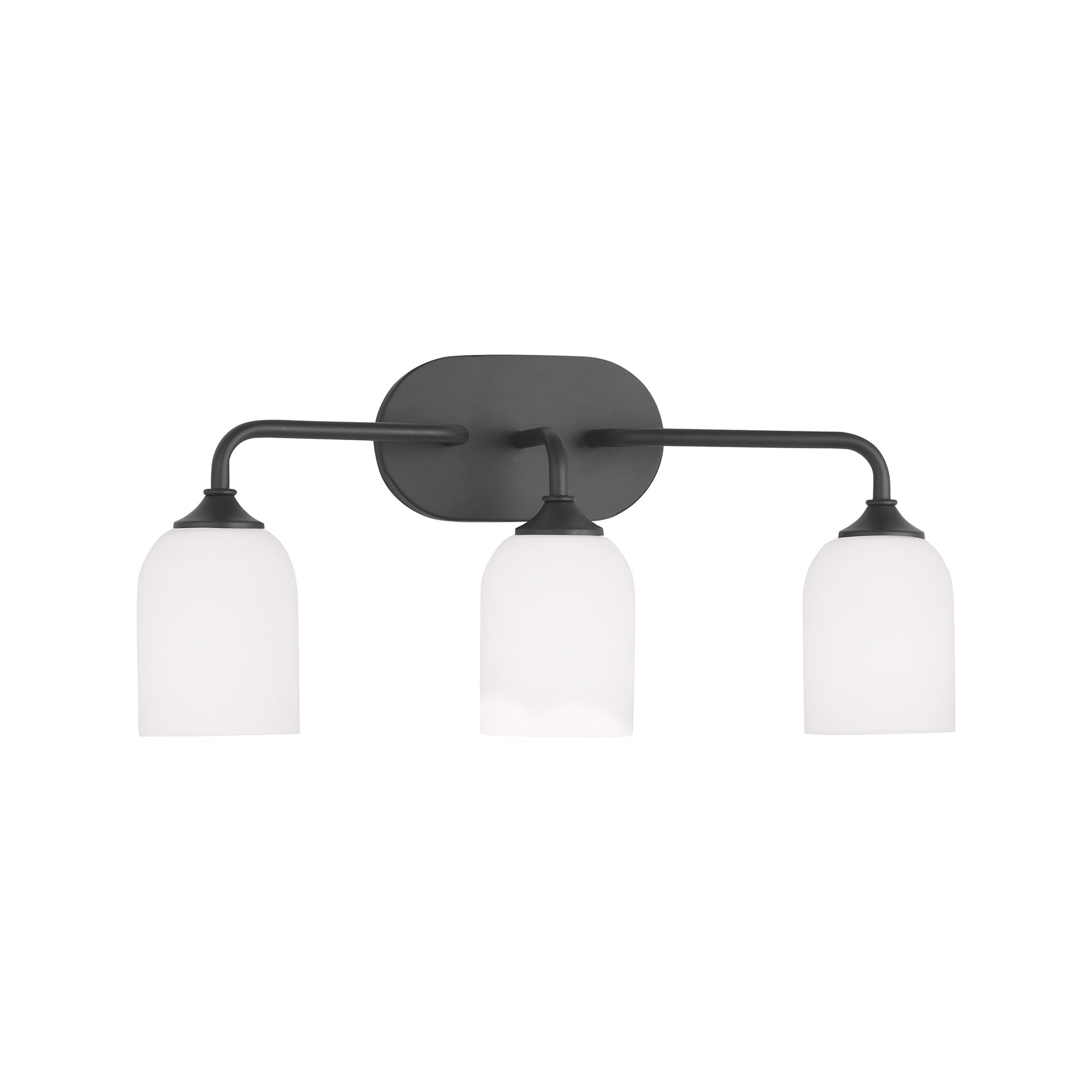 Easy and casual also becomes sophisticated when design is purposeful. The Emile Bath Vanity Light from Generation Lighting suits a host of custom style motifs, with a focus on modern elegance. Its metal framing stands out with a long oval backplate and alluringly curved arms, as a milky glass goblet shades add lingering warmth as they highlight a vanity.