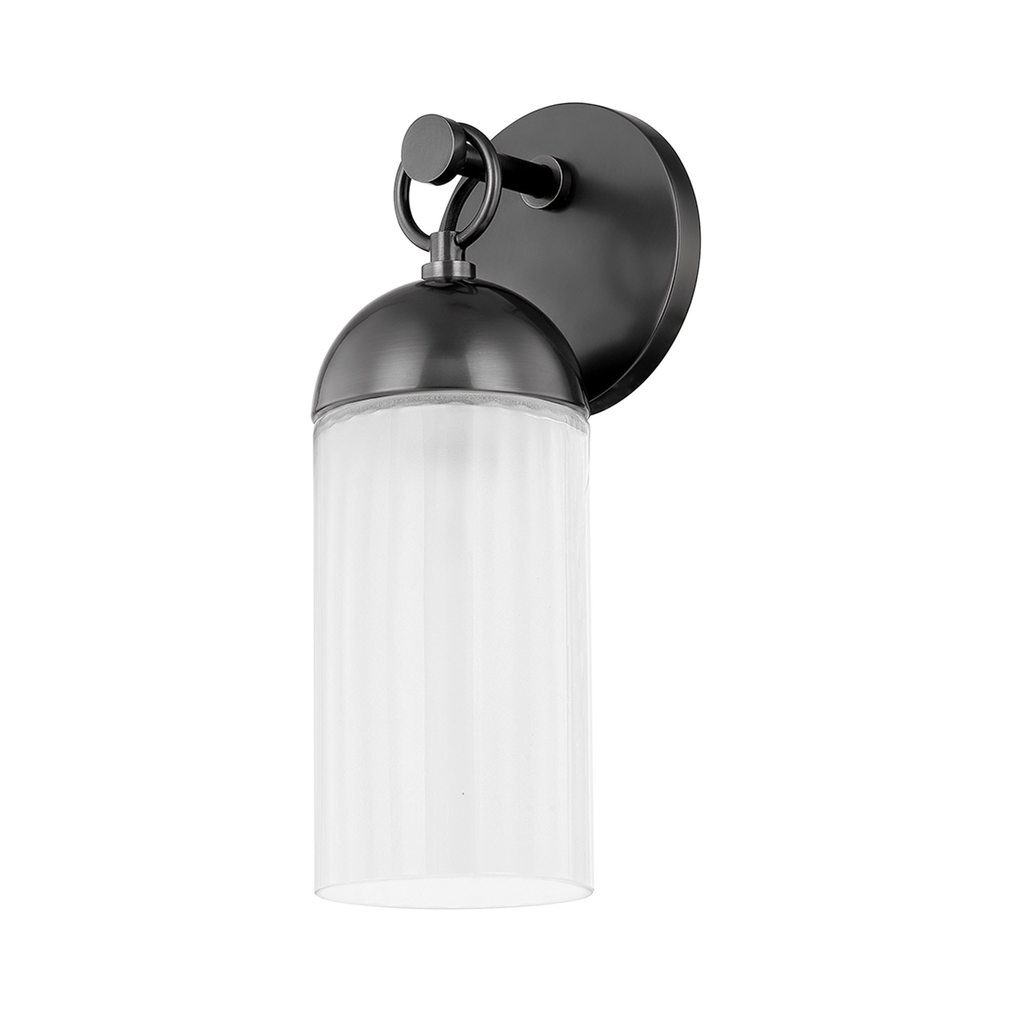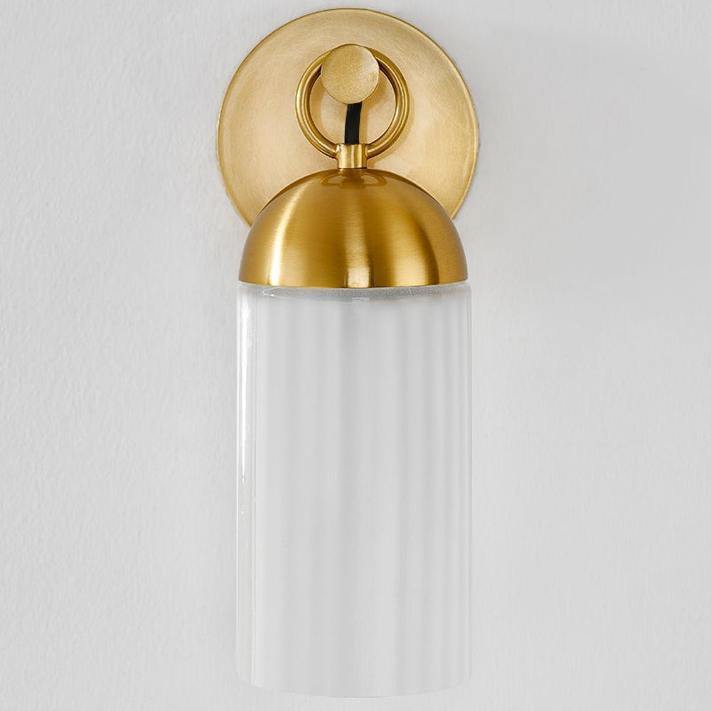 A graceful domed top and ring suspension create timeless energy for the Emory Wall Light from Mitzi. A rich finish offers a chic look and feel in a living or dining area, while a cylindrical shade delivers bright, glowing light. The shade is delicately ribbed, with an etched interior that ensures soft, diffused illumination.