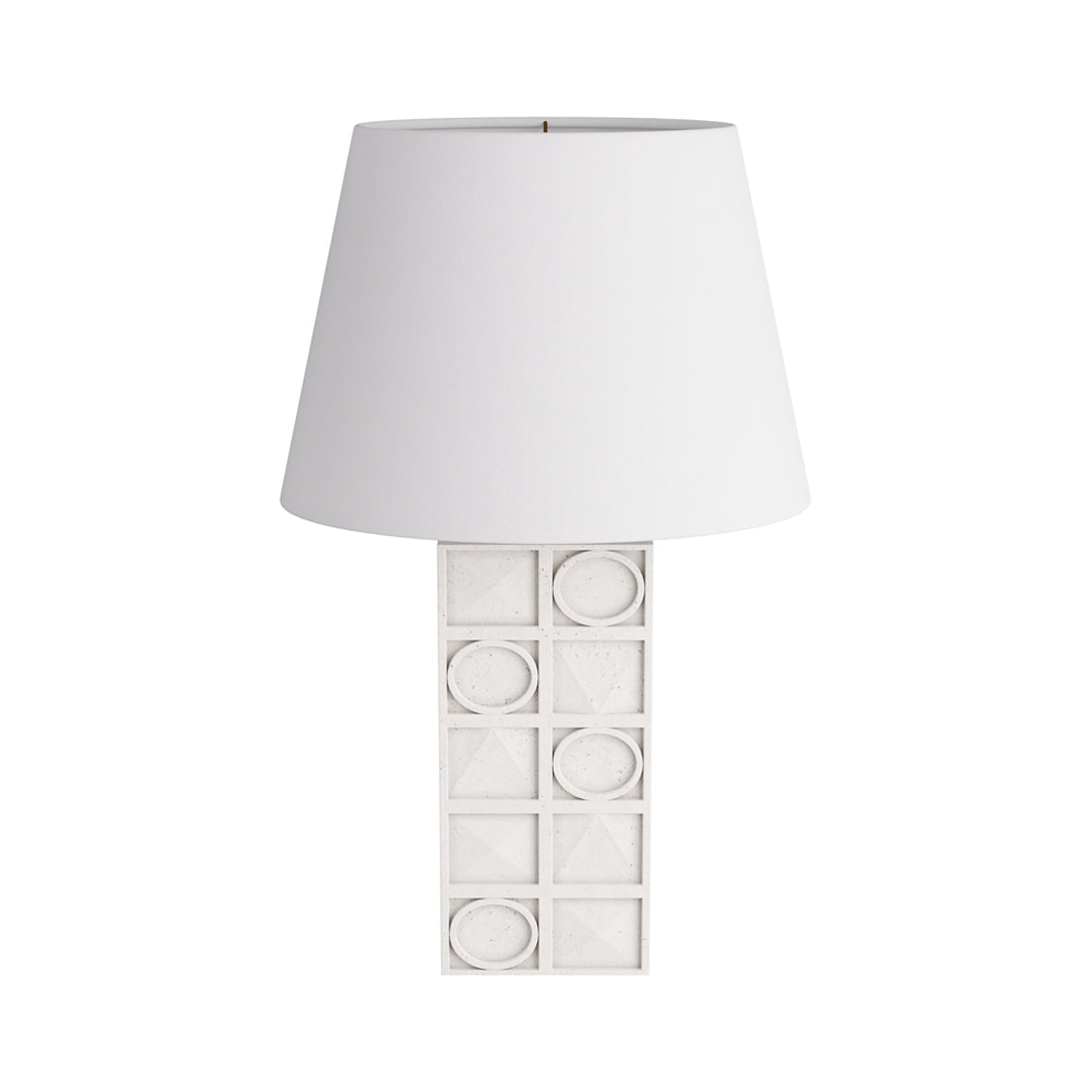 Sculptural character and textural romance merge to create a lamp with extraordinary potential. The Empire Table Lamp from Arteriors offers a soothing look with a chunky body fashioned of Riverstone composite and antique brass accents. Dimensionality is somewhat subtle as it enhances detail of charming circles placed in an assortment of squares.