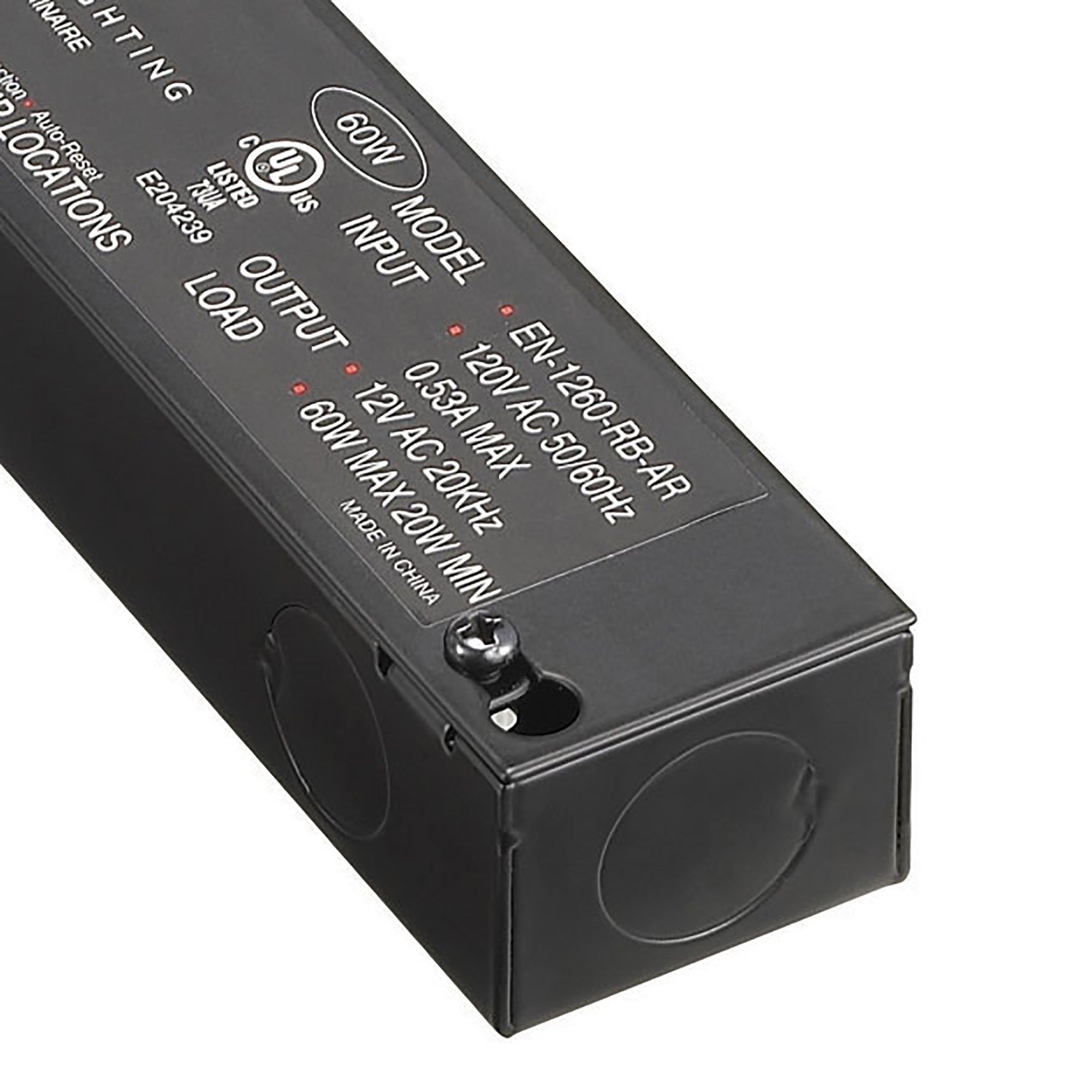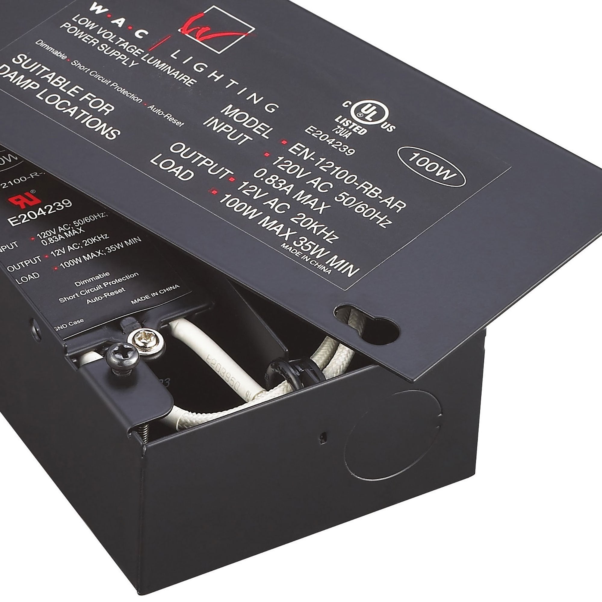 Safe lighting side connections without a conduit sheathed cable or clamp wiring compartment improves the ease of installing with the Enclosed Electronic Transformer 120V/12V from WAC Lighting. This transformer features options for dimming features with the separate purchase of an electronic low-voltage dimmer.