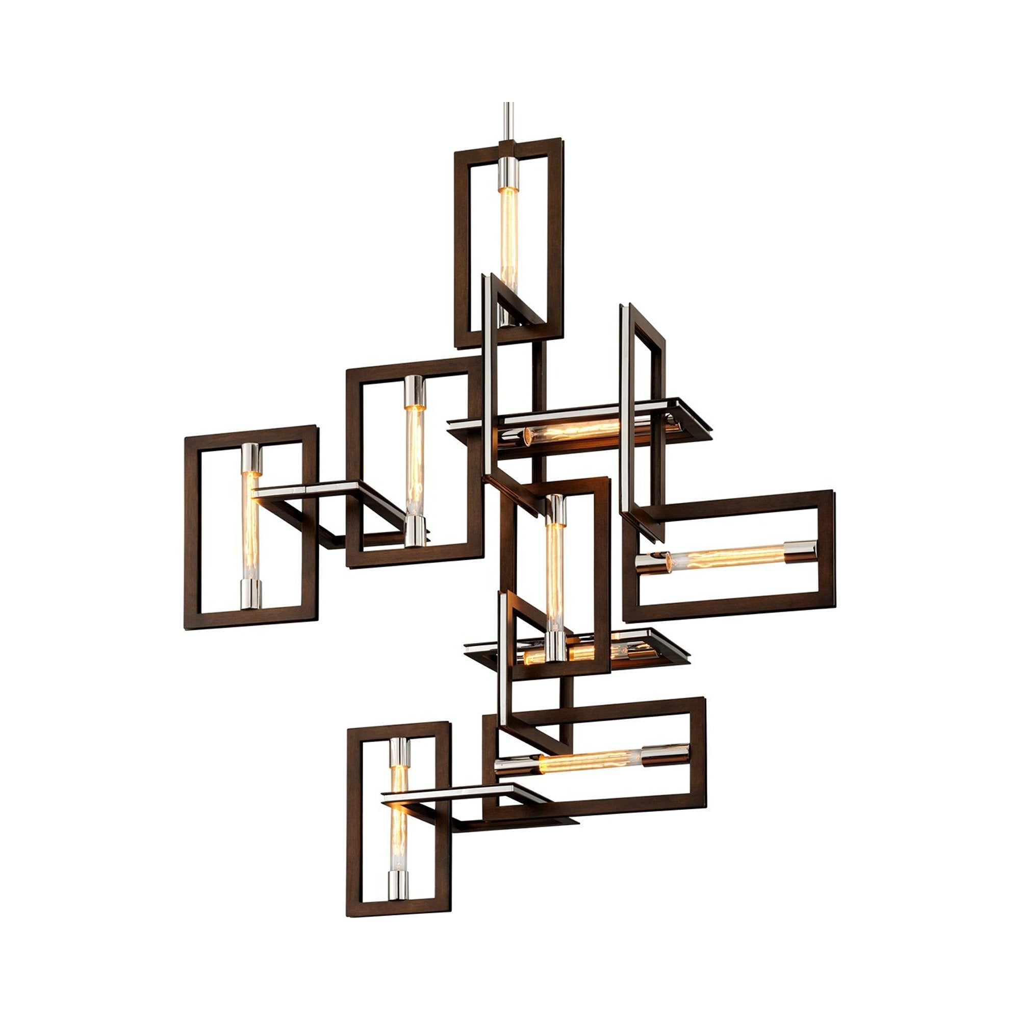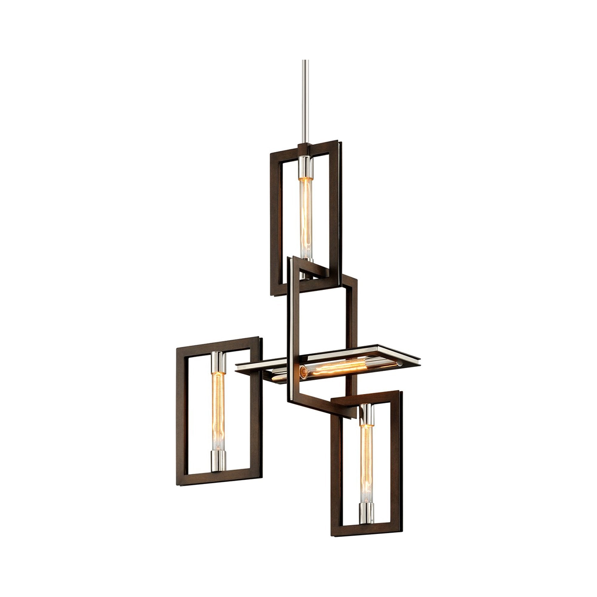 Interlocking frames and tubes of glowing light play up the modern geometric appeal of the instantly eye-catching Enigma Pendant Light from Troy Lighting.