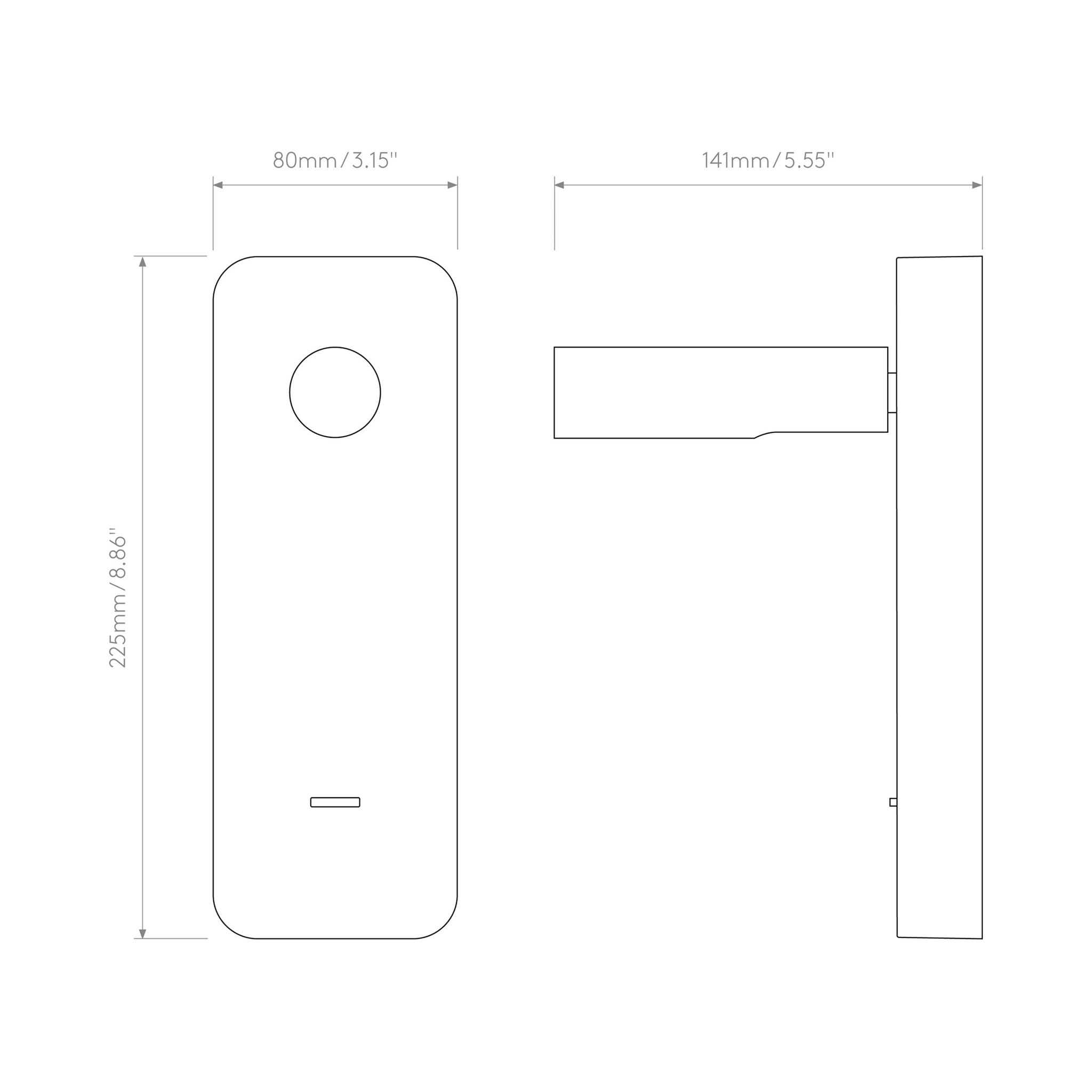 - Dimensions: 3.15"W X 8.86"H; 5.55" Extension