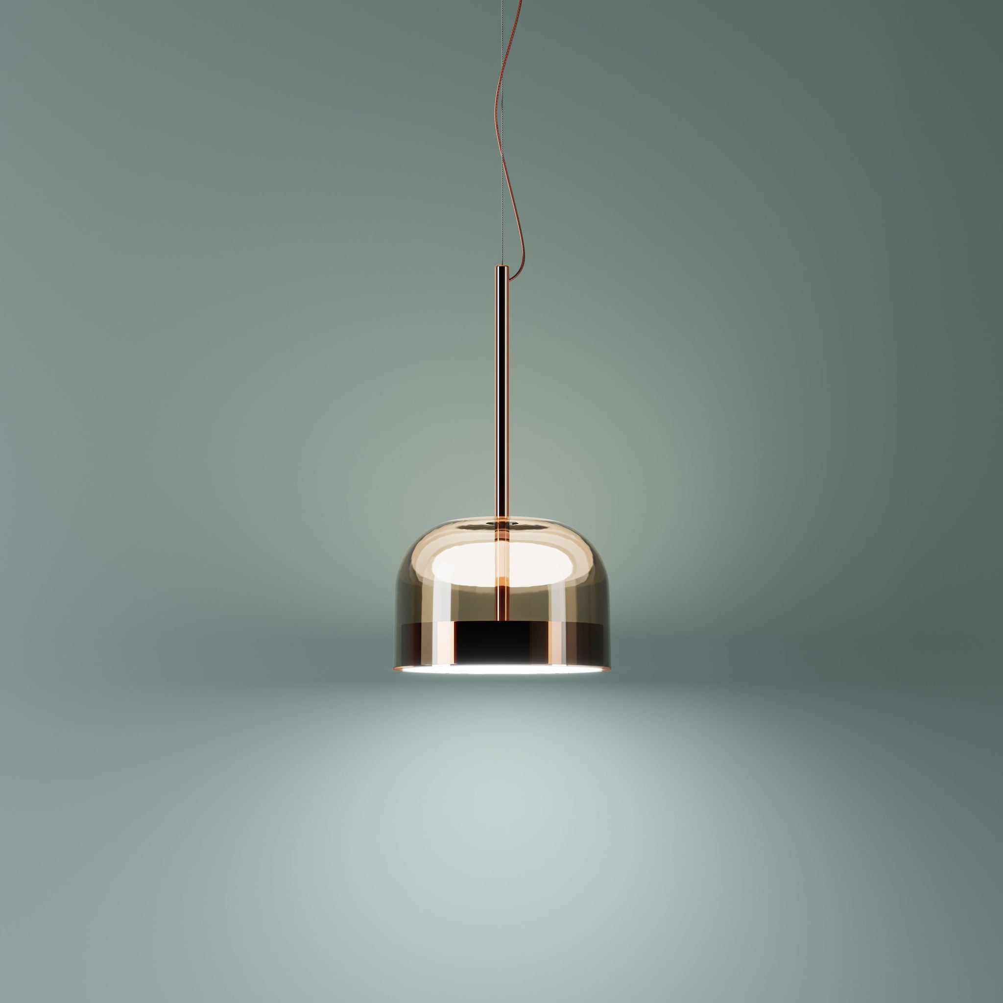 A gleaming dome of glass is accentuated with metal to bring eye-catching allure to the Equatore Pendant Light from FontanaArte. Gorgeous over an entry or in your eat-in kitchen, this modern fixture is the perfect complement to elegant, understated decor.