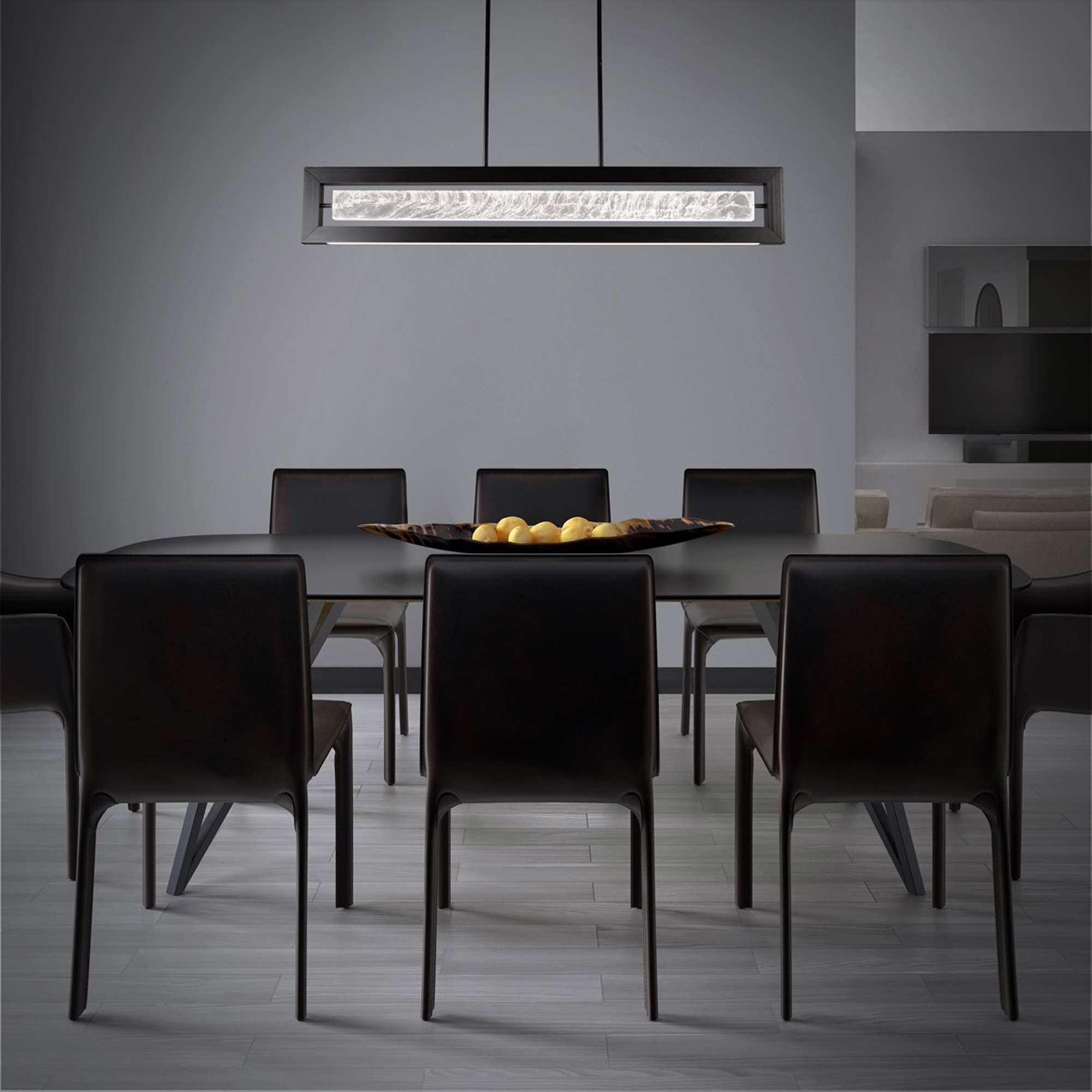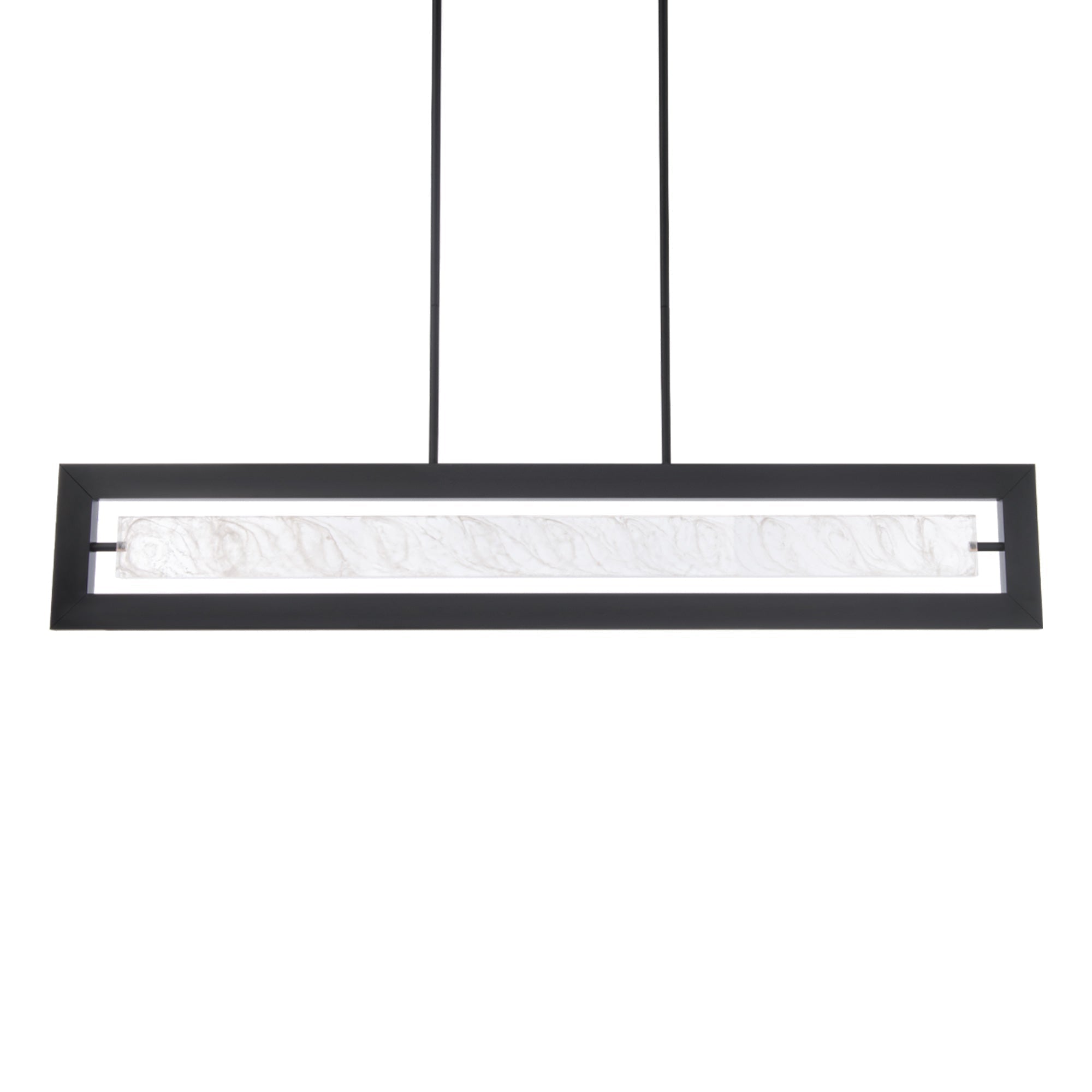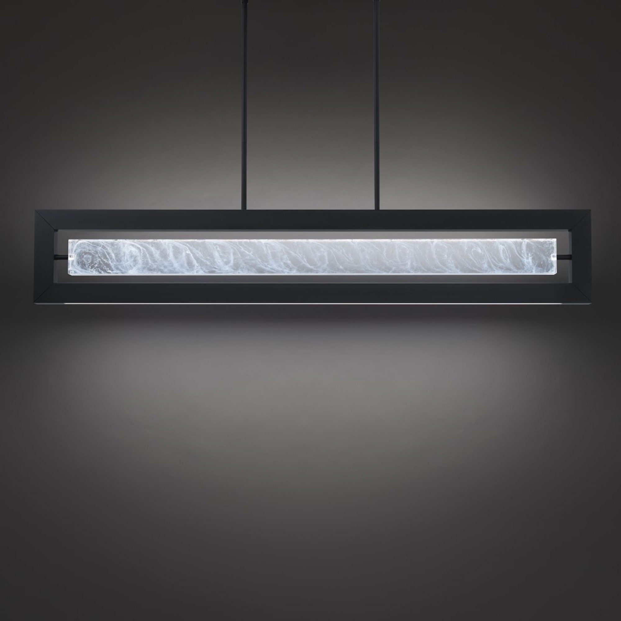 An elegant rectangle of light radiates from an artisan crafted, cloudy acrylic center panel illuminated by an uplight to create an impressive and unique look. The base of this modern 48-inch luminaire features downward illumination.