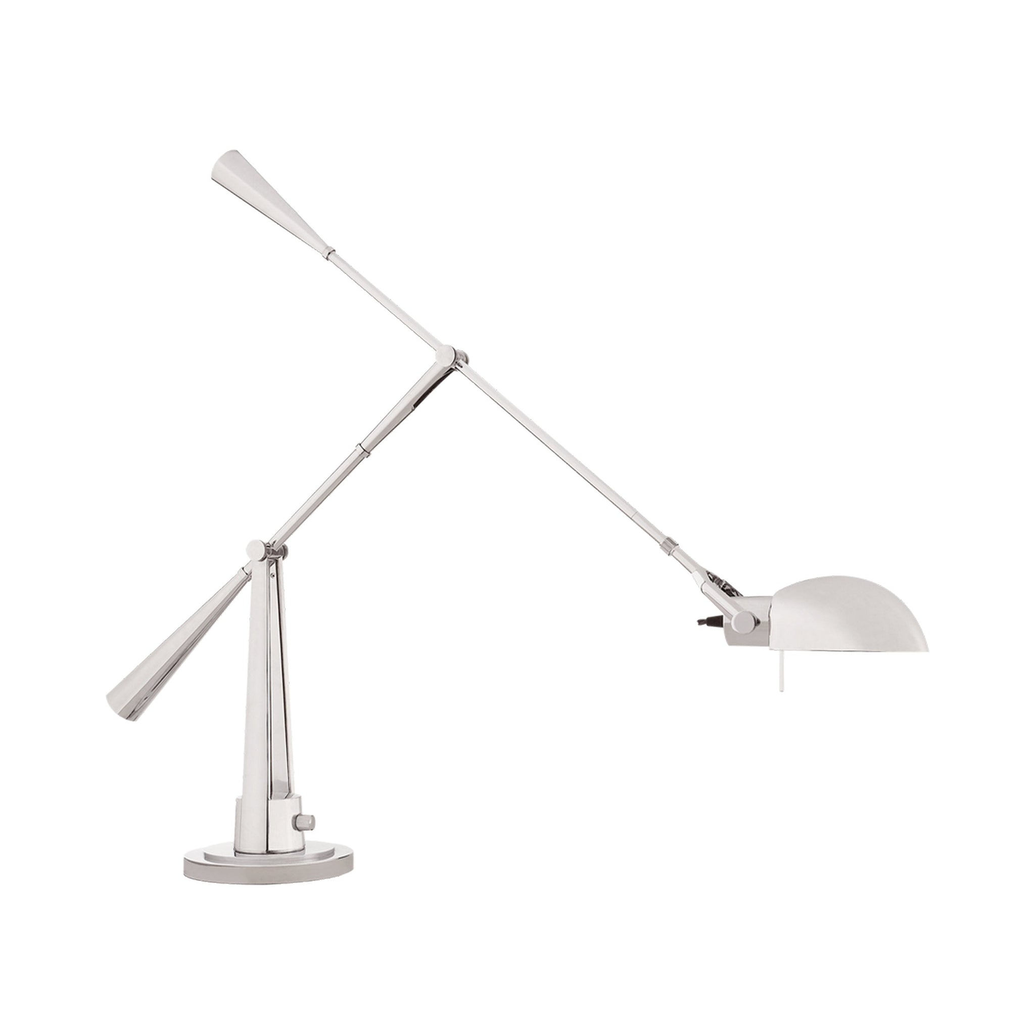Explore the physics of functional lighting with the Equilibrium Table Lamp from Visual Comfort Signature and watch its impact on a home office or living space. Modern with a hint of industrial vibes, this lamp employs weights and balances to send soft illumination where needed. Ornately articulated metal elements expand a linear silhouette as they align to create a statement-making look.