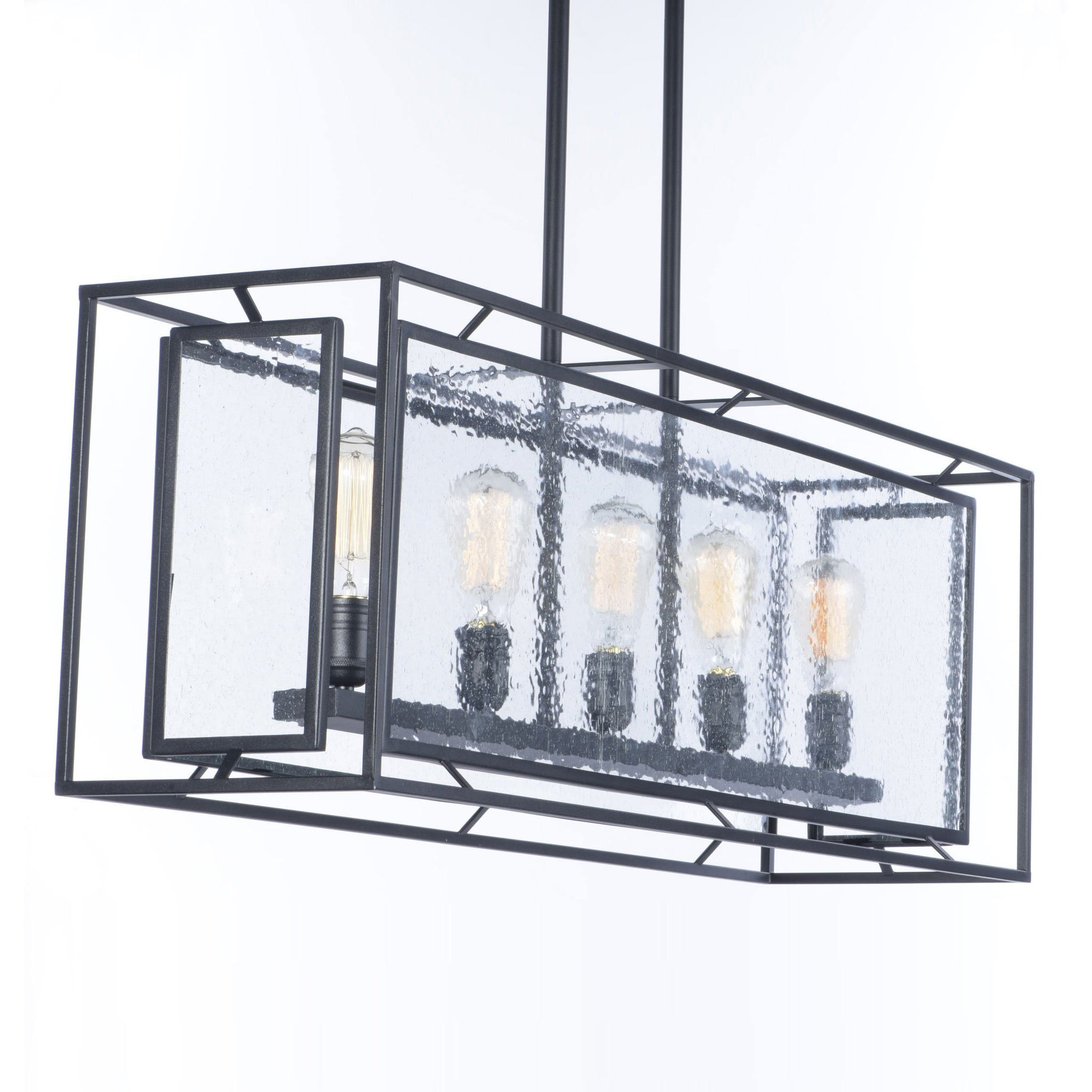A layered design works with geometric styling to create a captivating, dramatic look to the Era Linear Suspension Light from Maxim Lighting, lending a fashionable way to illuminate kitchen islands and entertaining spaces.