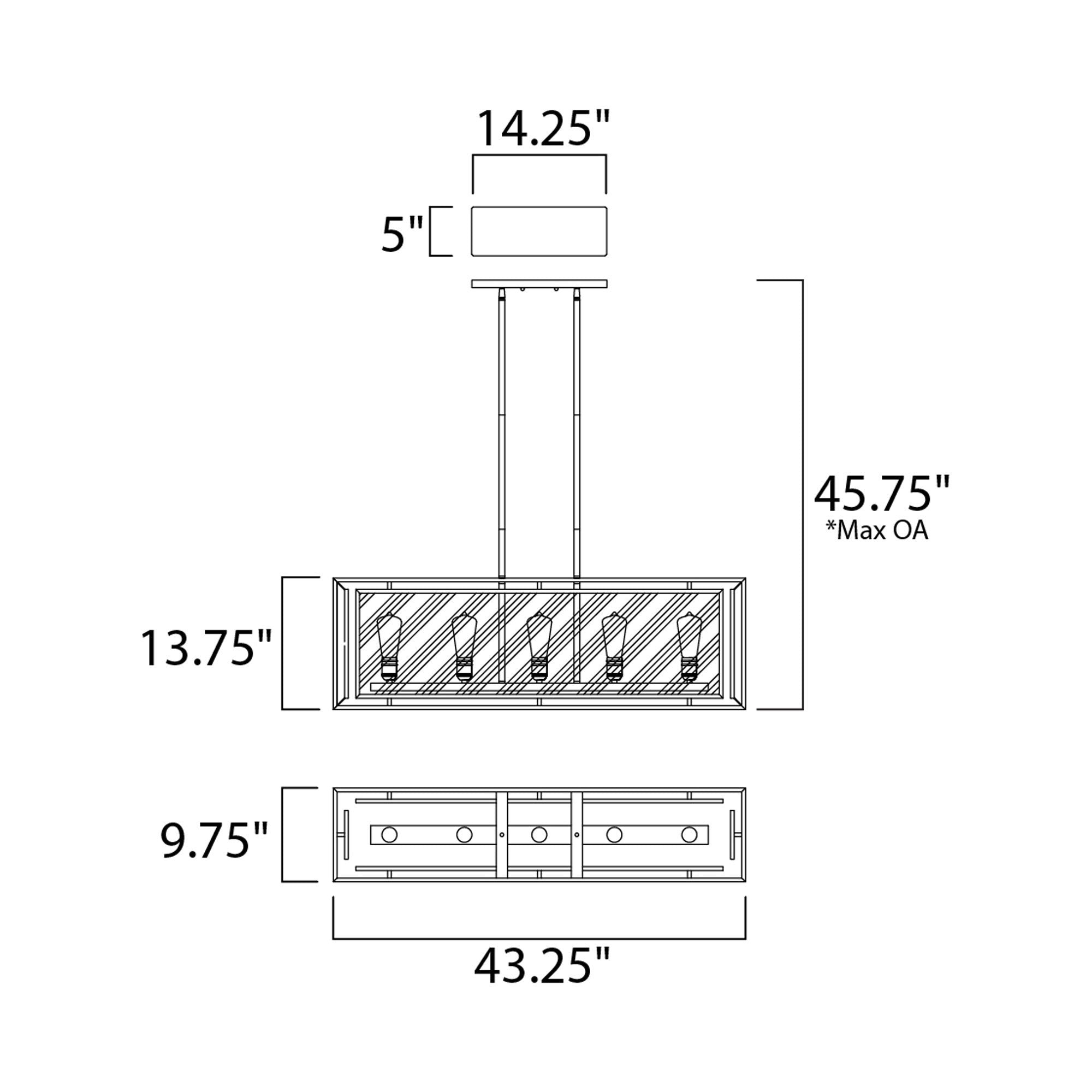 - Dimensions: 43.25"W X 13.75"H; 45.75" max height