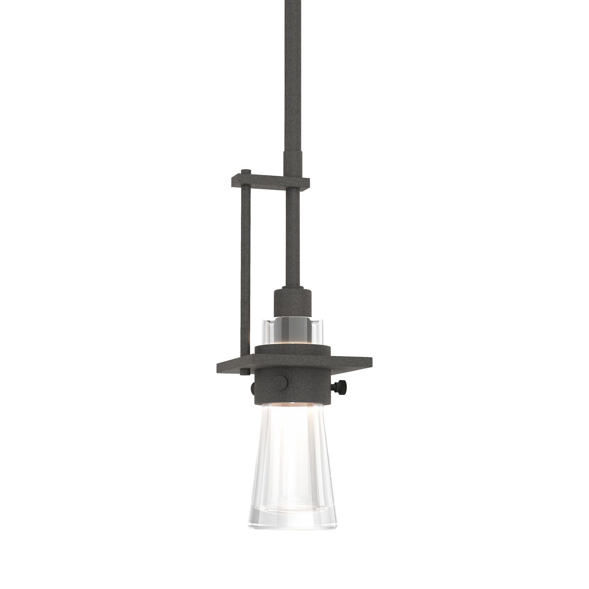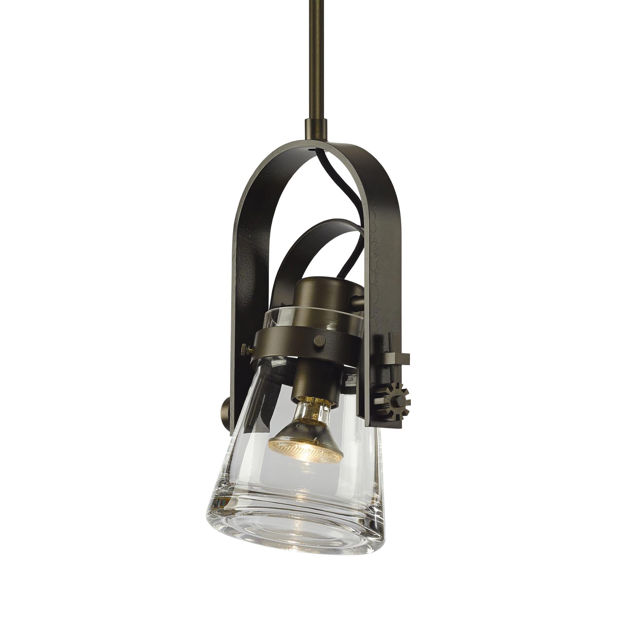 Celebrate old-school chemistry as it blends seamlessly with the industrial-inspired frame of the Erlenmeyer Mini Pendant Light from Hubbardton Forge.