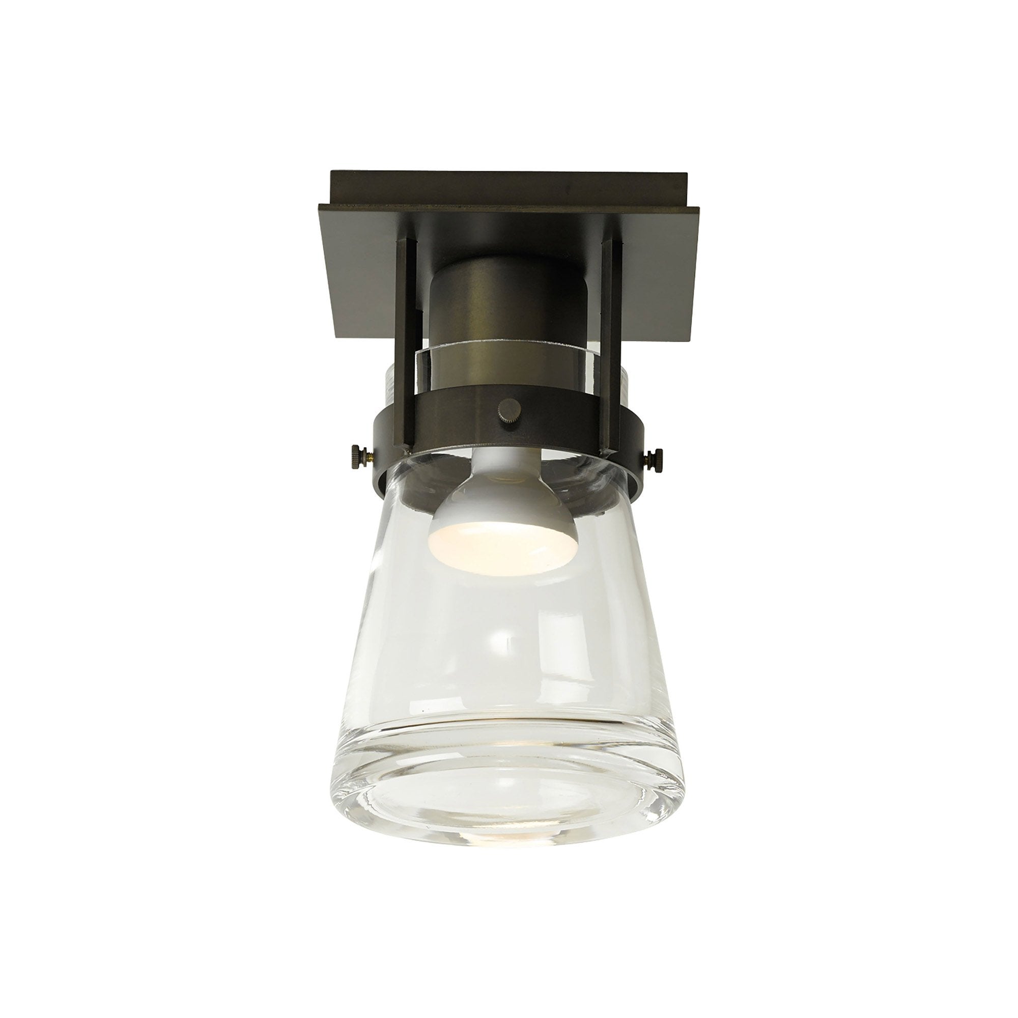 Engaging glass and metal accents play up the modern industrial emphasis of the Erlenmeyer Semi-Flush Mount Ceiling Light from Hubbardton Forge.
