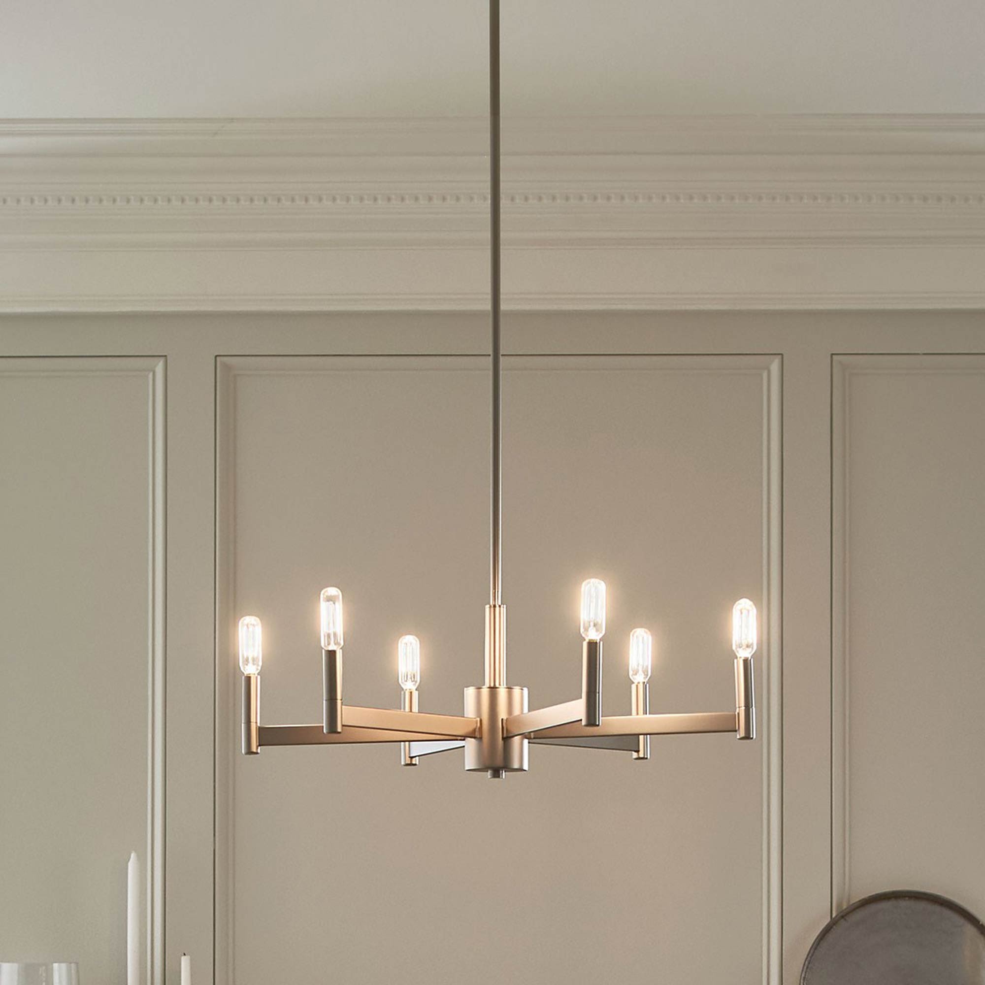 - 6-Light: 6 X 60W 120V E12(candelabra base) Type B incandescent lamps (not included)