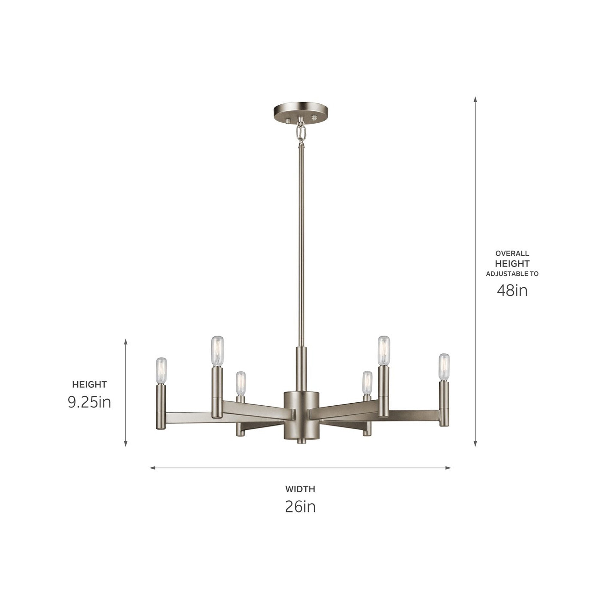 - 6-Light: 26"D X 9.25"H; 48" max height