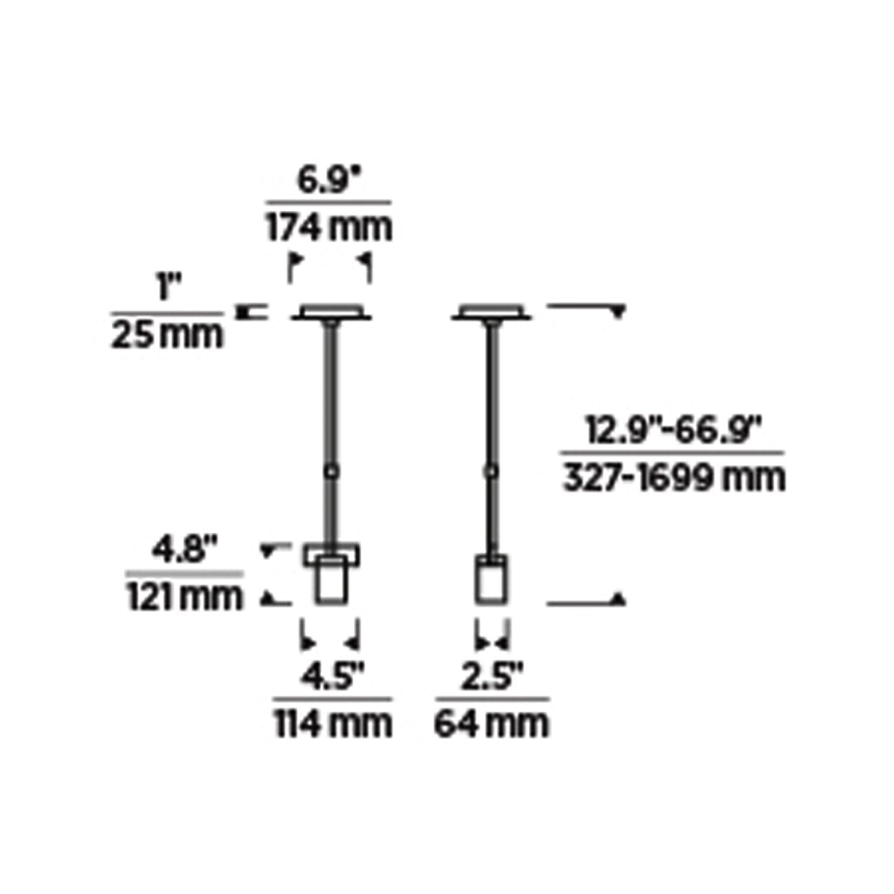 - Dimensions: 6.9"D X 4"H; 66.8" max height