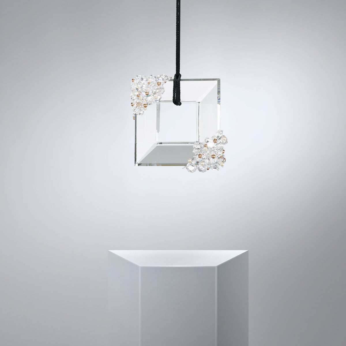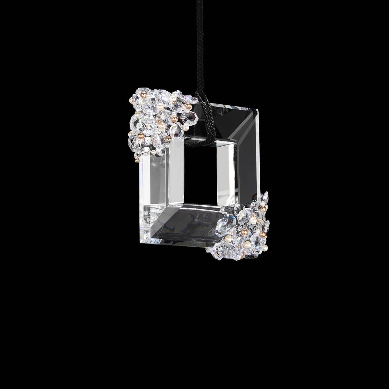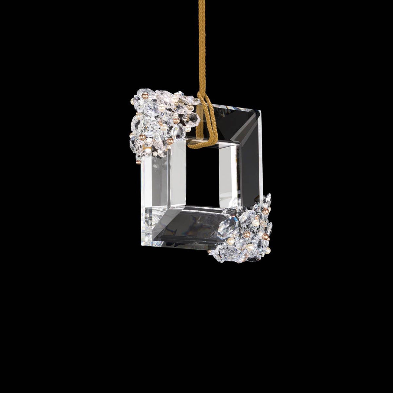 Smooth meets rugged in the juxtaposing of textures that enliven the Eva LED Mini Pendant Light from Schonbek. A truly eye-catching choice over a kitchen island or living space, the mini pendant is a petite, open square of glass studded with faceted crystals and round pearls , offering rich sophistication and glamour in your living areas.